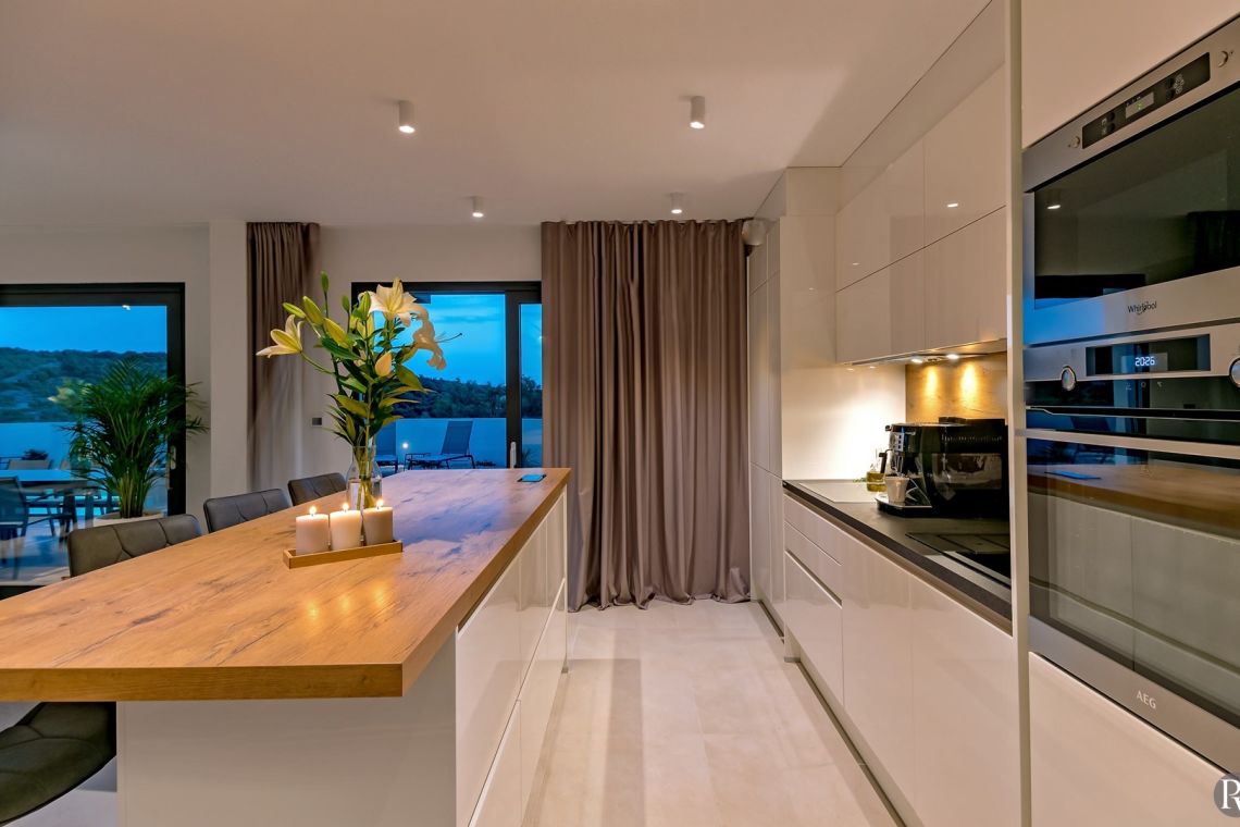 Villa Roko is a modern luxury villa with panoramic sea views located in the peaceful seaside village of Kanica, close to Rogoznica. Just 140 metres from the Adriatic Sea and nearby pebble beaches, the villa offers a private and relaxing setting for a high-end Mediterranean getaway.