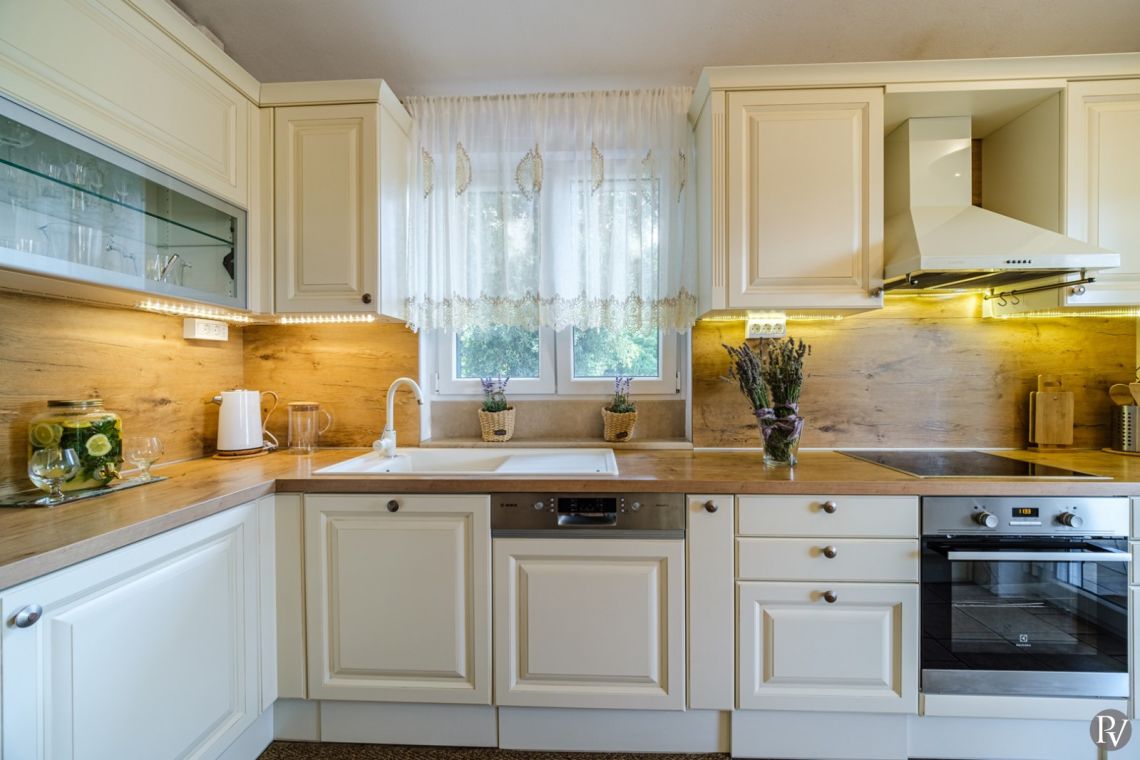 Izba Vanya features four well-appointed bedrooms, each with its own en suite bathroom, providing privacy and convenience for all guests. The bedrooms are distributed across the two connected units, allowing flexibility and comfort, particularly for groups travelling together.
