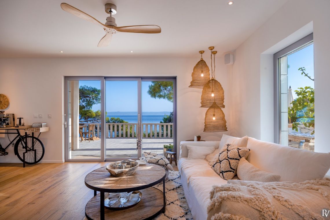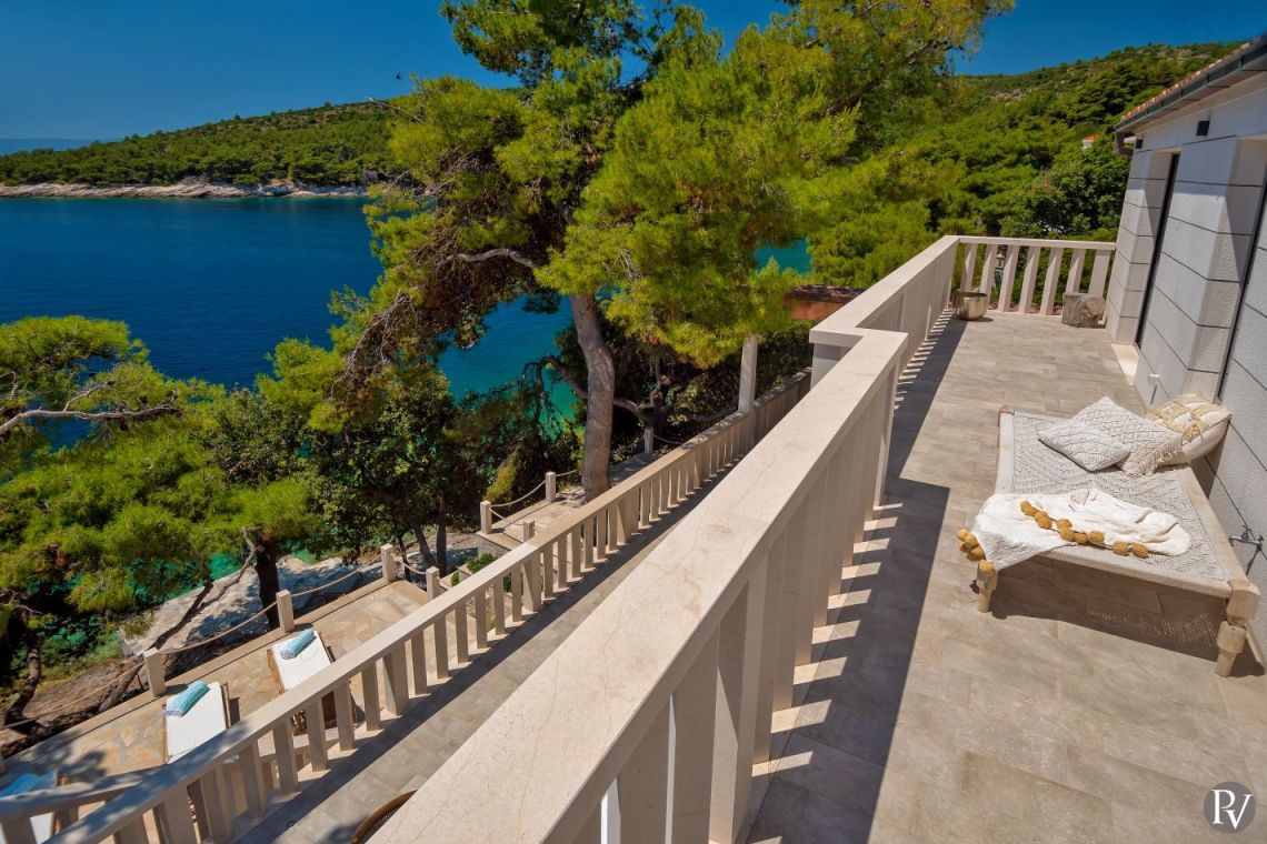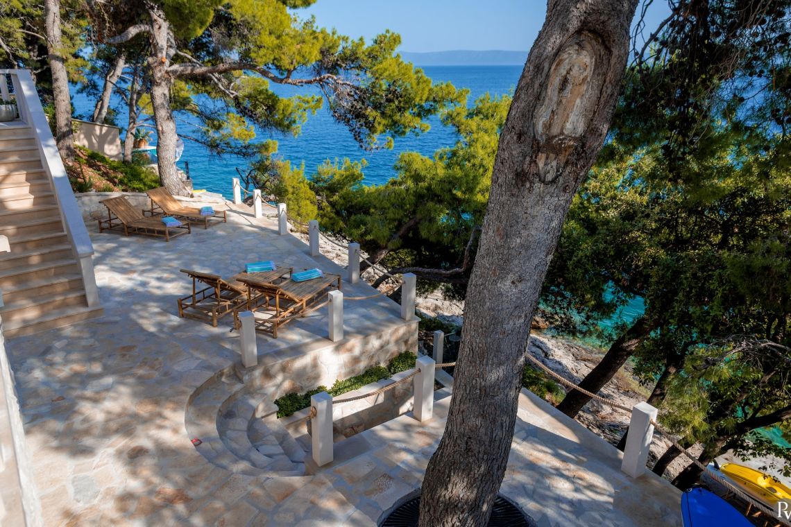 Vila Obala Mira – Brac, Dalmatia, Croatia is a newly renovated, contemporary villa set just 2 metres from the crystal-clear Adriatic Sea in the tranquil Ruzmarin Bay. Located only 3 km from the charming fishing village of Sumartin on the southeastern coast of Brac Island, the villa offers a perfect blend of seclusion and accessibility.