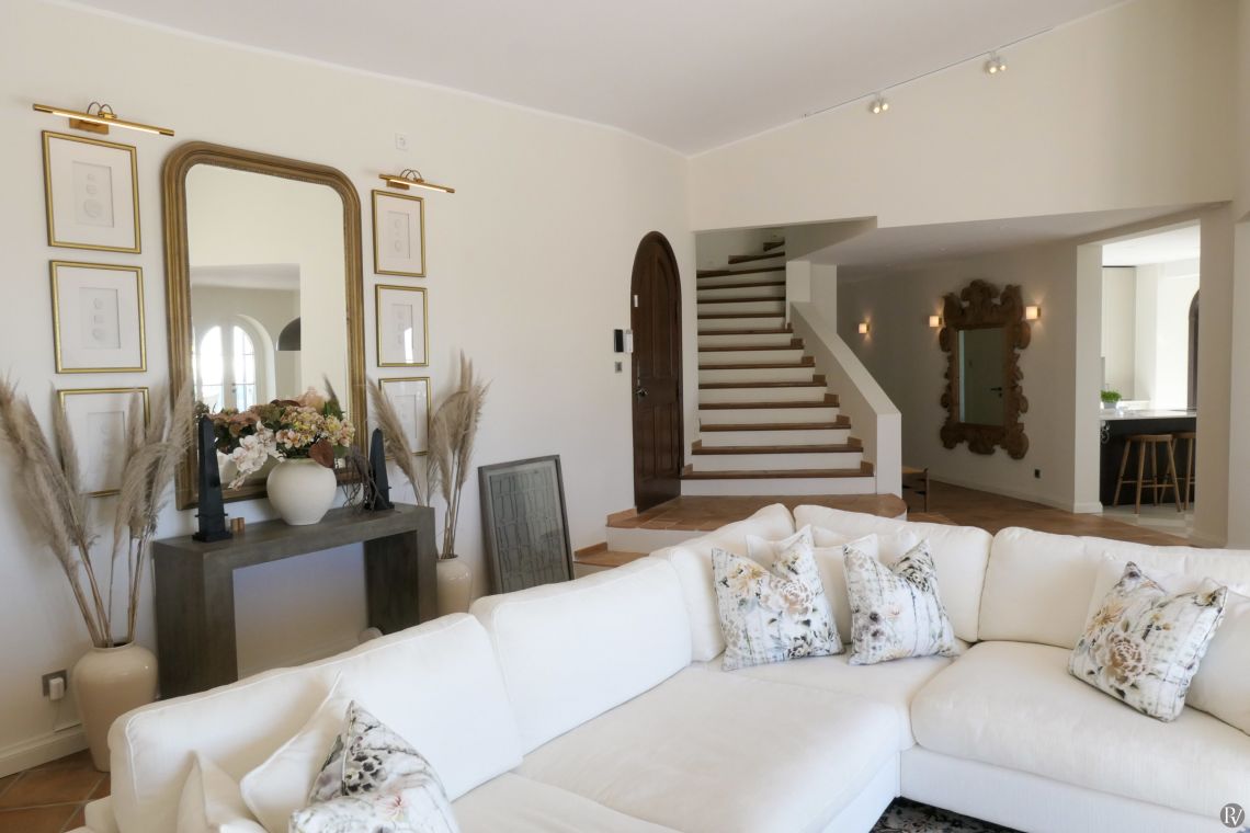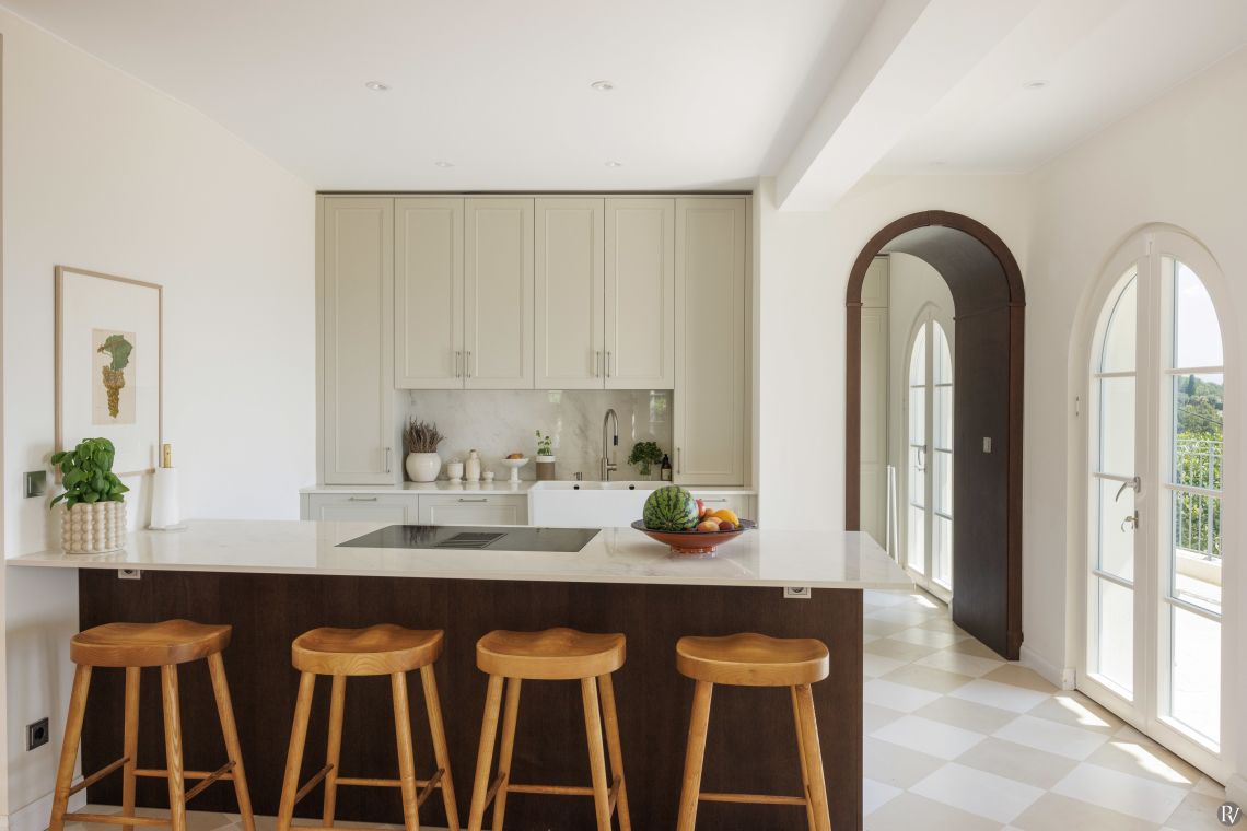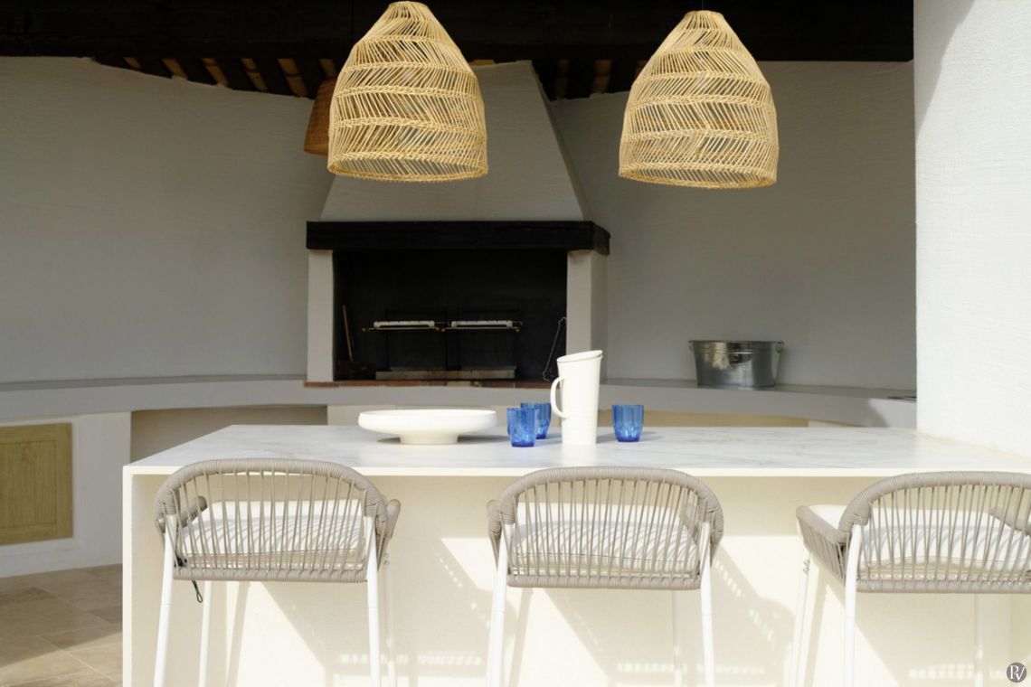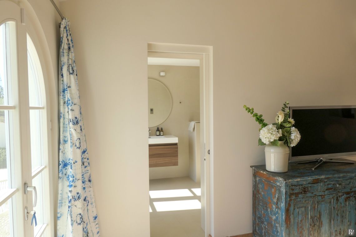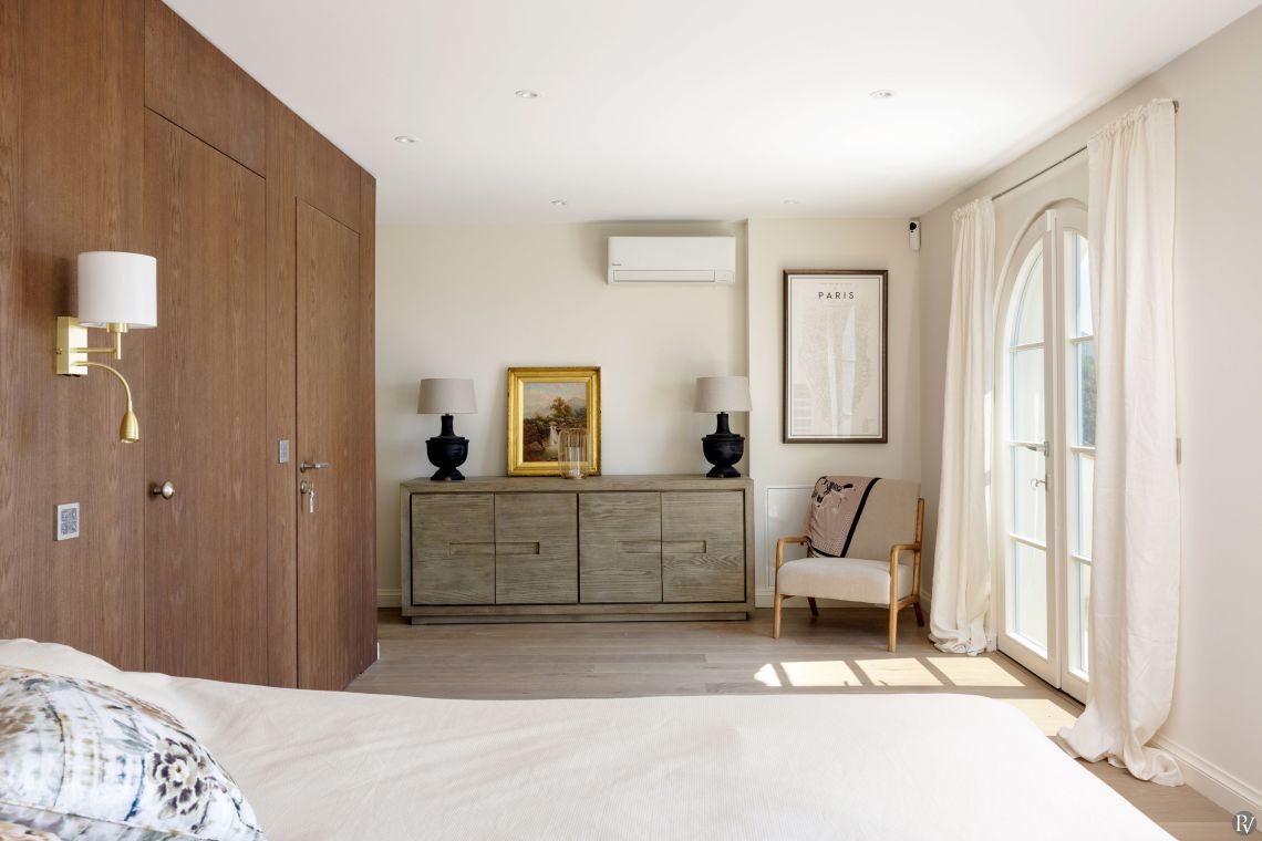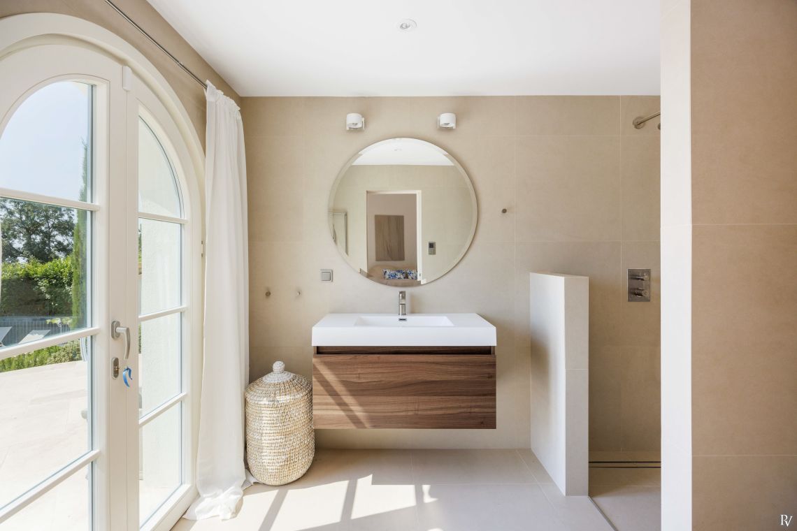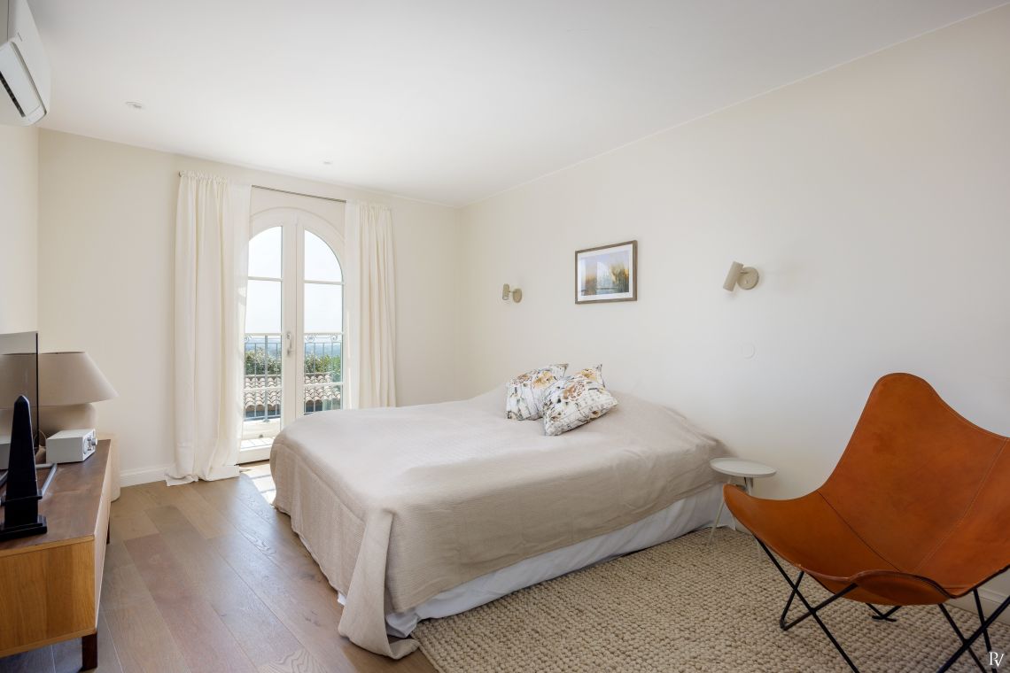 This villa beautifully combines French charm with Nordic inspired design, offering sweeping views of the sea and countryside. It features an infinity pool, gym, sauna, and six ensuite bedrooms spread across three levels. The interiors are bright, elegant, and spacious, with an open plan living area complete with a fireplace and direct access to the pool, a dining area, and a fully equipped main kitchen, along with a smaller secondary kitchen for added convenience. A utility room and guest WC provide practicality for everyday living.