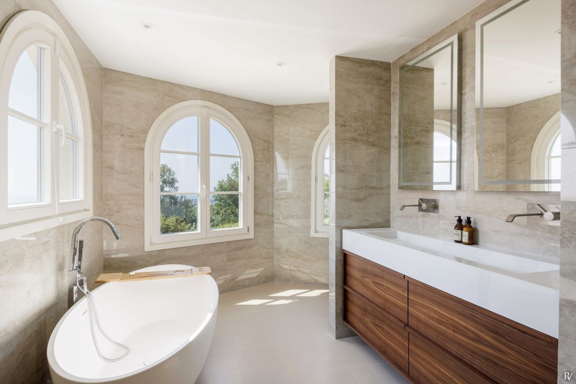 Outside, the villa is equally impressive, with a pool house, al fresco dining area, pétanque court, and gardens scented with lavender and olive trees, creating the perfect setting for relaxing days on the Riviera.