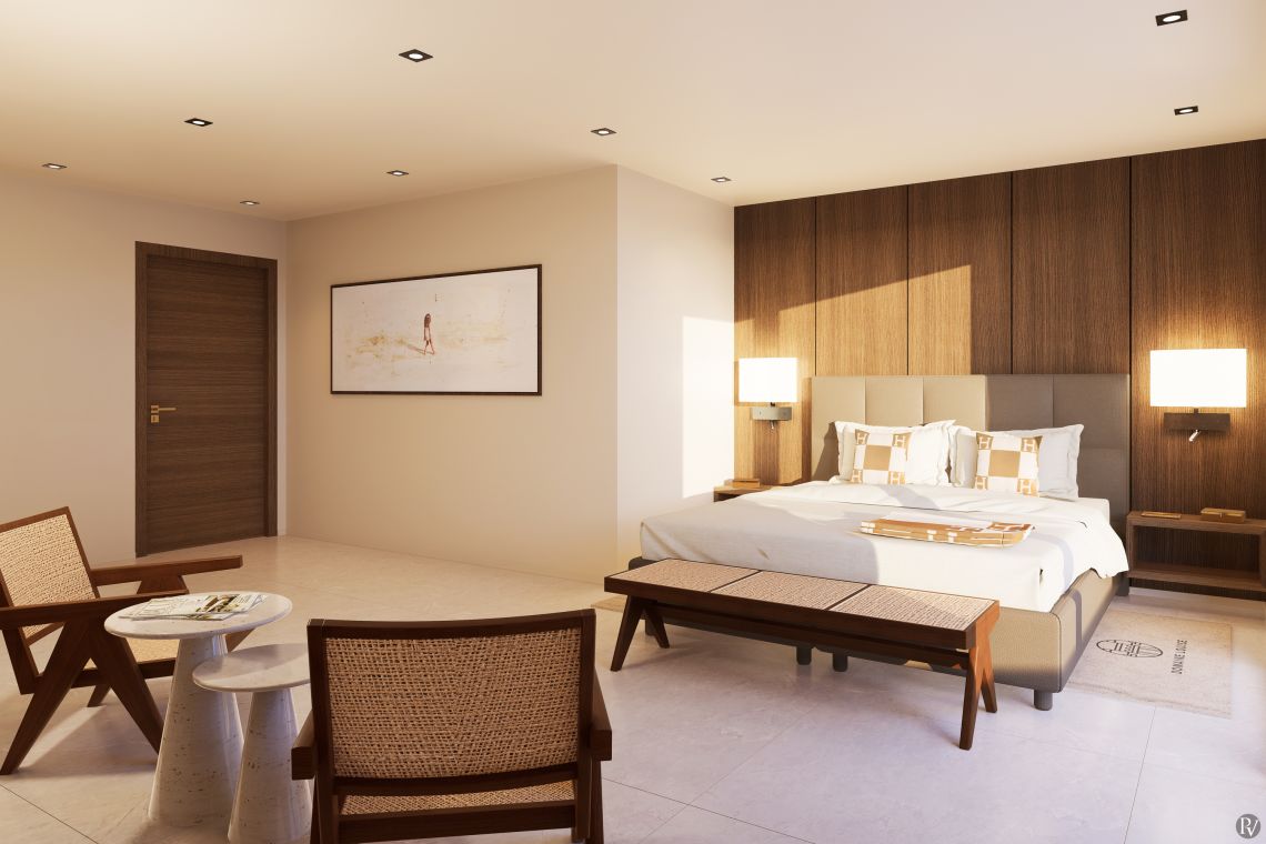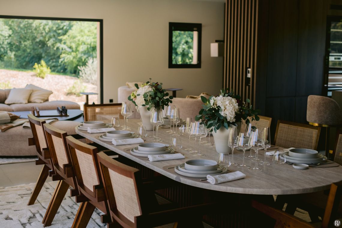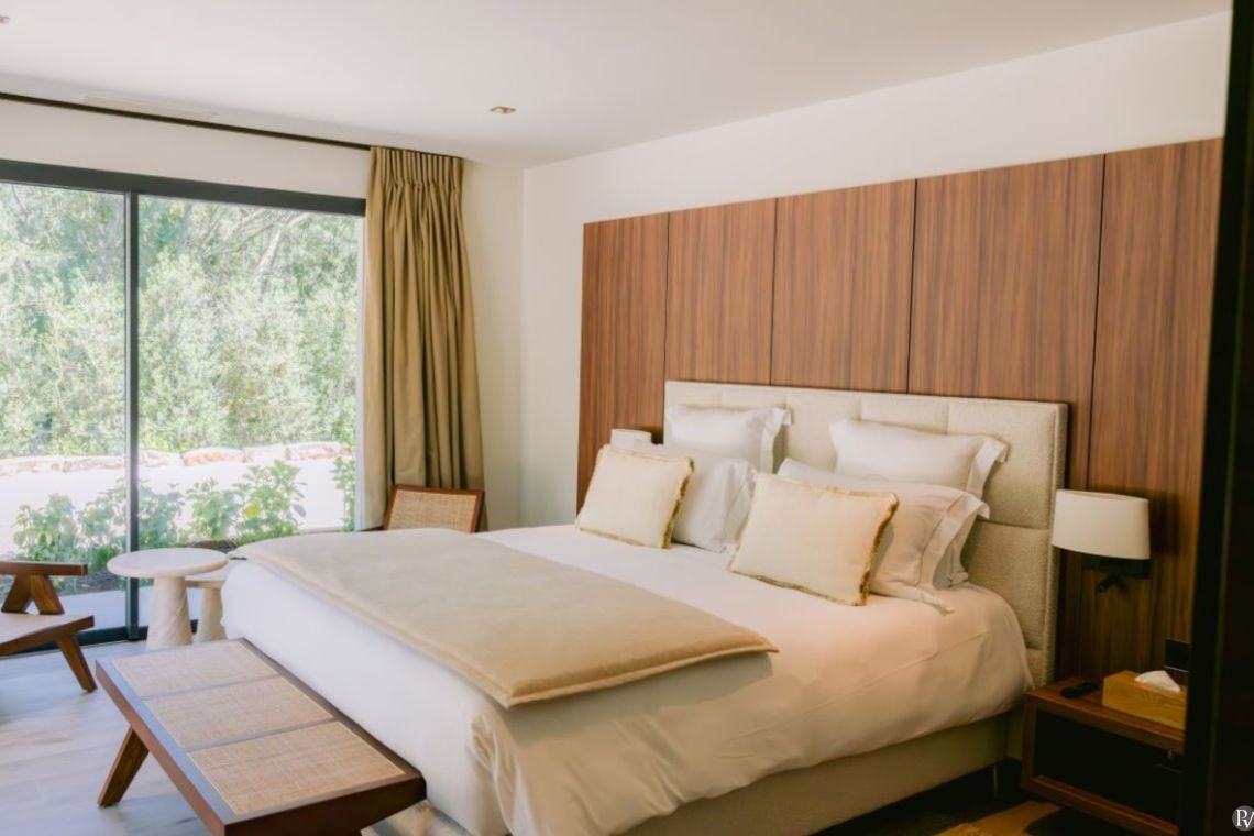 The villa features five ensuite bedrooms, four located in the main house and the fifth in the pool house, which also offers a summer kitchen and lounge area. Each room is thoughtfully stocked with BVLGARI welcome products and includes a safe for convenience and peace of mind.