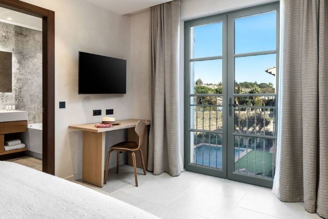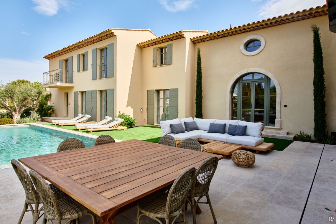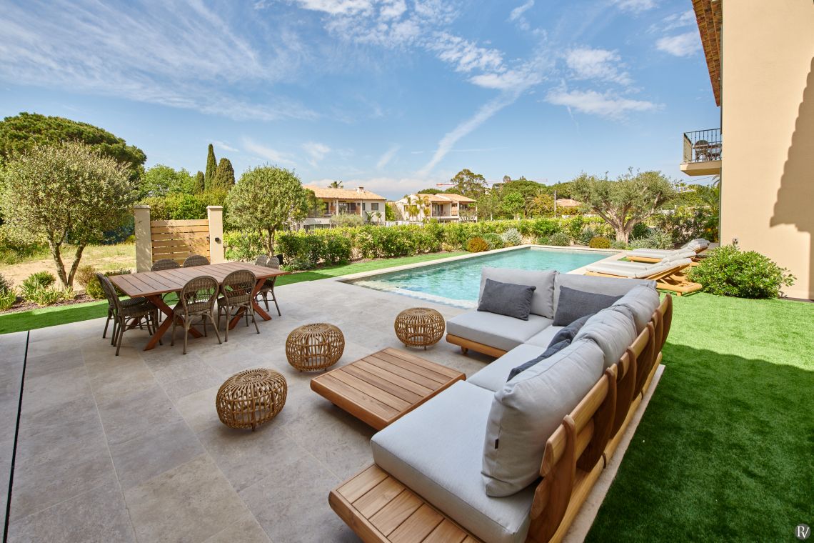 This luxury villa enjoys an exclusive location in one of France’s most desirable areas, just a short walk from the town centre and lively harbour of Saint-Tropez. From the first floor, guests can enjoy charming views of the village, its red and yellow bell tower, and the sparkling sea.