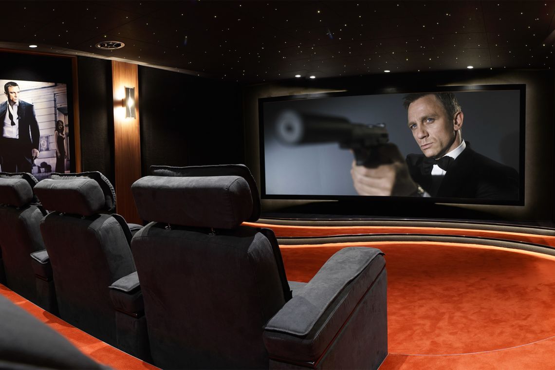 The lower level offers a large cinema room, a fully equipped Technogym gym, and a sauna, providing a complete wellness and entertainment experience. Additional amenities include a heatable swimming pool with jet stream, sound system, air conditioning, WiFi, hospitality trays in each bedroom, and optional access to the spa.