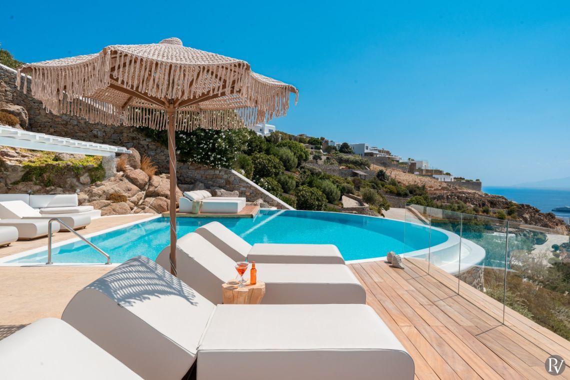 The most sought-after location on the island, minutes away from Psarou Beach and Mykonos Town, luxury Mykonos villa Carmina is an architectural gem, offering a nearly bird's-eye view over the sea all the way to the islands of Paros and Naxos. Enjoy your vacation relaxing on its totally wind-sheltered terrace with friends and family or exploring this cosmopolitan part of the island; Carmina’s convenient location grants easy access to whatever the day calls for, from bar crawls and shopping therapy to lazy moments under the sun at the beach.
