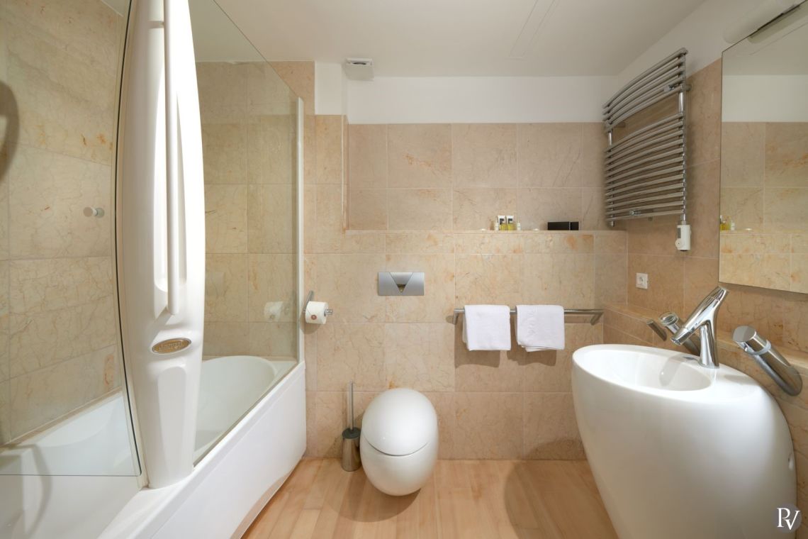 The first residence includes two bedrooms: a spacious master bedroom with a private bathroom and balcony, and another double bedroom also with a private bathroom and balcony.