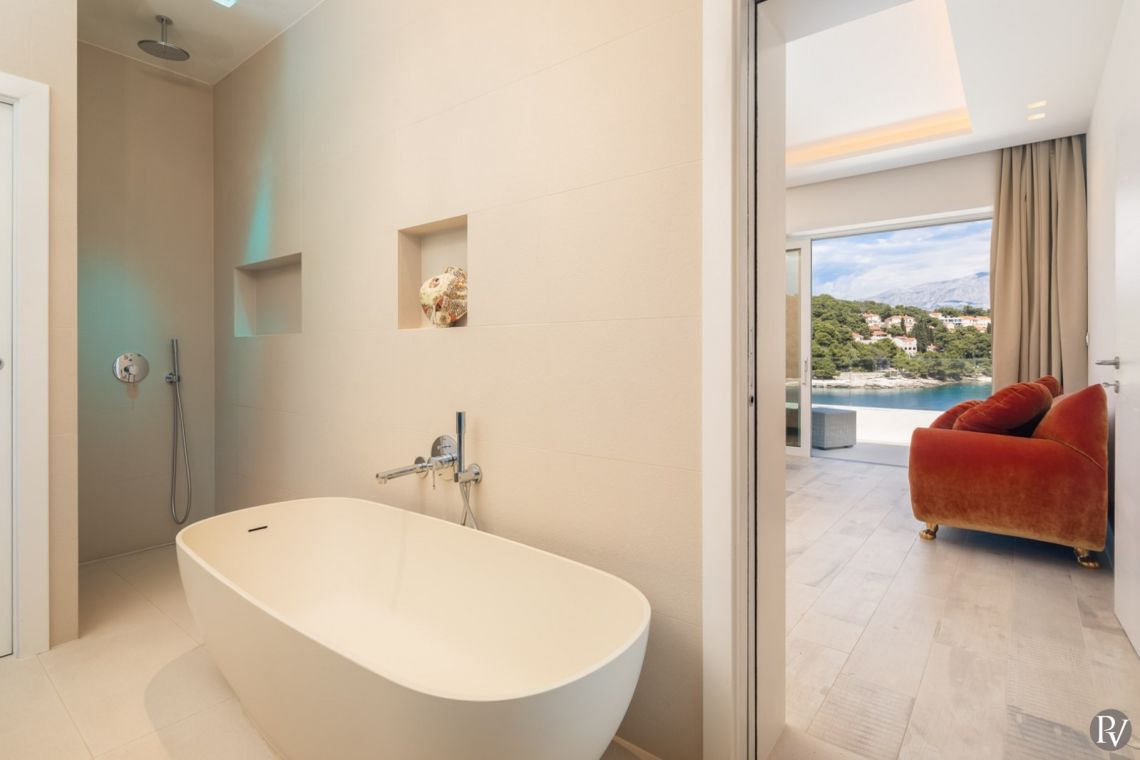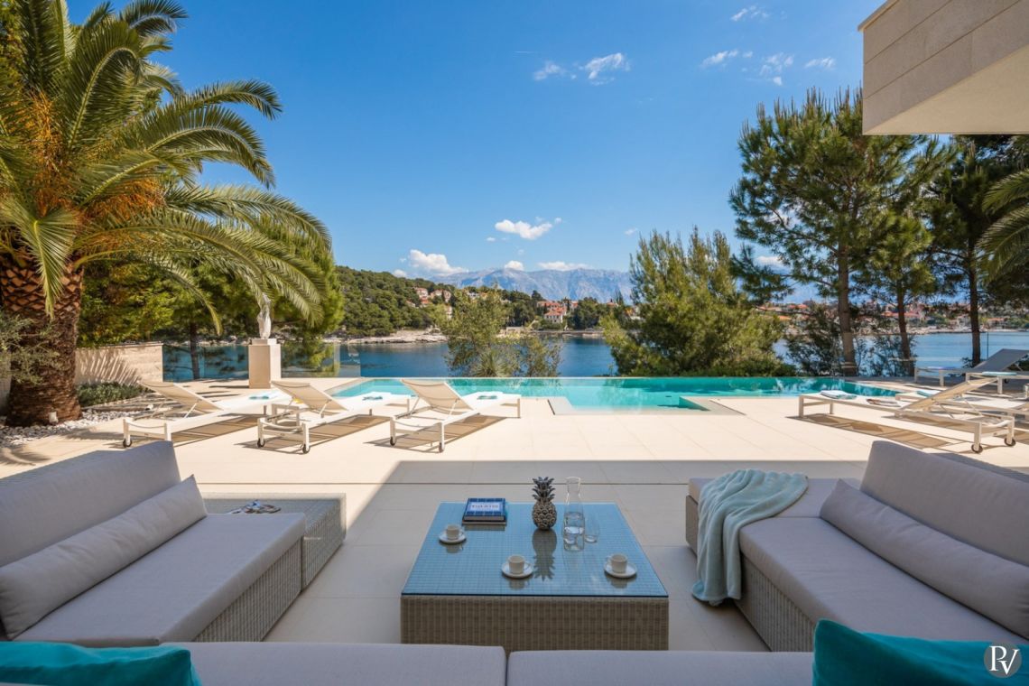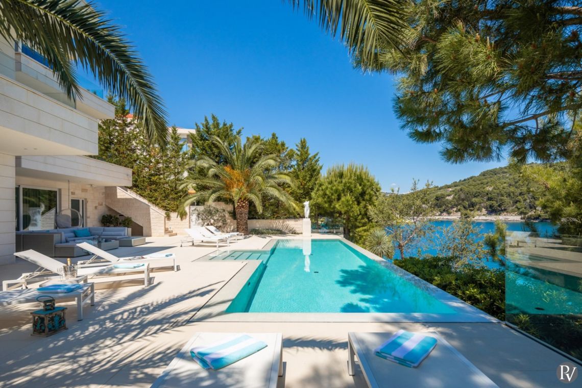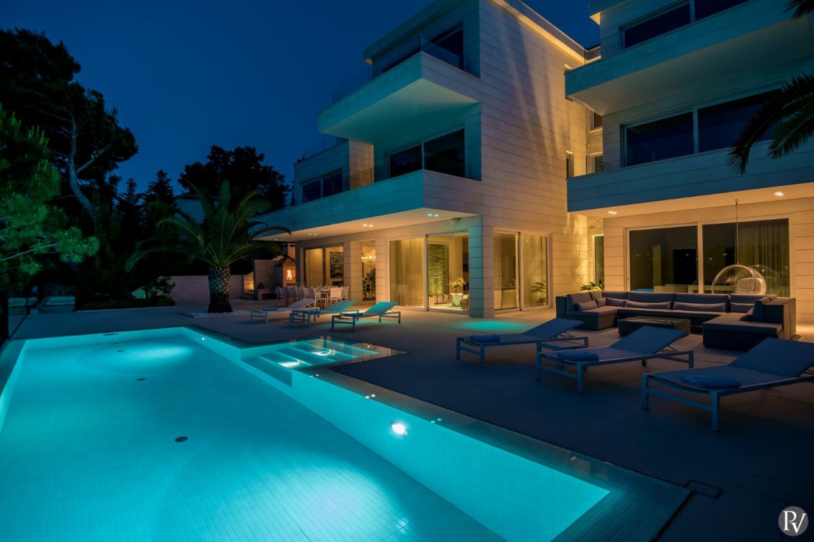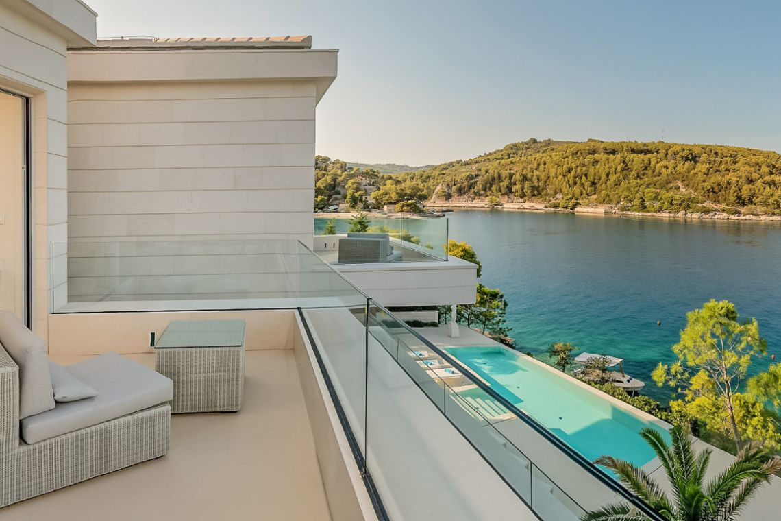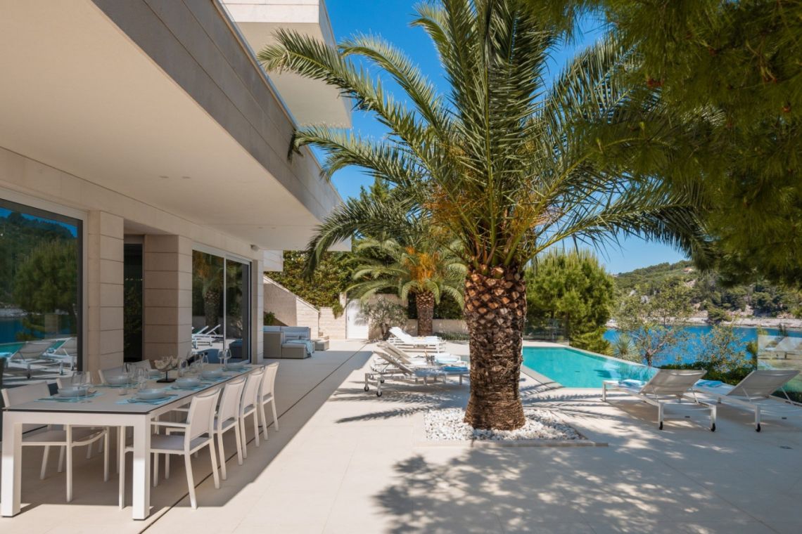 Villa Murno is a luxury sea front villa set in a tranquil bay near Sumartin on Brac Island in Dalmatia, Croatia. Spread over 3 floors, the property offers 550 m² of refined living space on a 1000 m² plot and comfortably accommodates up to 12 guests. Designed for relaxed coastal stays, the villa delivers sweeping sea views from many rooms and terraces.