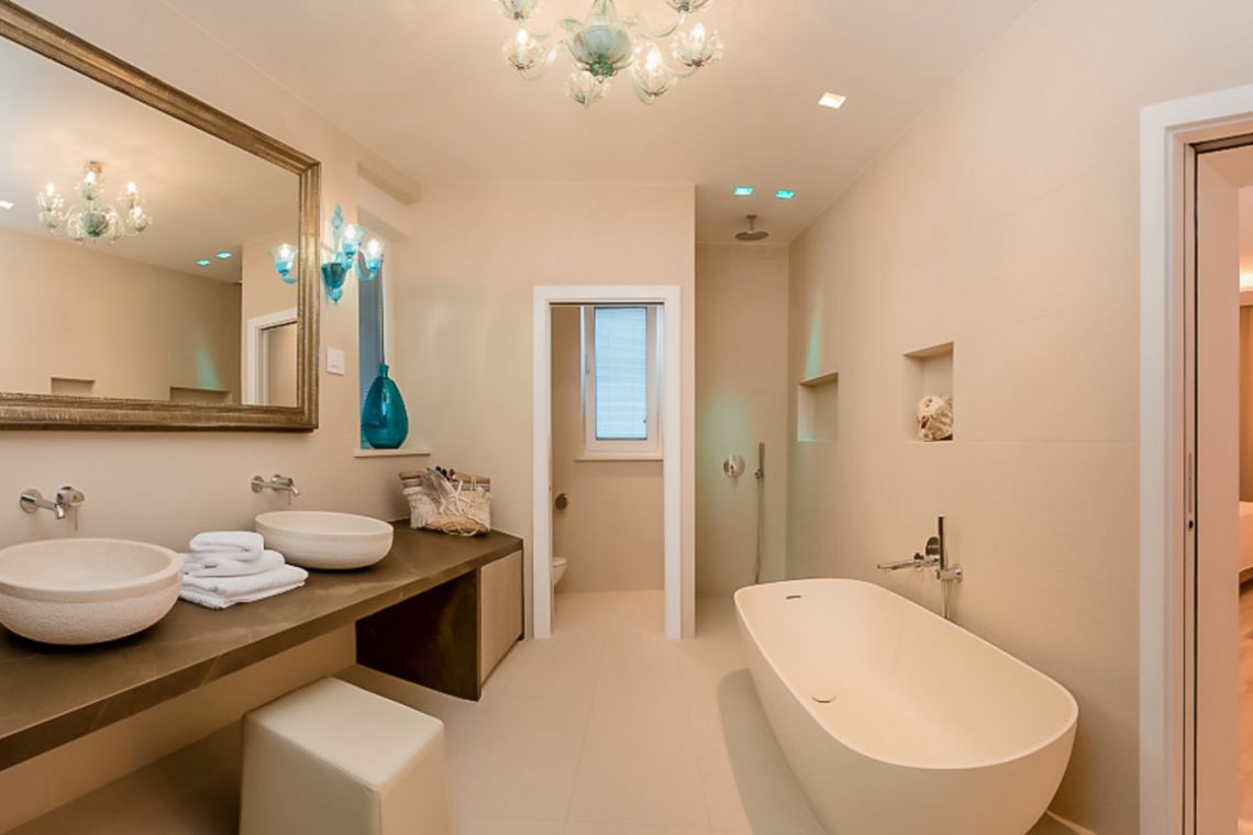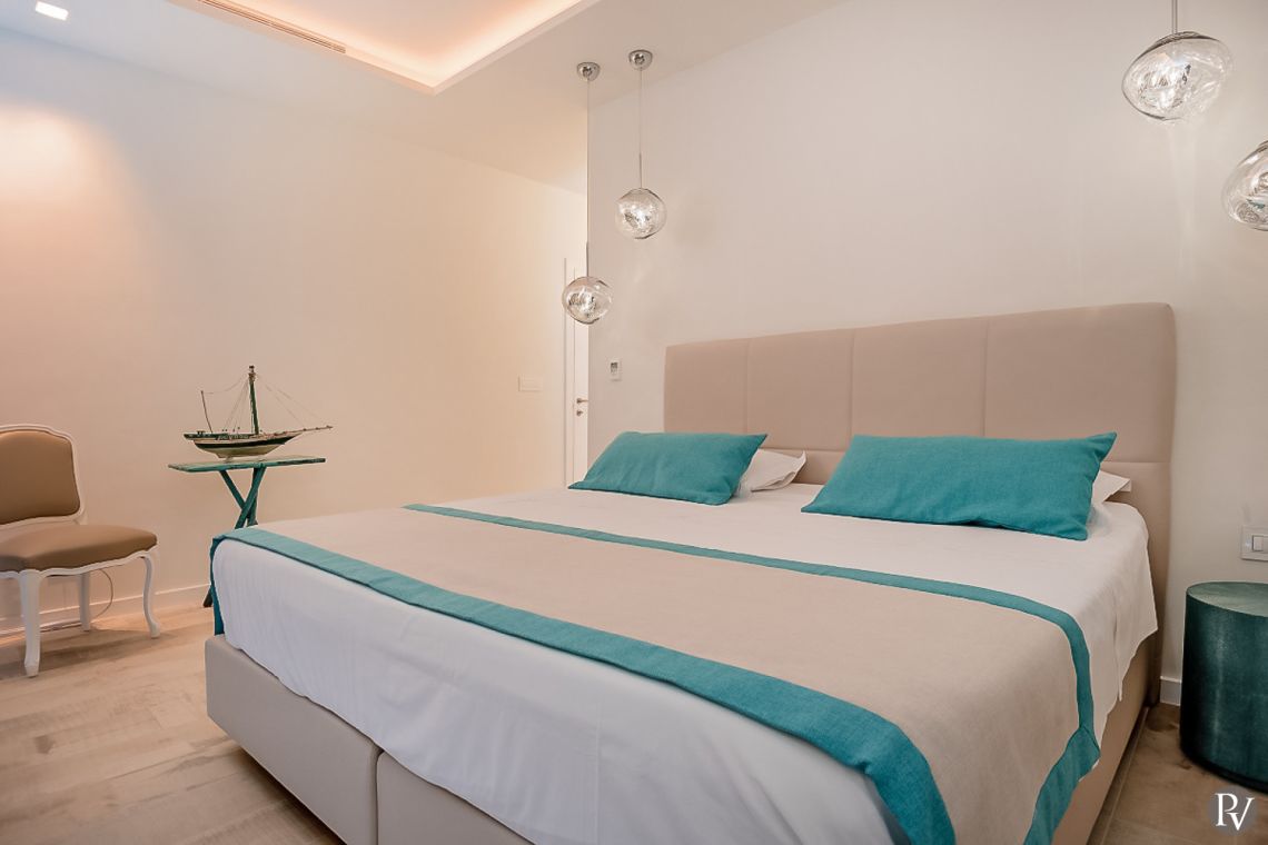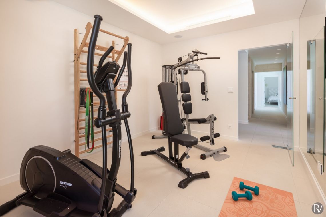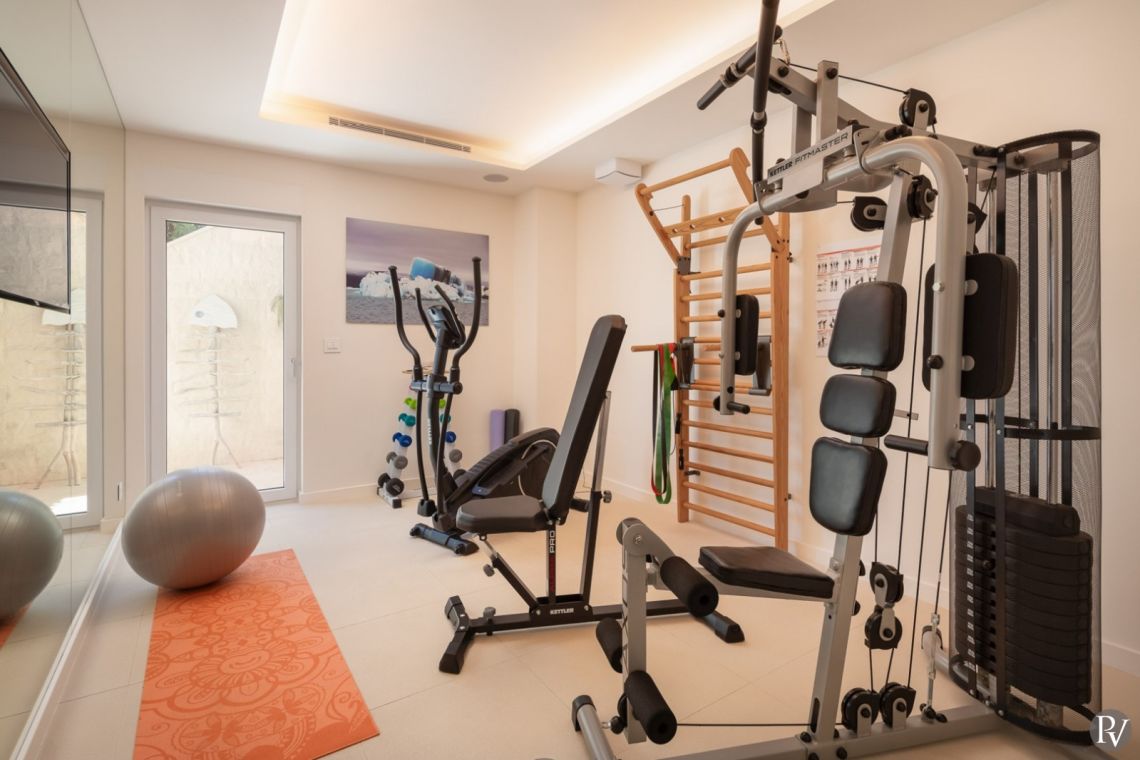 Villa Murno has 6 elegant bedrooms and 6 en suite bathrooms. Each bedroom has a king size bed and private bathroom for guest comfort. The first floor includes a master bedroom with a walk in wardrobe and sea views, plus 2 further bedrooms with private terraces overlooking the sea. The second floor provides another master bedroom with a walk in wardrobe and private terrace, together with 2 more sea facing bedrooms each with an en suite and terrace. A small gym on the first floor offers additional convenience for active guests.
