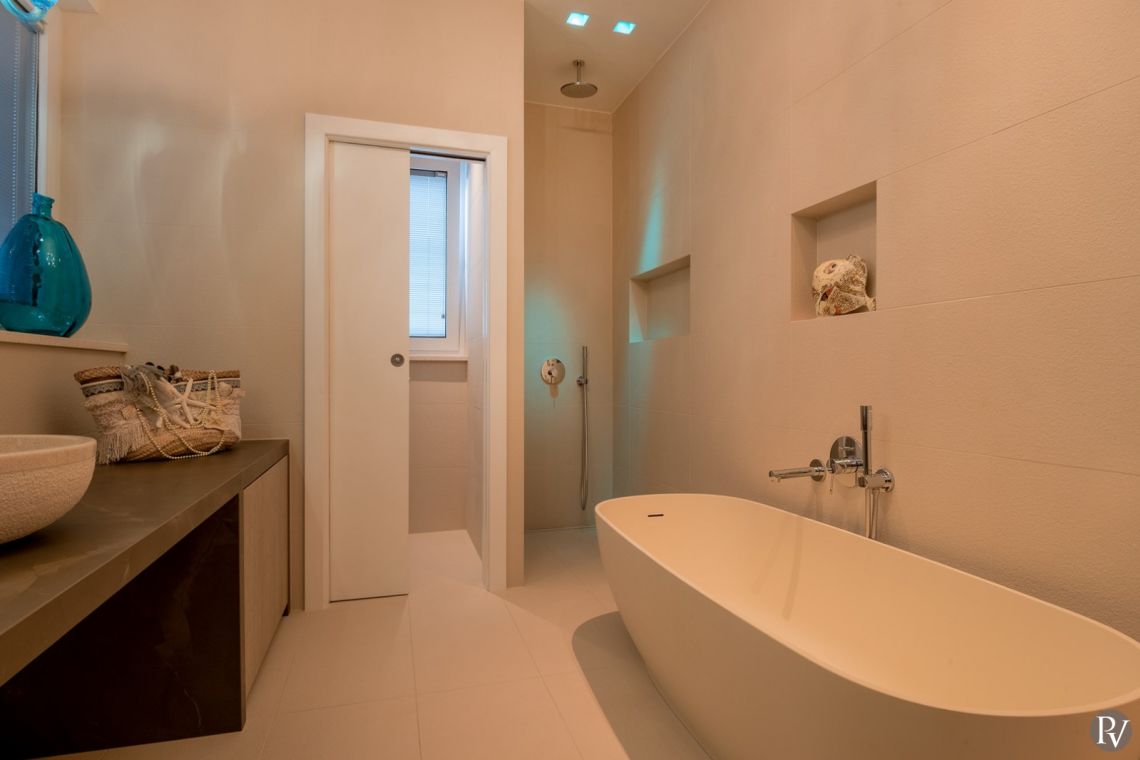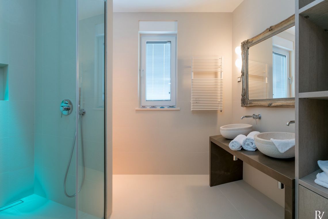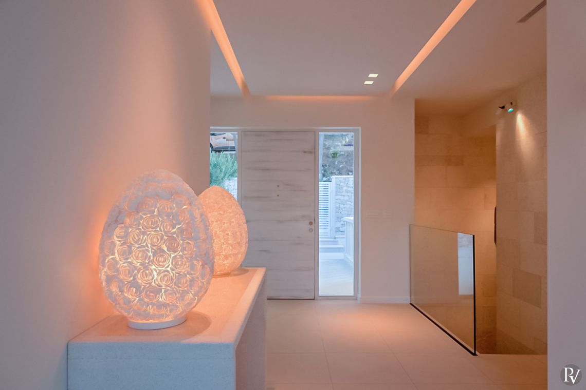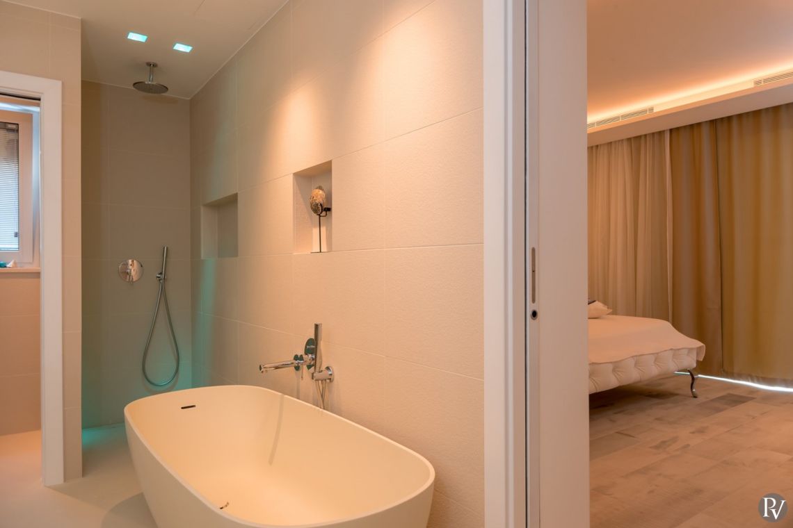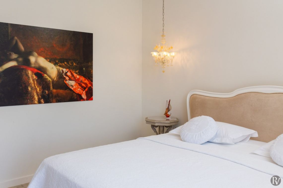 Villa Murno has 6 elegant bedrooms and 6 en suite bathrooms. Each bedroom has a king size bed and private bathroom for guest comfort. The first floor includes a master bedroom with a walk in wardrobe and sea views, plus 2 further bedrooms with private terraces overlooking the sea. The second floor provides another master bedroom with a walk in wardrobe and private terrace, together with 2 more sea facing bedrooms each with an en suite and terrace. A small gym on the first floor offers additional convenience for active guests.