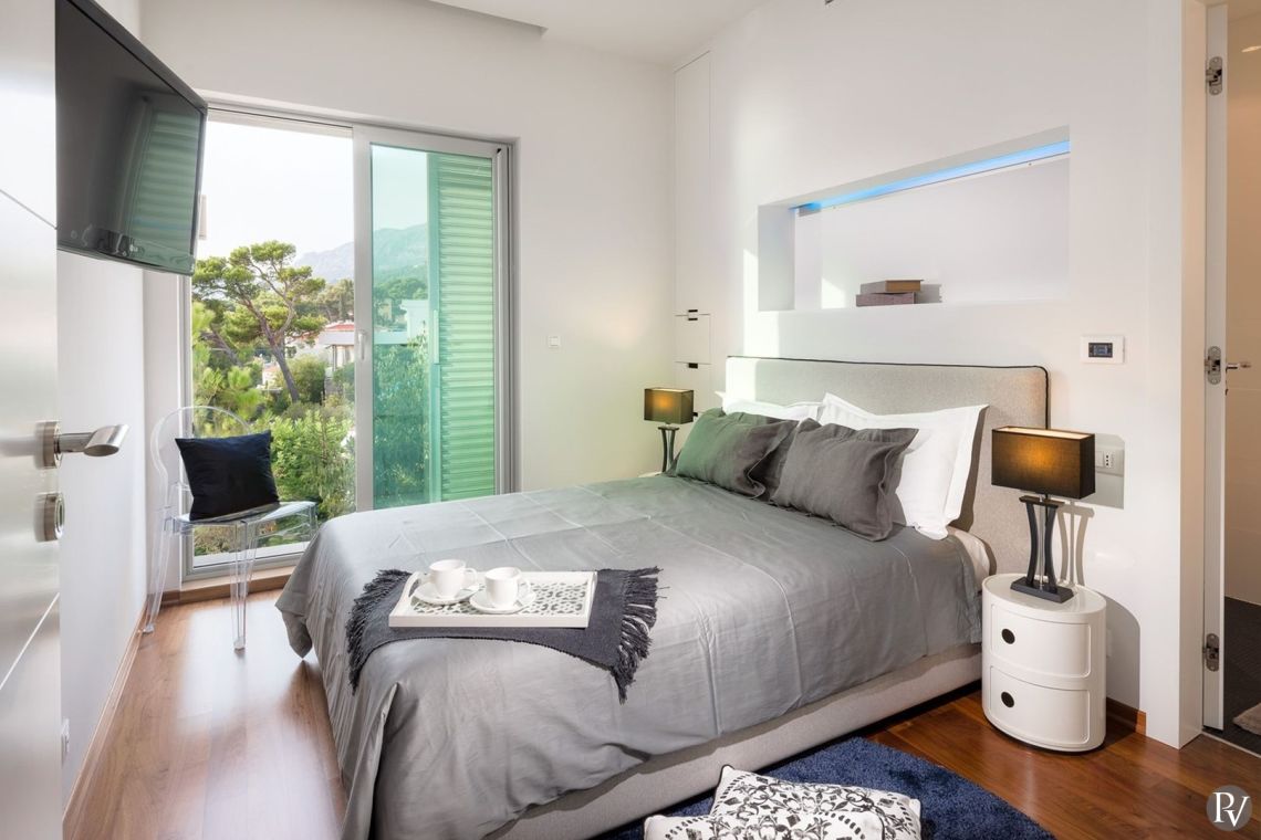 Villa Prida features five elegantly designed en-suite bedrooms, offering comfort, privacy, and stunning sea views. Each room is thoughtfully arranged to ensure a restful stay and easy access to the villa’s communal living areas and terraces.