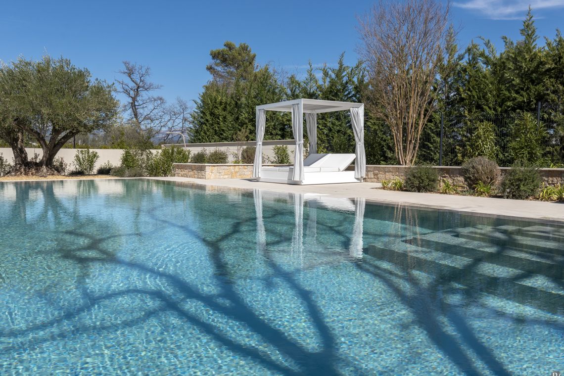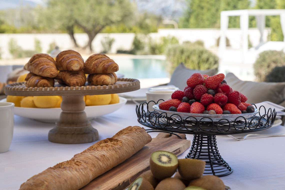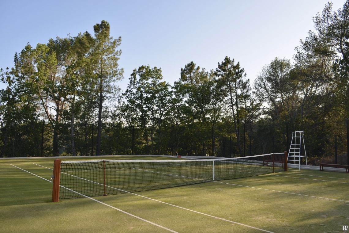 The villa is set within mature grounds dotted with olive trees and enjoys a south-facing private 14m x 5m heated salt-water mirror pool. Outdoor facilities include a fully equipped gym with rowing machine, exercise bike, and free weights, an artificial grass tennis court, and a private pétanque court. Guests can enjoy outdoor dining with a gas BBQ, and two golf buggies are included for exploring the estate and accessing nearby facilities.
