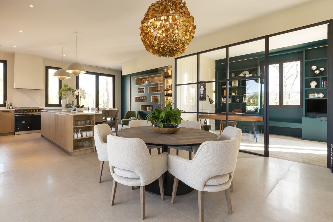 Villa Pepin is ideally located near Fréjus and Cannes, surrounded by the picturesque hilltop villages of Fayence, each rich in history and offering breathtaking views over the vibrant Provençal landscape. Set within a secure private domain with gated security at the entrance, the villa enjoys a quiet and peaceful setting while being within walking distance of a resort spa and fitness centre, golf facilities, and several restaurants. Maintained in superb condition, the villa offers modern comfort with all amenities included, and two golf buggies are provided for guests to easily explore the estate.