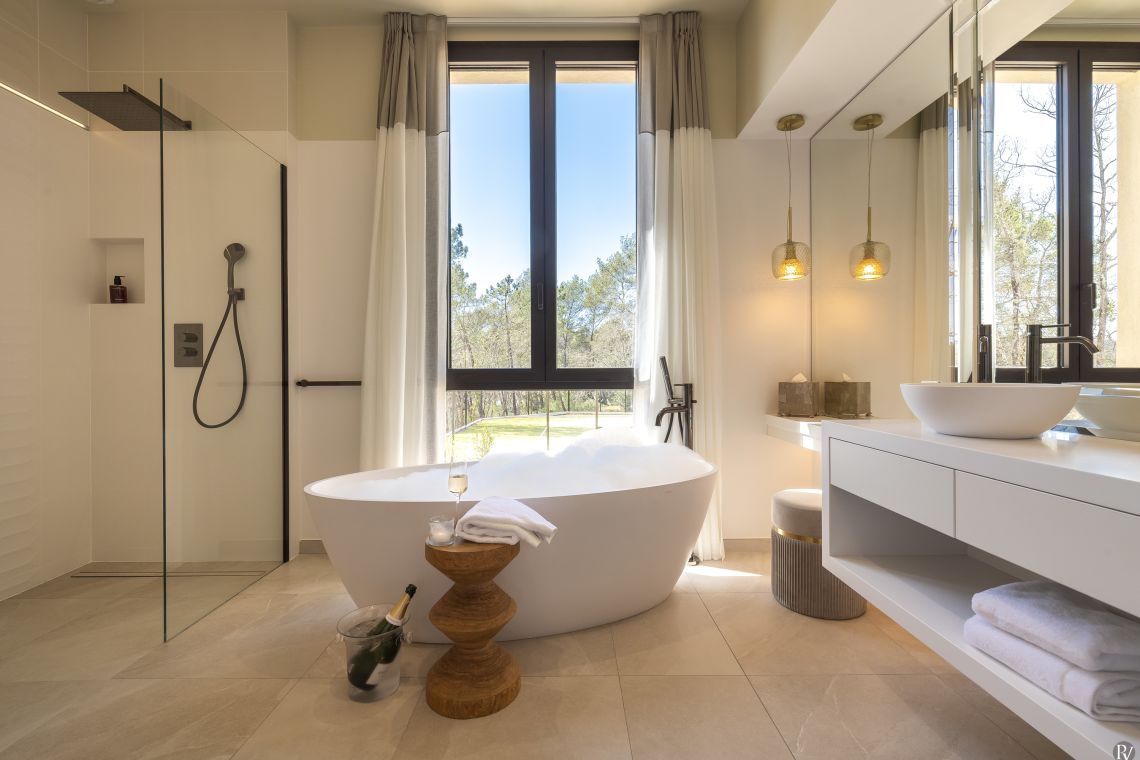 Villa Pepin offers four beautifully appointed double bedrooms. Three double bedrooms each feature ensuite shower rooms, while the master suite benefits from an ensuite bathroom with a freestanding bathtub, walk-in shower, and direct access to the garden. A guest WC is also available for added convenience.