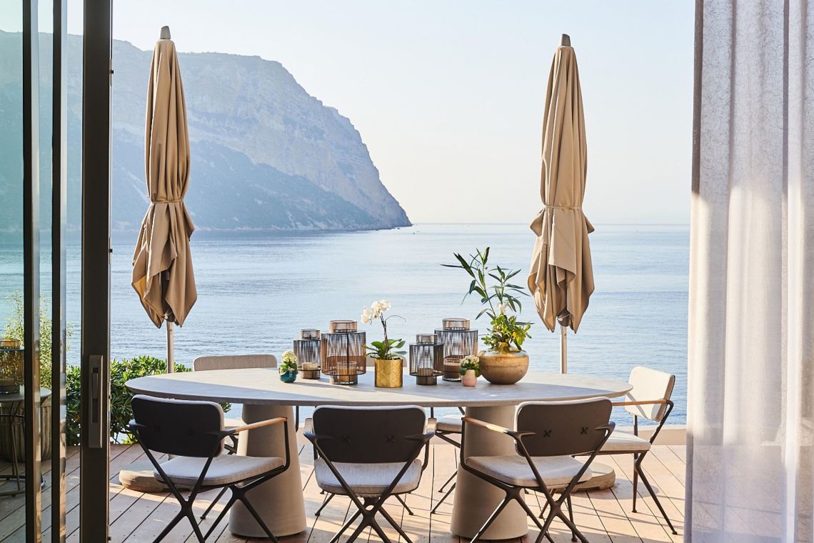 A few minutes’ walk from the harbour of Cassis, Villa Arimo is discreetly positioned behind Les Roches Blanches, the iconic 1920s hotel reimagined as a five-star luxury destination. Guests benefit from private access to the hotel while enjoying the independence of an exclusive private villa. Facing Cap Canaille and the endlessly blue Mediterranean, the property promises a setting of rare beauty and tranquillity.