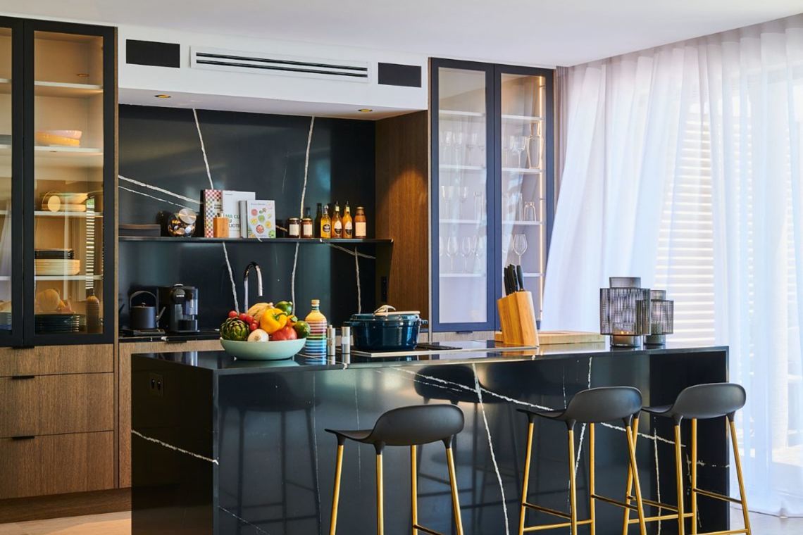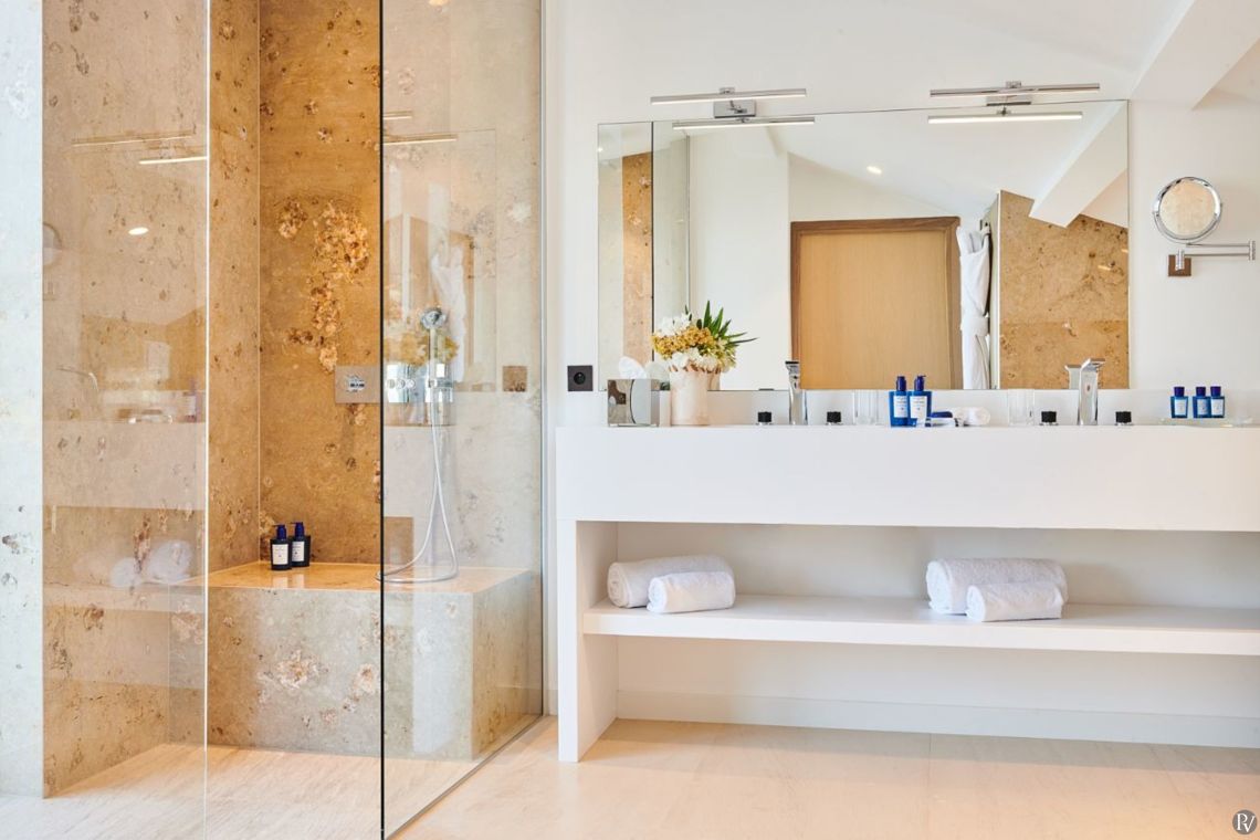 Villa Arimo features four elegant bedrooms, each designed as a private suite. Every suite is furnished with a king-size bed (200 x 200 cm) and offers a calm, refined retreat with exceptional comfort and privacy, ideal for families or groups of friends.