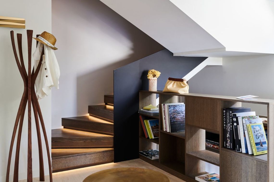 Designed to blend seamlessly into the rock face against which it was built, Villa Arimo unfolds gracefully over four levels. The interiors reflect a refined simplicity, with clean architectural lines and noble materials chosen to enhance the surrounding natural beauty. Every space has been carefully curated to create a serene and luxurious atmosphere.