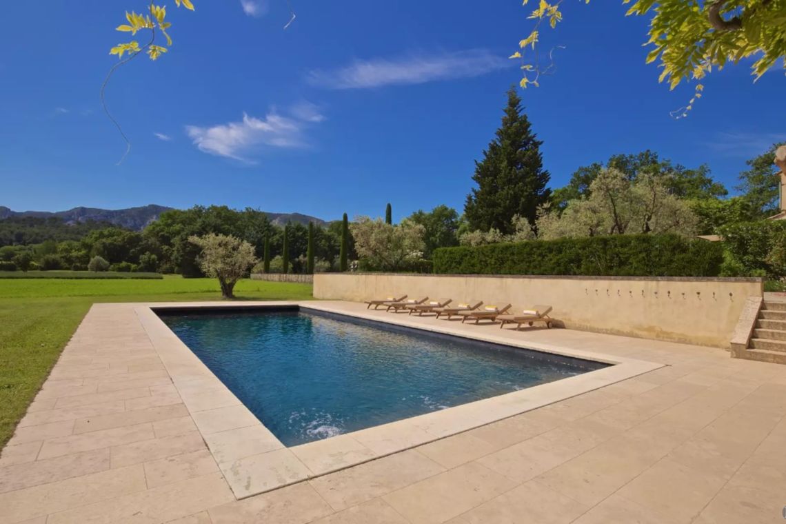 The property is set within 11 hectares of beautifully maintained parkland, dotted with peaceful seating areas and lush vegetation. Guests can enjoy a large shaded terrace for summer dining, relaxation areas around the pool house, and a private heatable swimming pool measuring 15 m x 6 m with Roman steps. Ample parking is available, and the outdoor spaces provide an idyllic setting for relaxation and outdoor living in Provence