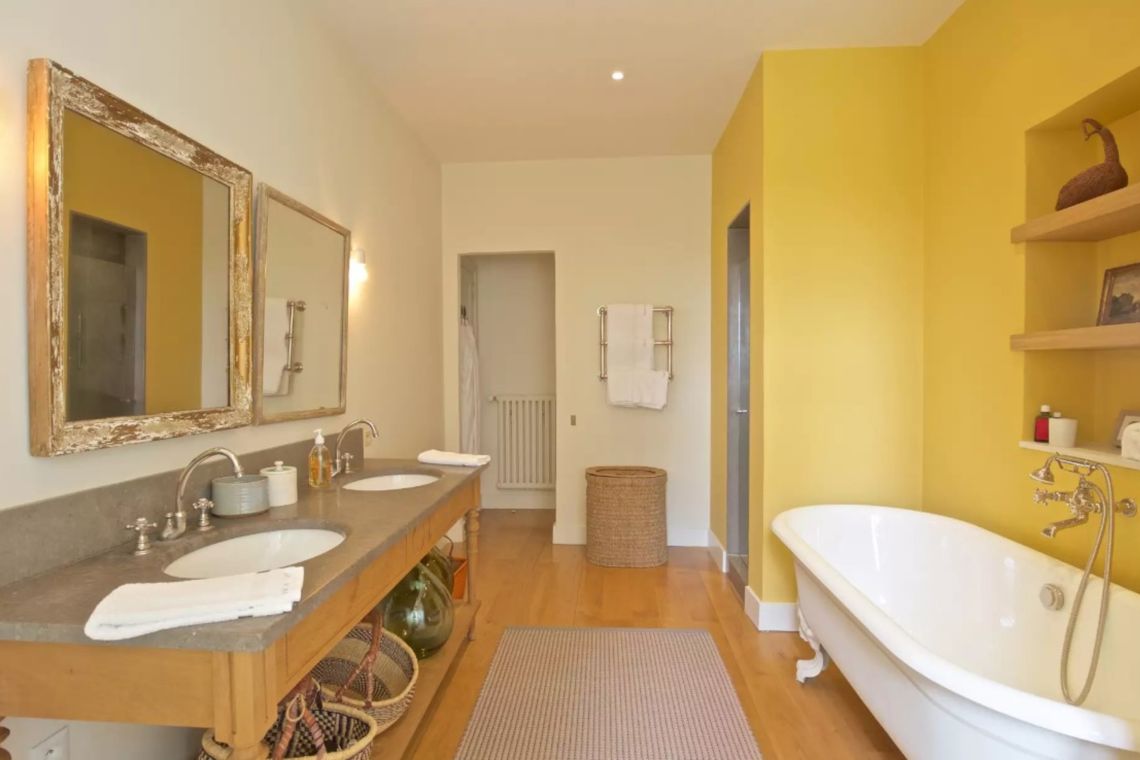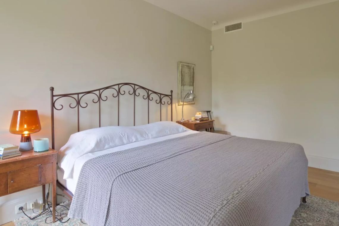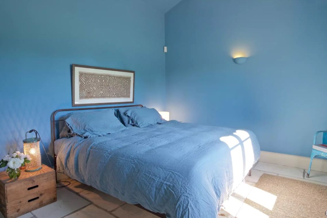 The main farmhouse offers five bedrooms. On the ground floor is a bedroom with a king-size bed and en suite shower room. The first floor includes a king-size bedroom with en suite bathroom, a bedroom with twin beds convertible to a king-size bed, a bedroom with bunk beds convertible to a double, and a master bedroom with king-size bed, dressing room and full en suite bathroom.