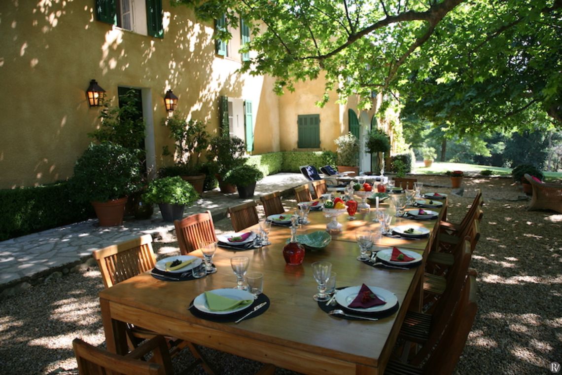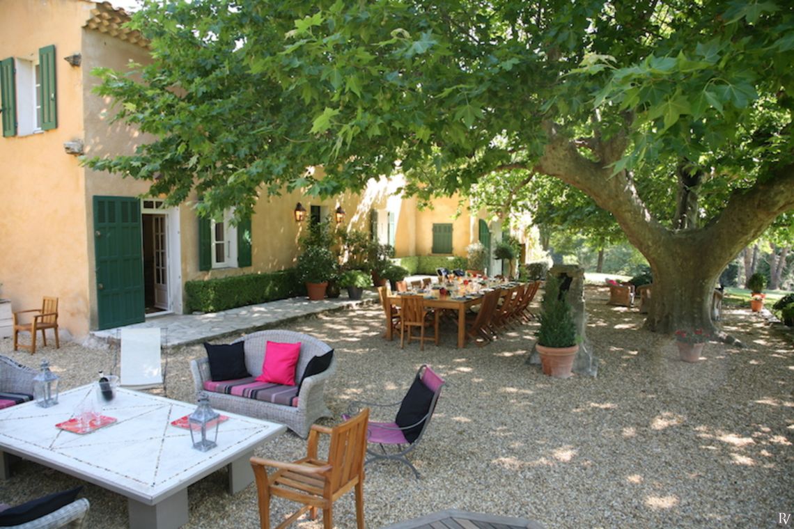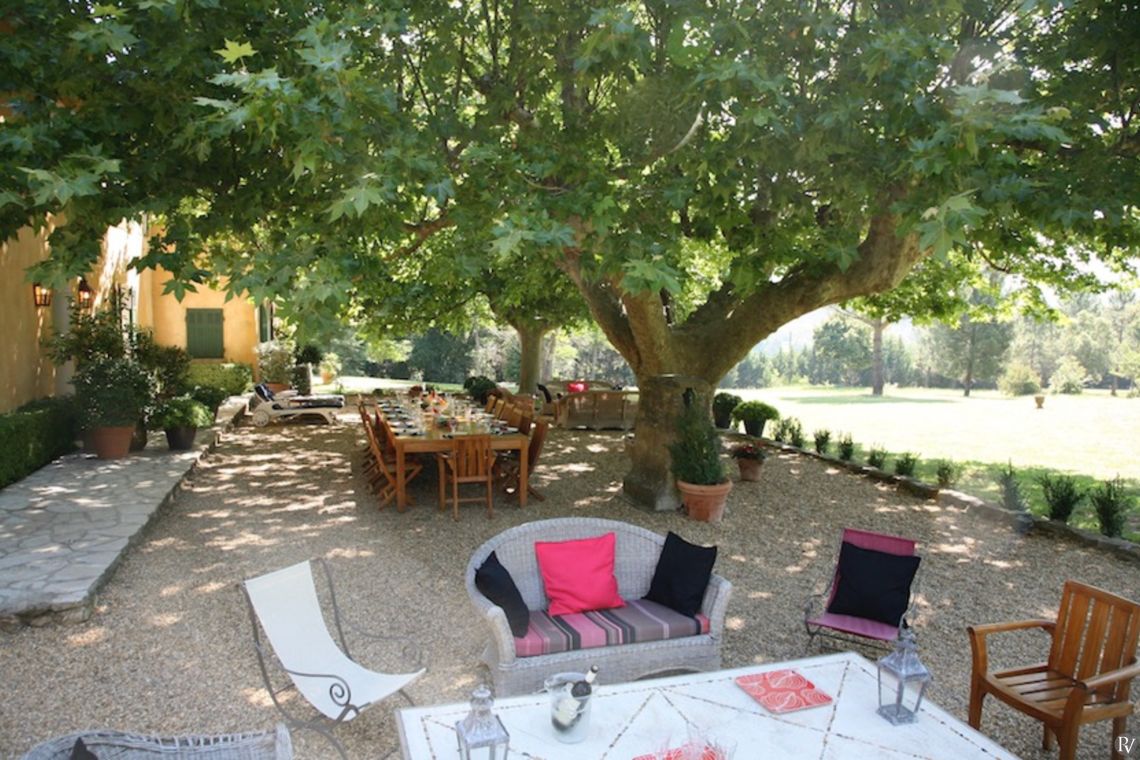 Set within extensive private parkland, the property offers a peaceful and secluded setting surrounded by natural beauty. A spacious terrace provides the perfect spot for outdoor dining, with comfortable seating beneath the dappled shade of mature plane trees. A portable gas barbecue is available on request, ideal for relaxed summer evenings.