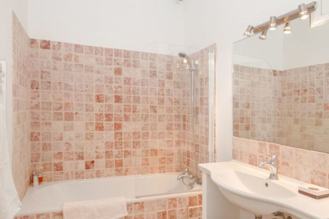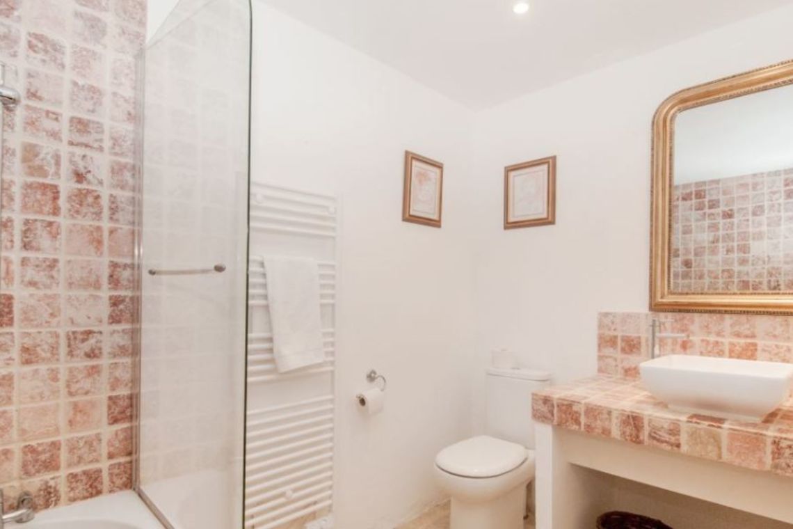 Spiral stairs from the dining area lead down to the lower ground floor, where there is a summer living room/snug with a DVD and screen, located next to the pool. This level also features a double bedroom with French doors opening onto a terrace overlooking the pool, along with an en suite bathroom and WC.
