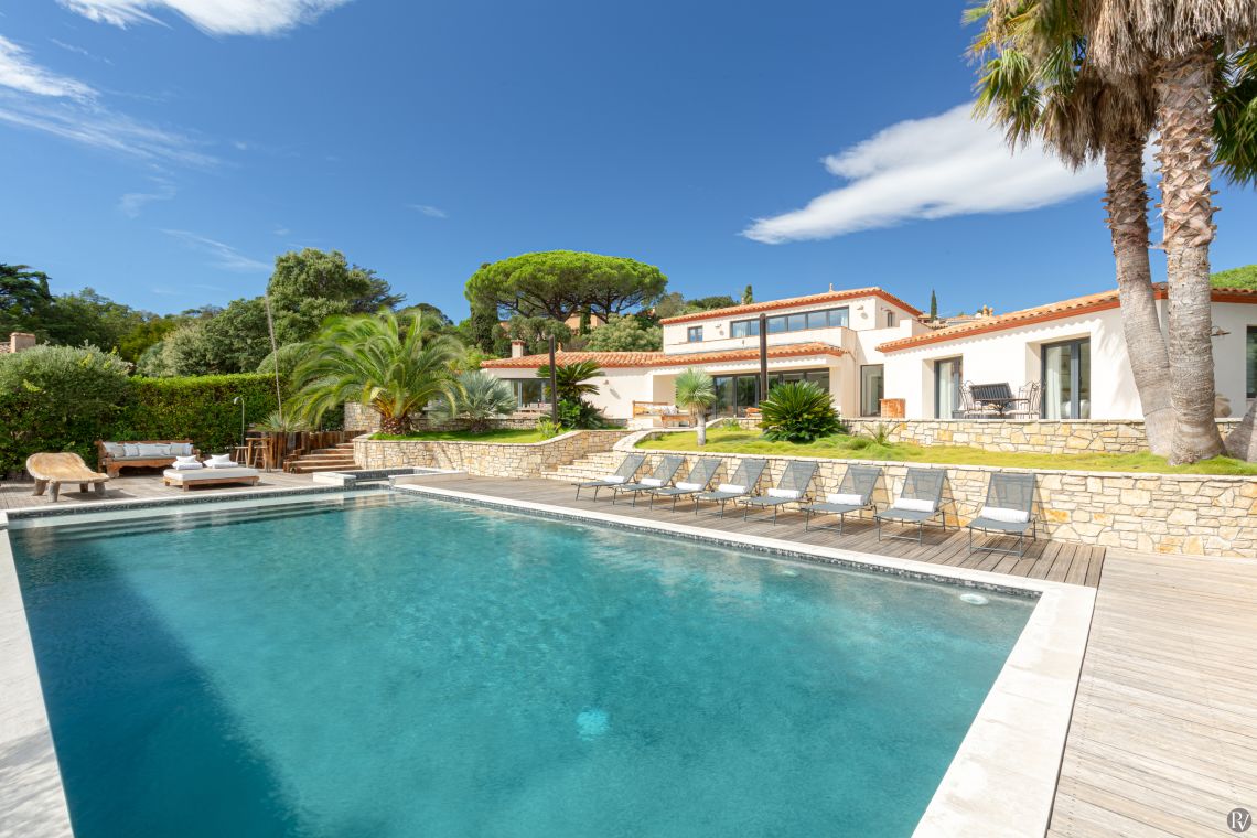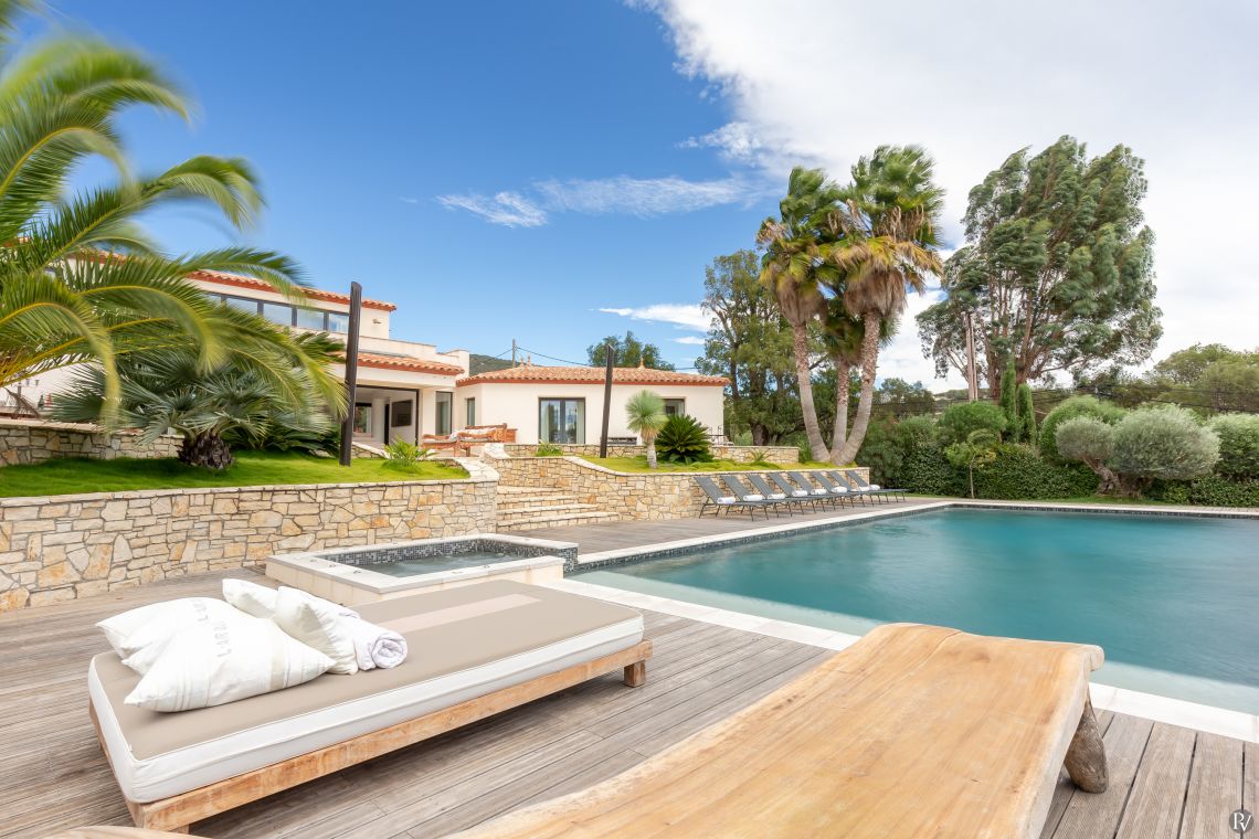 Villa Florent is a stunning five-bedroom luxury property overlooking the Beauvallon Golf Course and the Bay of Saint-Tropez. With a private infinity pool, heated jacuzzi, gym, steam room, and private cinema, the villa offers an exceptional setting for a refined and relaxing stay. Beaches, restaurants, and a local boulangerie are all within a comfortable 10–15 minute walk.