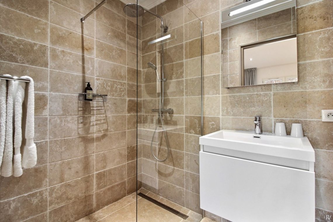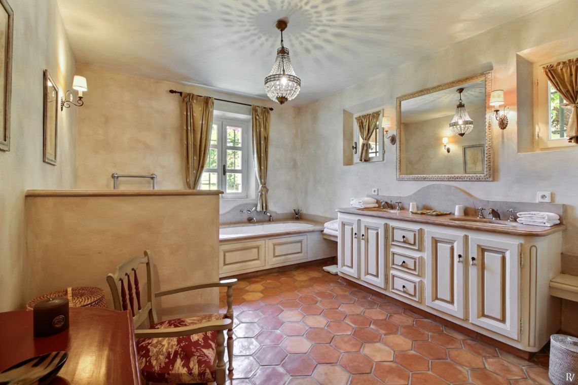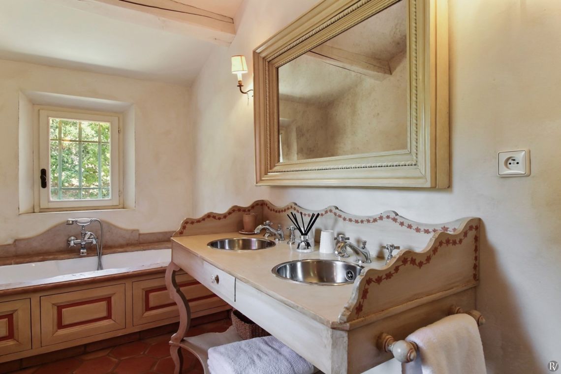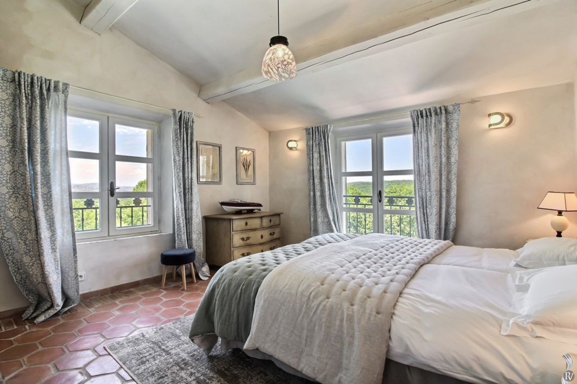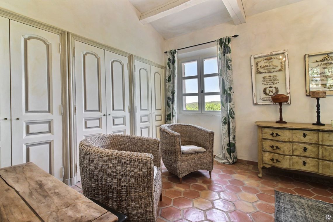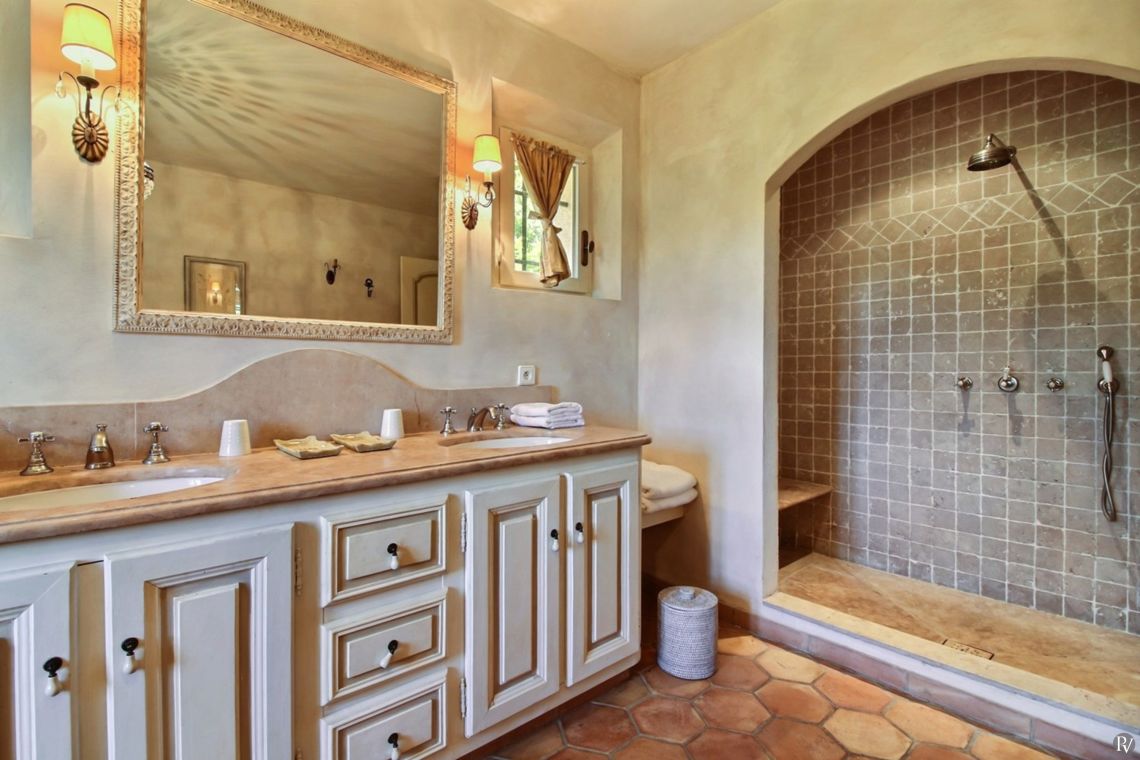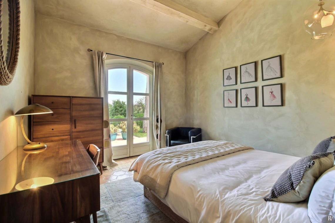 Upstairs are two further bedrooms, both air-conditioned and with ensuite facilities. One enjoys views over the Gulf of St Tropez.
