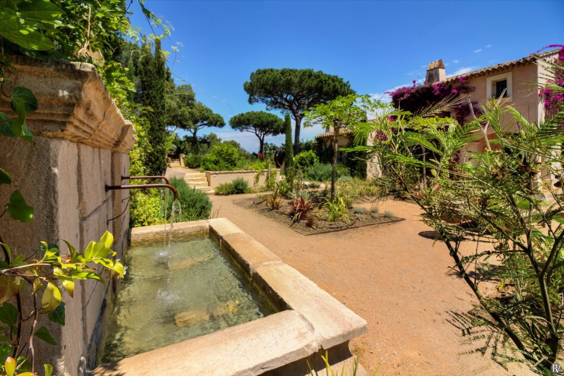 Set within 5,000 m² of landscaped grounds, the gardens feature expansive lawns, mature trees, fruit trees, and a vegetable garden. A private 12m x 6m heatable salt-water swimming pool with Roman steps is surrounded by a sunbathing terrace. Multiple terraces provide outdoor dining and relaxing areas, including an inner courtyard with a charming feature fountain. An outdoor shower and uninterrupted views over the vineyards of Château Minuty complete this serene and exclusive outdoor setting.