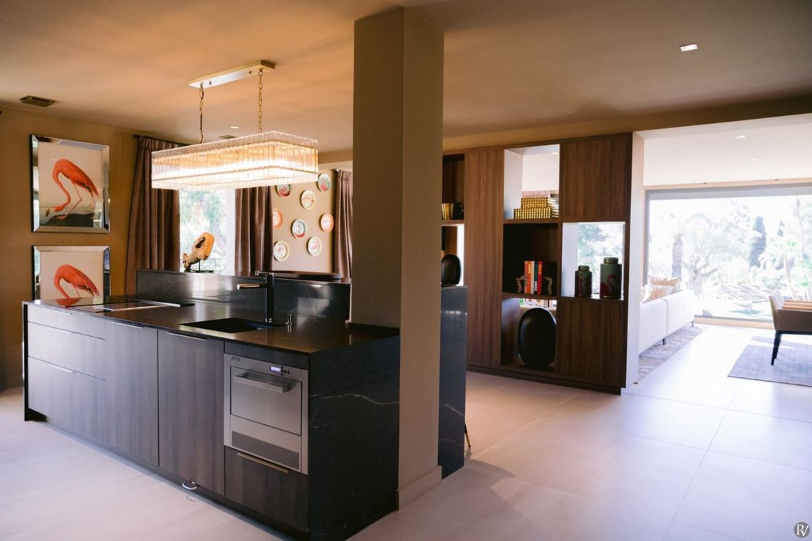 The ground floor, at garden level, includes a pool house with summer kitchen as well as a professional-grade kitchen. This level also houses an expansive bedroom suite and enjoys direct access to the outdoor areas.