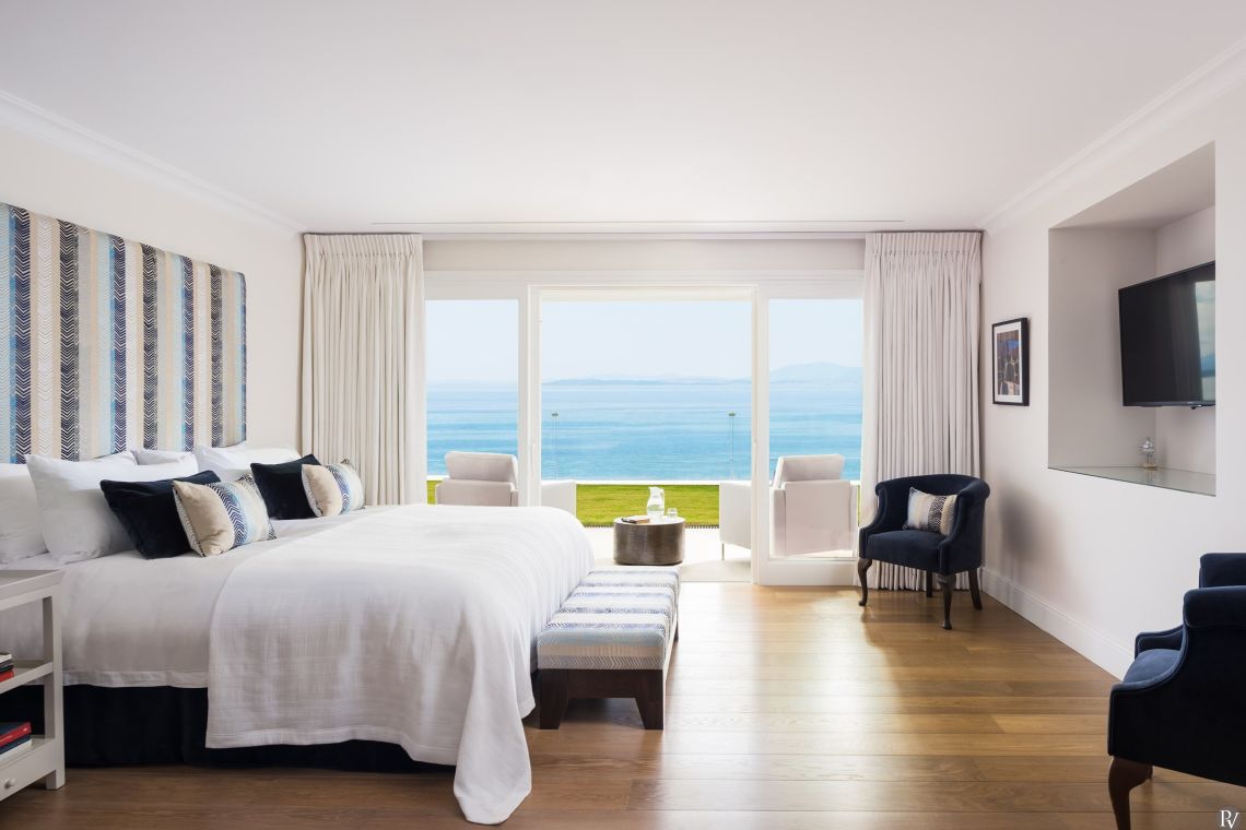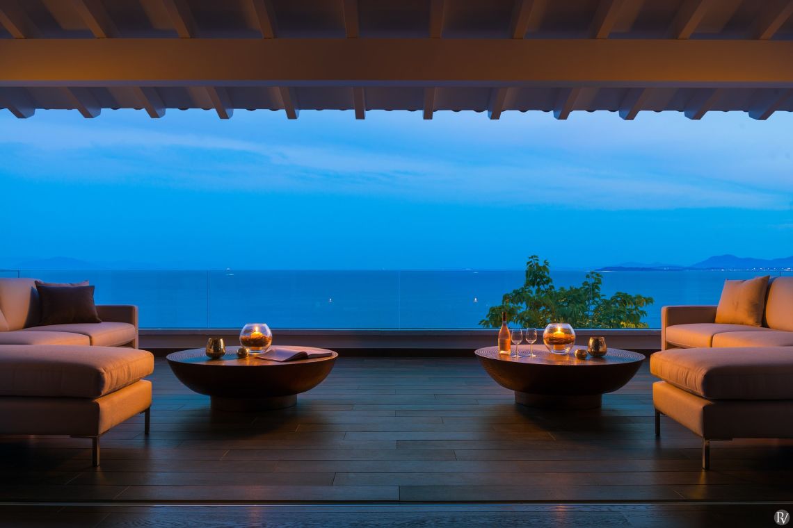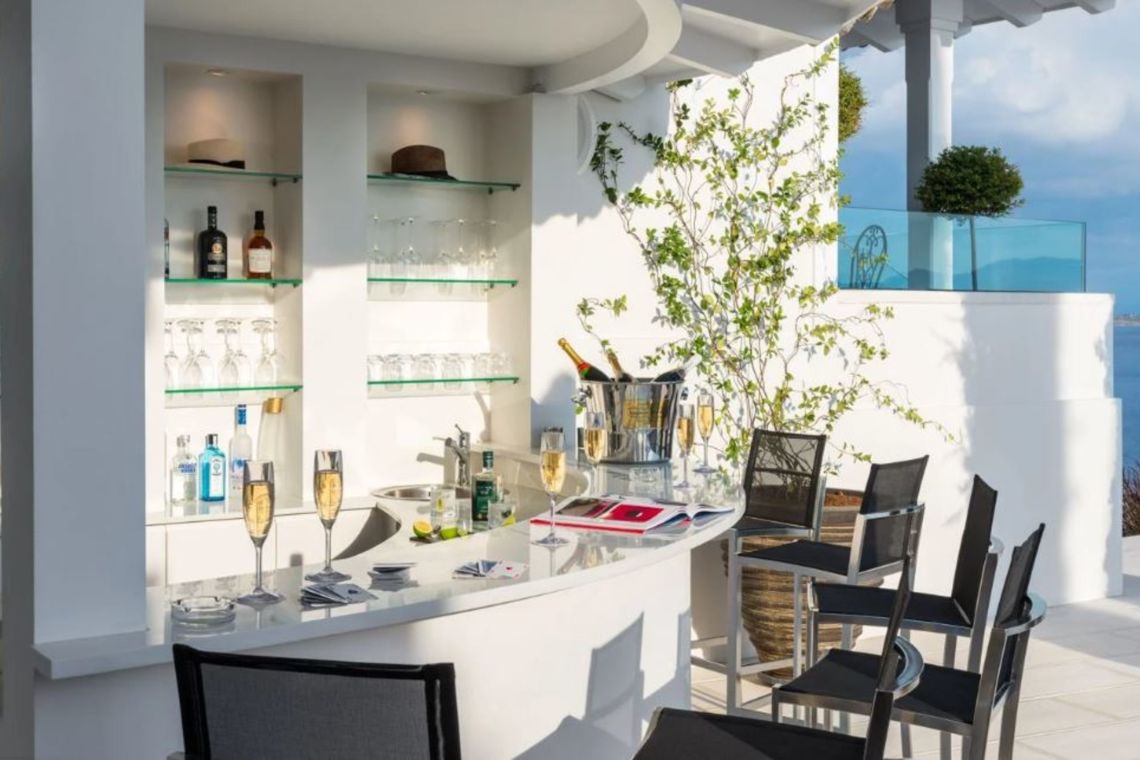 The villa is laid out over two levels, offering an abundance of space for up to 12 guests in 6 luxurious en suite bedrooms, each with its own private terrace or balcony and stunning views. Every room is thoughtfully designed, offering the perfect balance of tranquility and indulgence.