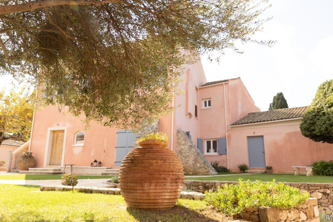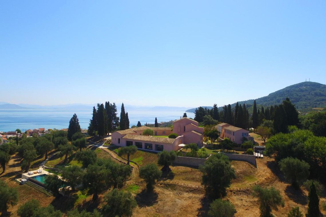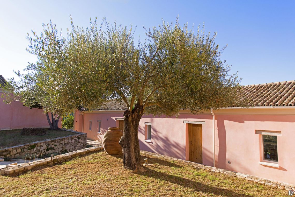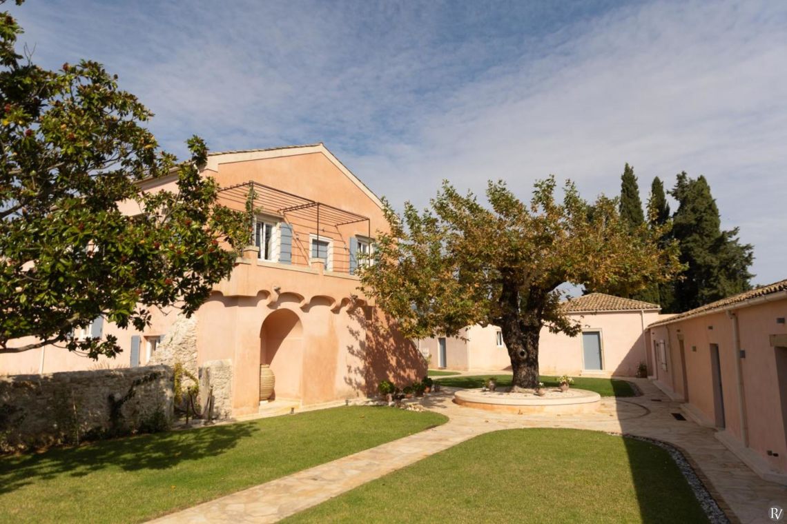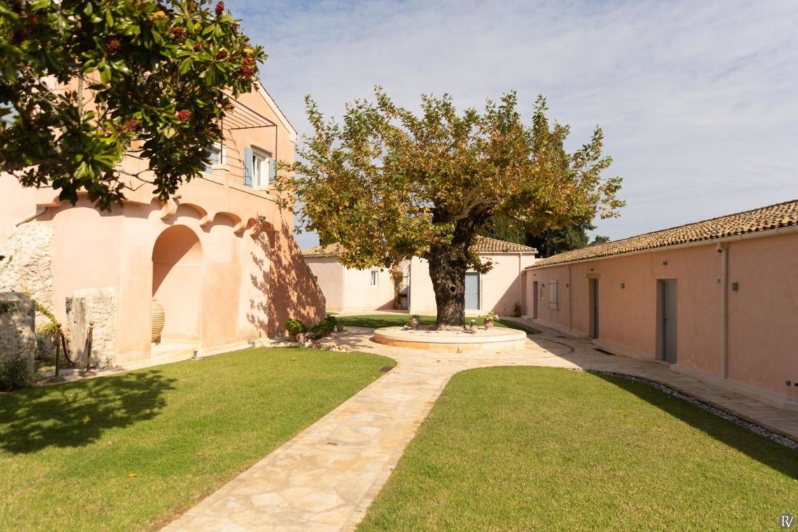 Set amidst 10 acres of private olive groves and perched above the stunning Ionian Sea, this meticulously restored 9-bedroom estate offers a harmonious blend of historic charm and contemporary luxury. The villa's prime location, just a short stroll from the picturesque town of Messonghi, provides a unique combination of seclusion and convenience. Guests can easily explore the town’s charming shops, tavernas, and beaches, while enjoying panoramic views of the Ionian Sea and lush countryside. With its expansive layout, luxurious amenities, and proximity to local attractions, this villa is the perfect retreat for large groups or multi-generational families seeking privacy, comfort, and a taste of authentic Greek life.