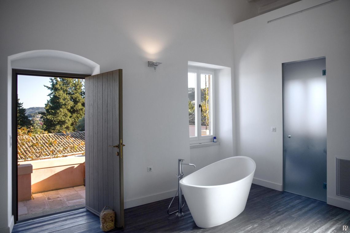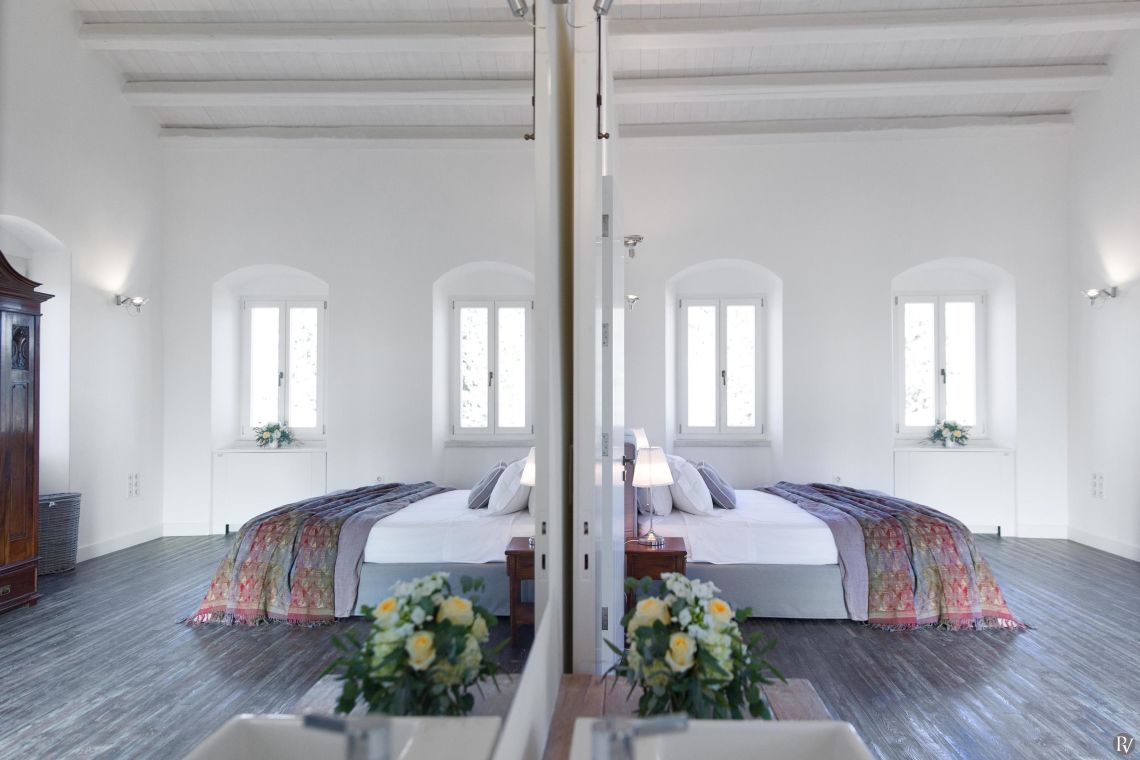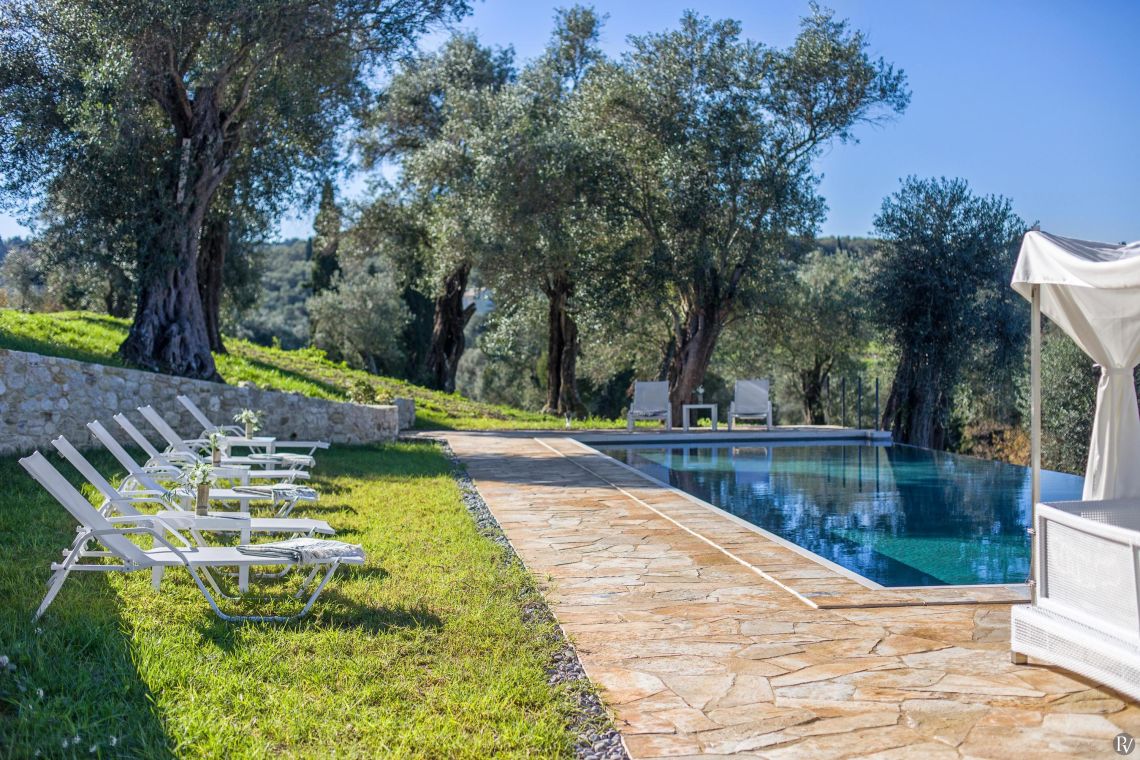 All rooms are equipped with air conditioning, WiFi, and luxury linens, providing guests with a serene and comfortable retreat. Each bedroom offers a unique atmosphere, whether overlooking the lush olive groves or offering expansive views of the Ionian Sea.