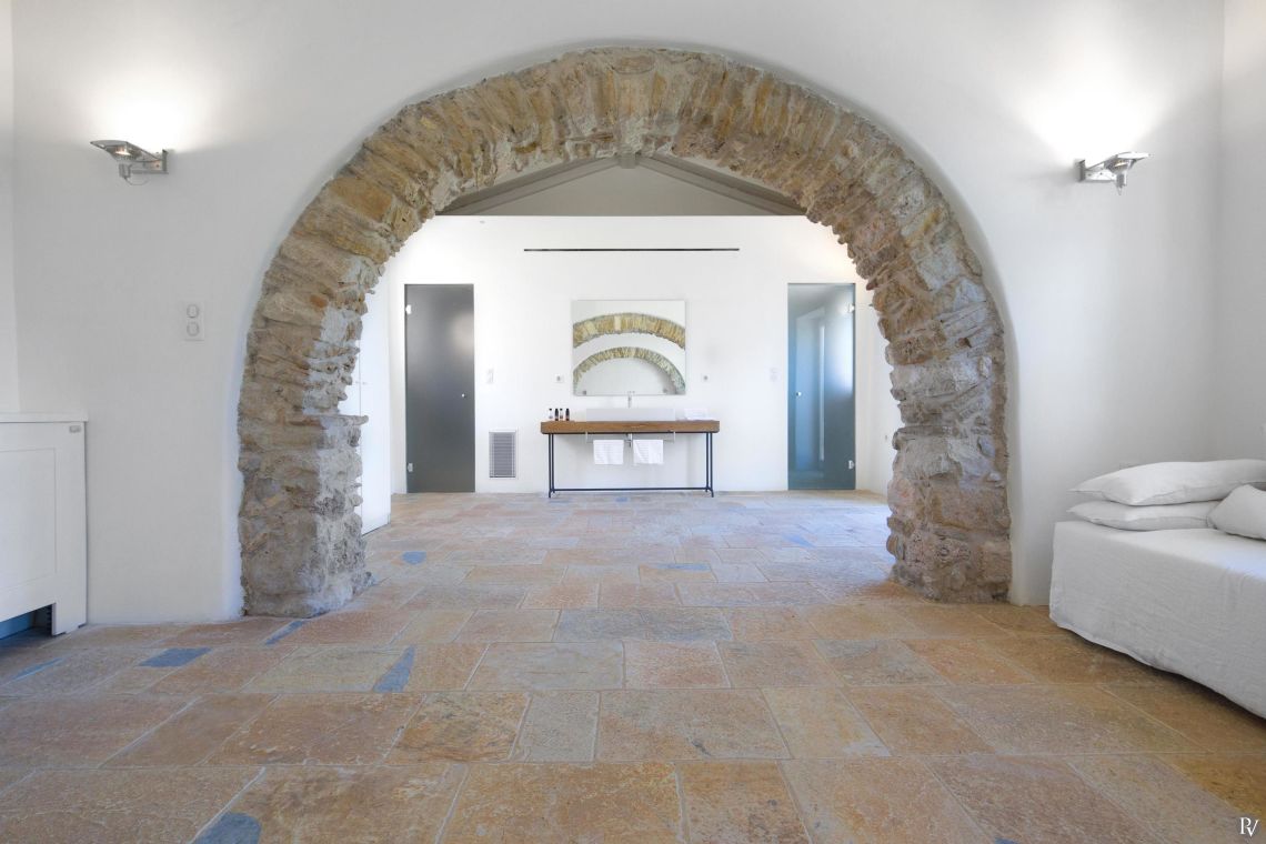 The estate features 9 beautifully designed double bedroom suites, each offering minimalist chic décor that seamlessly blends with the property's traditional character. Every room is designed with comfort and luxury in mind, ensuring an exceptional stay. Whether for intimate family gatherings or hosting friends, the spacious interiors cater to all needs.