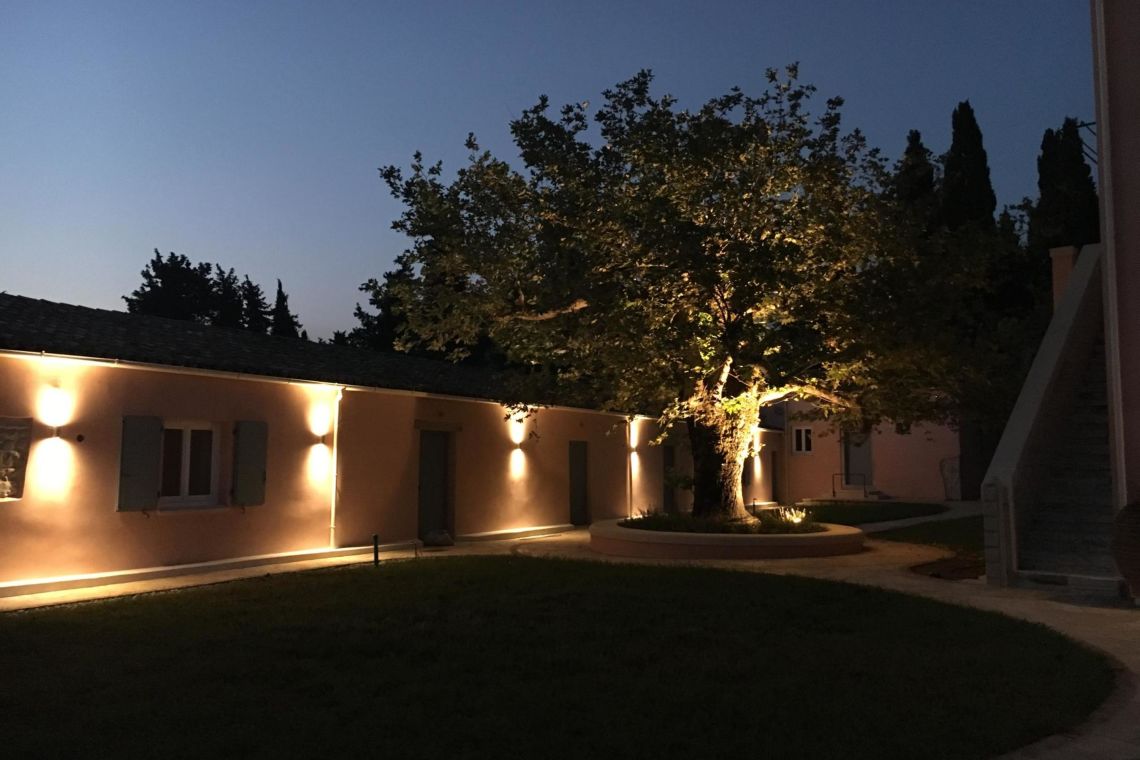 A special highlight is the treehouse, offering a unique spot to unwind while soaking in panoramic vistas of the Ionian Sea. The extensive outdoor dining areas allow guests to dine al fresco under the stars, with the gentle Mediterranean breeze and the sound of nature creating the perfect ambiance.