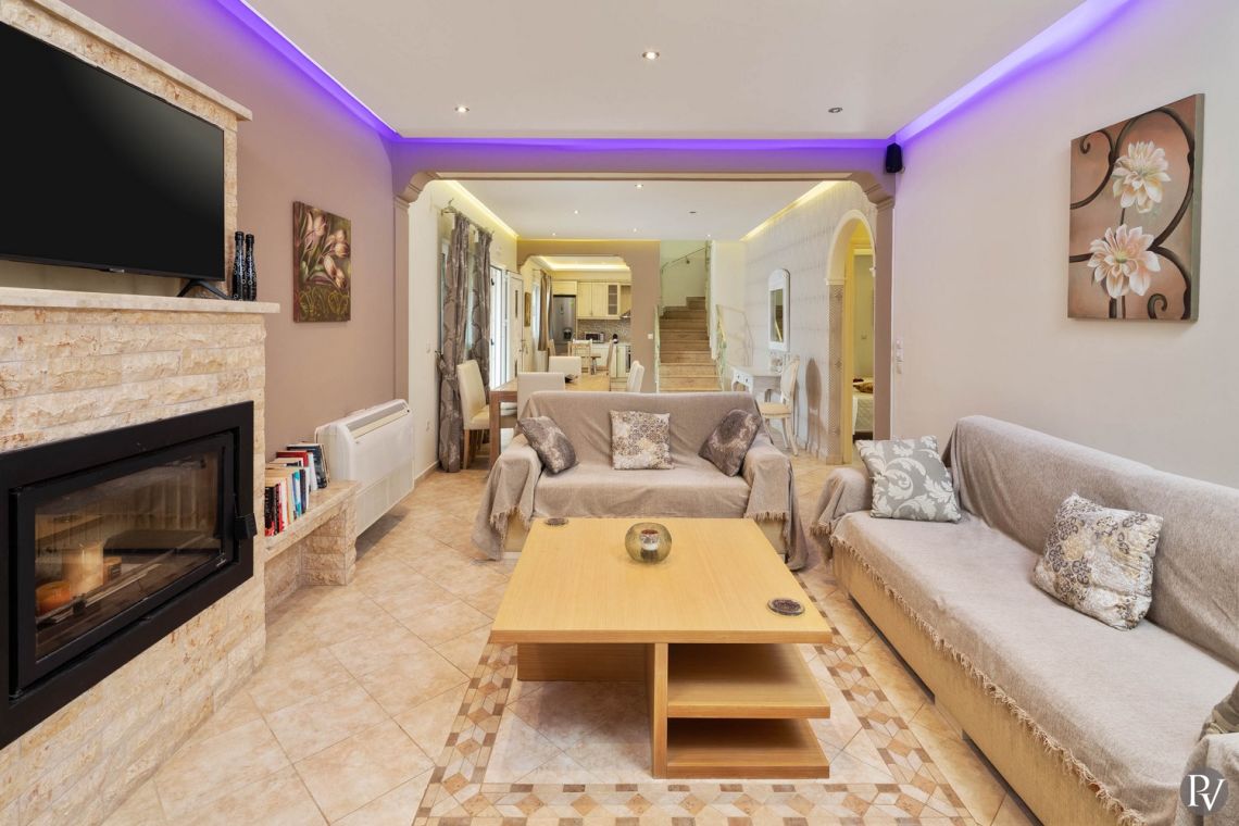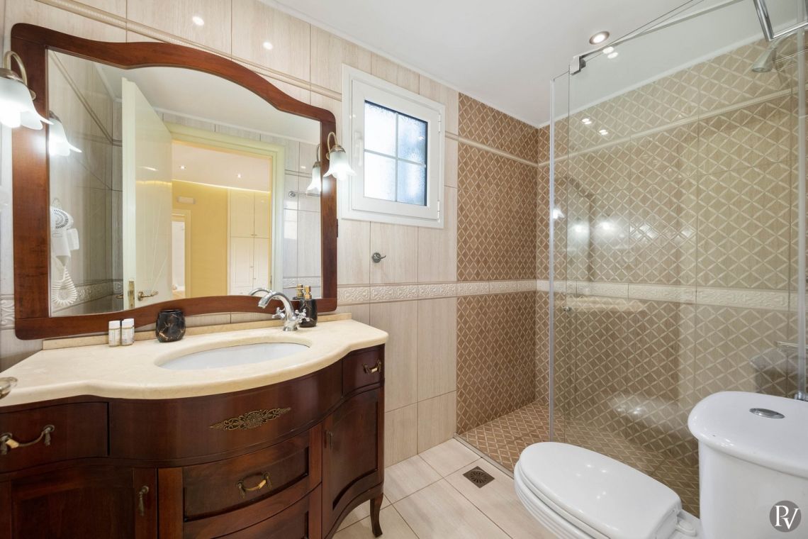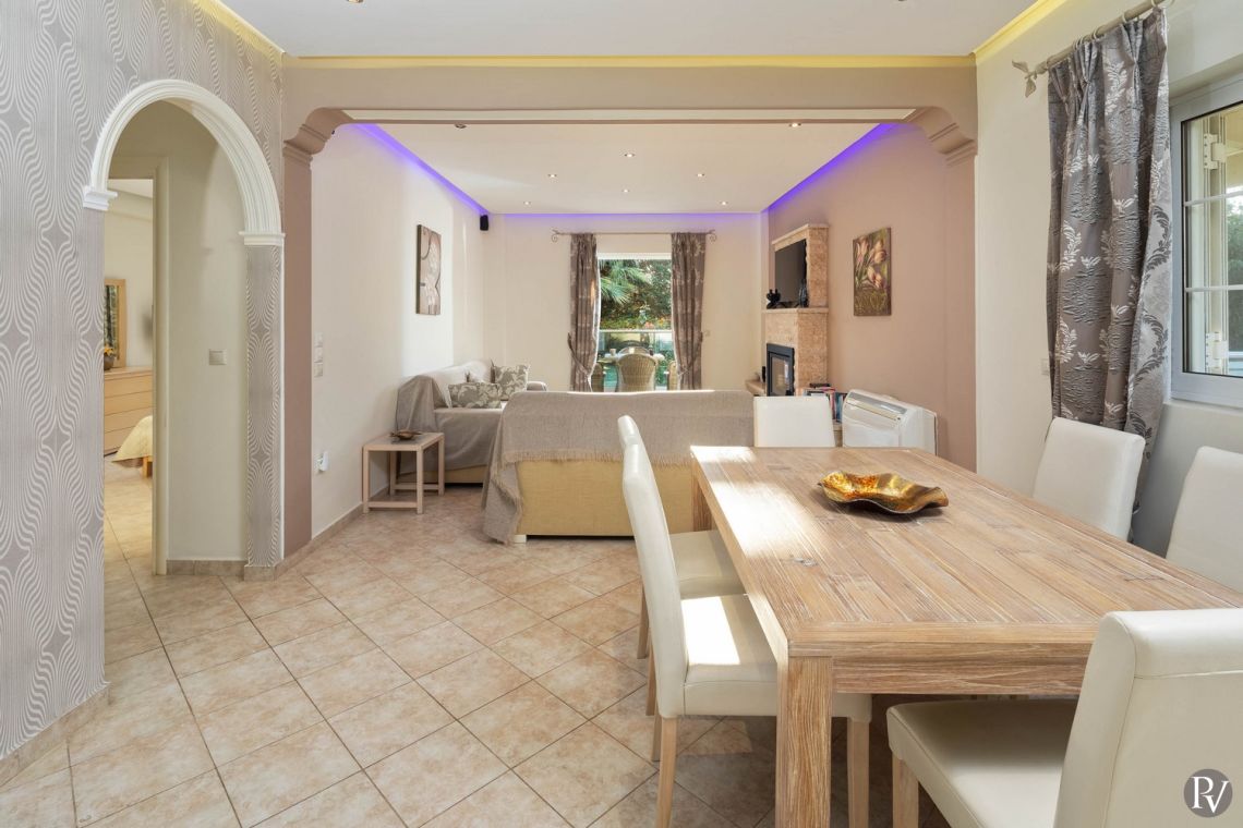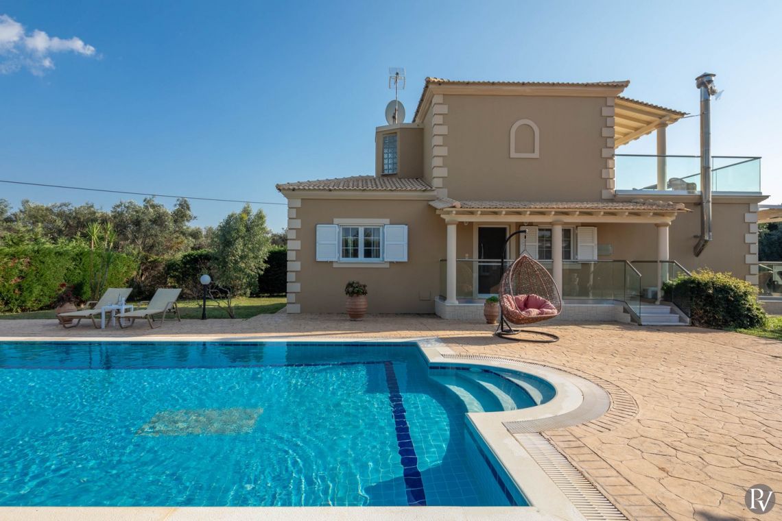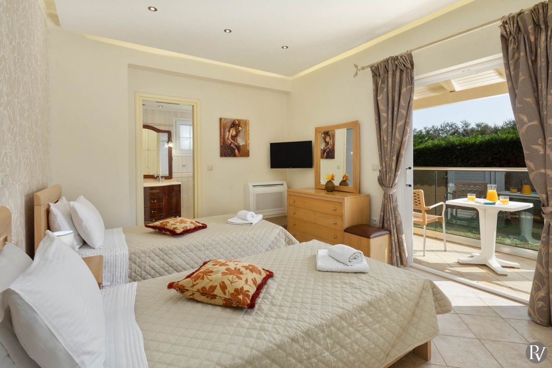Villa Mythos is a spacious, classical-style villa set within a secluded lawned garden just a few metres back from the shoreline. With three en-suite bedrooms, generous indoor and outdoor living areas, and sea-facing balconies, the villa is ideally suited to families or couples travelling together. Its peaceful setting, private pool, and proximity to the sandy beach of Prasoudi make it an excellent choice for a relaxing coastal escape.