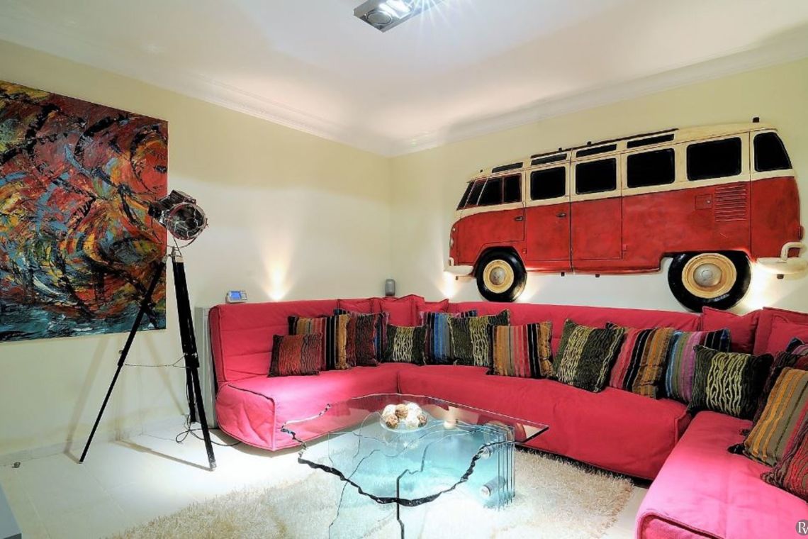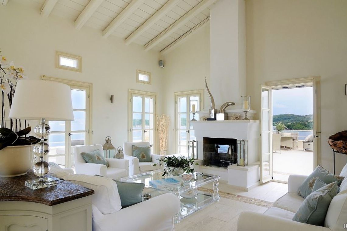 Shaded pergolas house comfortable lounge areas and al fresco dining spaces, complemented by a fully equipped outdoor kitchen and BBQ. Entertainment options include table tennis, a billiards table, table soccer, and a darts board. The lush gardens lead directly to a secluded pebble beach with a private dock, shared only with the neighboring Villa Klasiki, offering convenient sea access and unparalleled privacy.