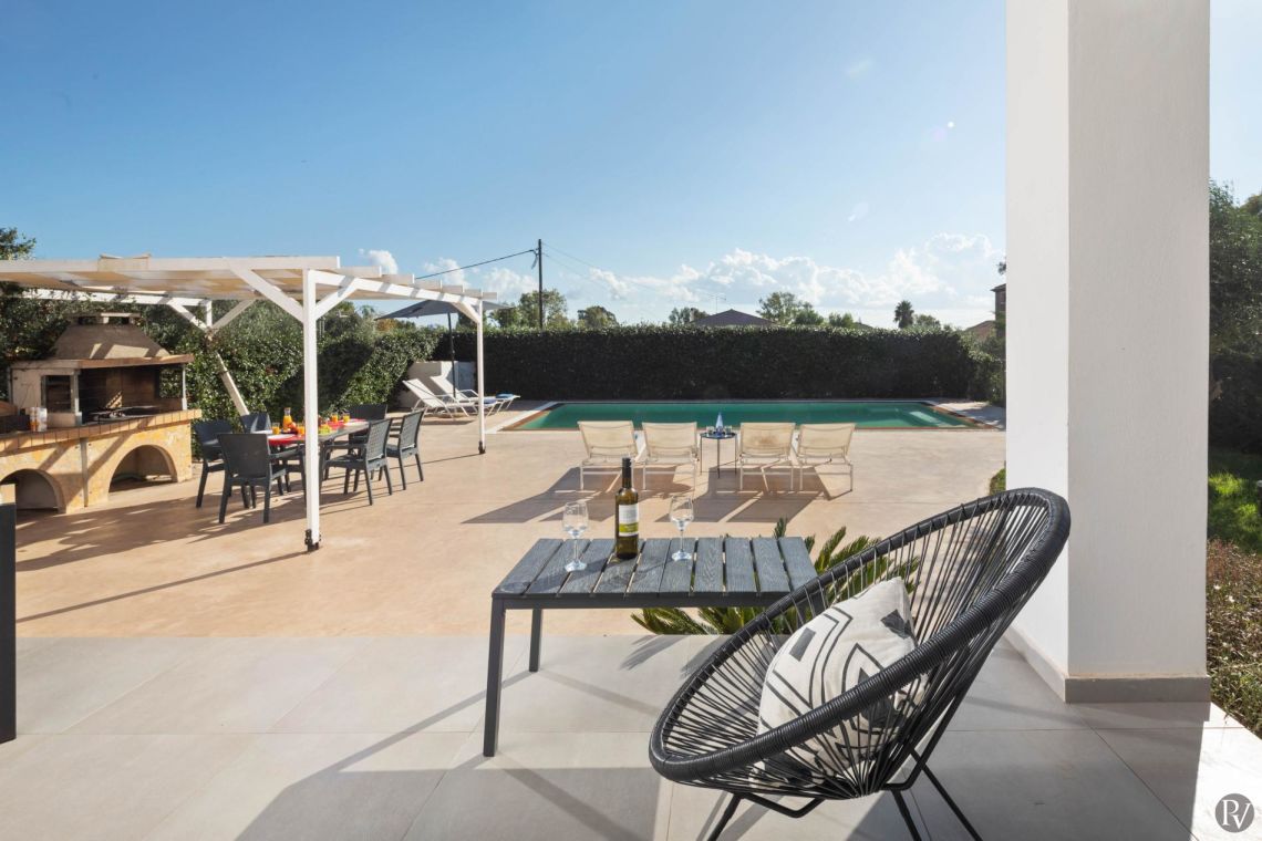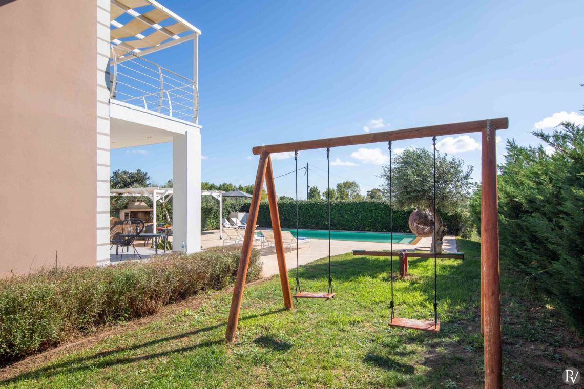 The outdoor spaces of Casa di Gigi are designed to make the most of the island’s relaxed lifestyle. A private swimming pool measuring 9 x 4 meters, with a depth of 1.5 meters, offers the perfect spot to cool off and soak up the Ionian sunshine, complemented by sun loungers and umbrellas. Guests can enjoy outdoor cooking in the fully equipped barbecue area, while the shaded dining space comfortably seats six for leisurely meals and evening get-togethers. Younger visitors will love the front garden, where a playground with swings provides a safe and fun environment.