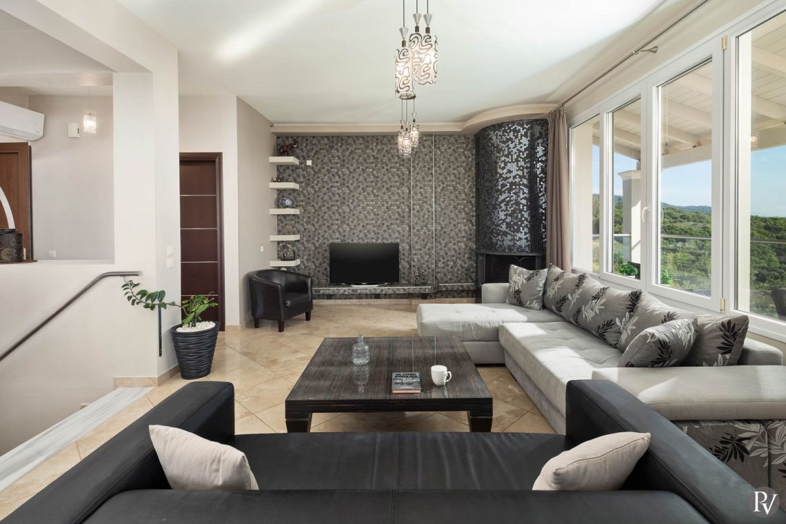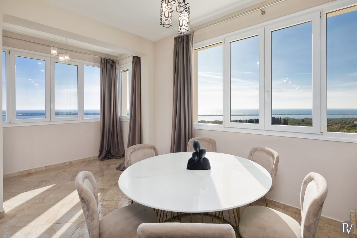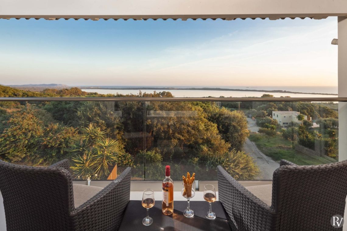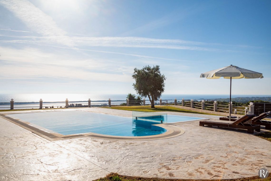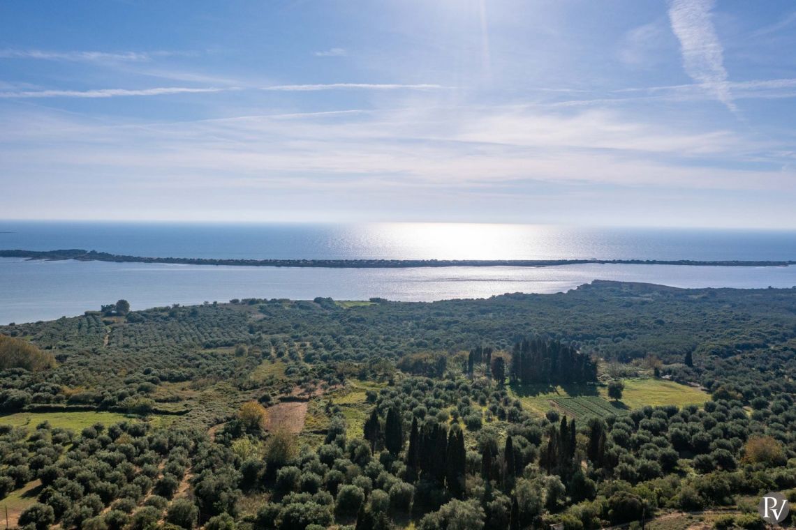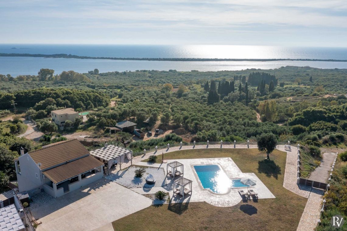 Set high above the peaceful waters of Lake Korission, Villa Lumina is a refined coastal haven offering uninterrupted panoramic views across the shimmering Mediterranean Sea and the calm lake below. Its privileged position guarantees privacy while surrounding guests with unspoiled natural beauty. Just a short distance away, the golden sands of Halikounas Beach invite you to enjoy the sun and crystal-clear waters.