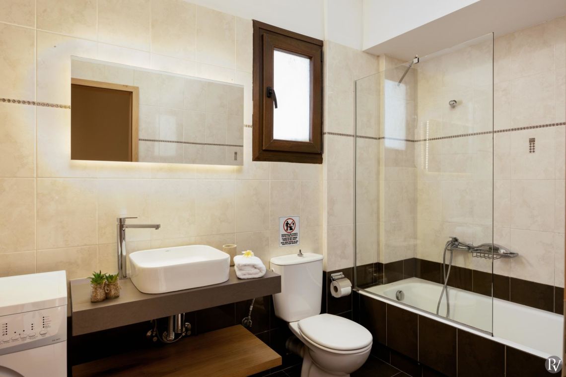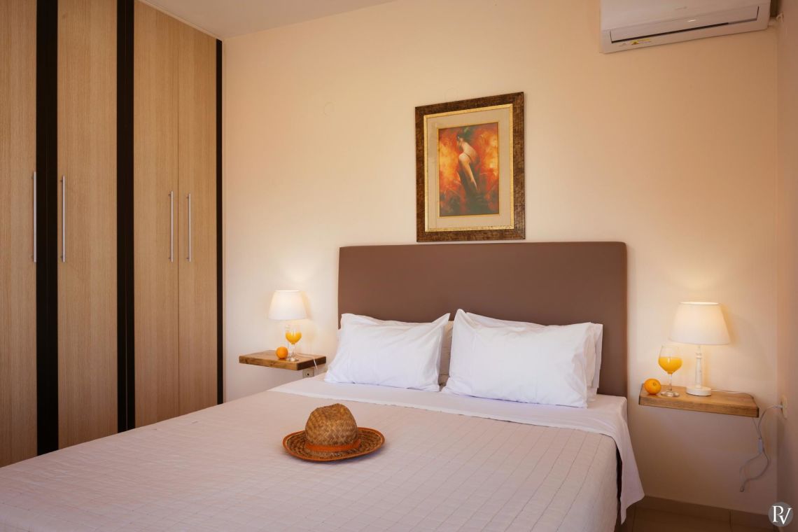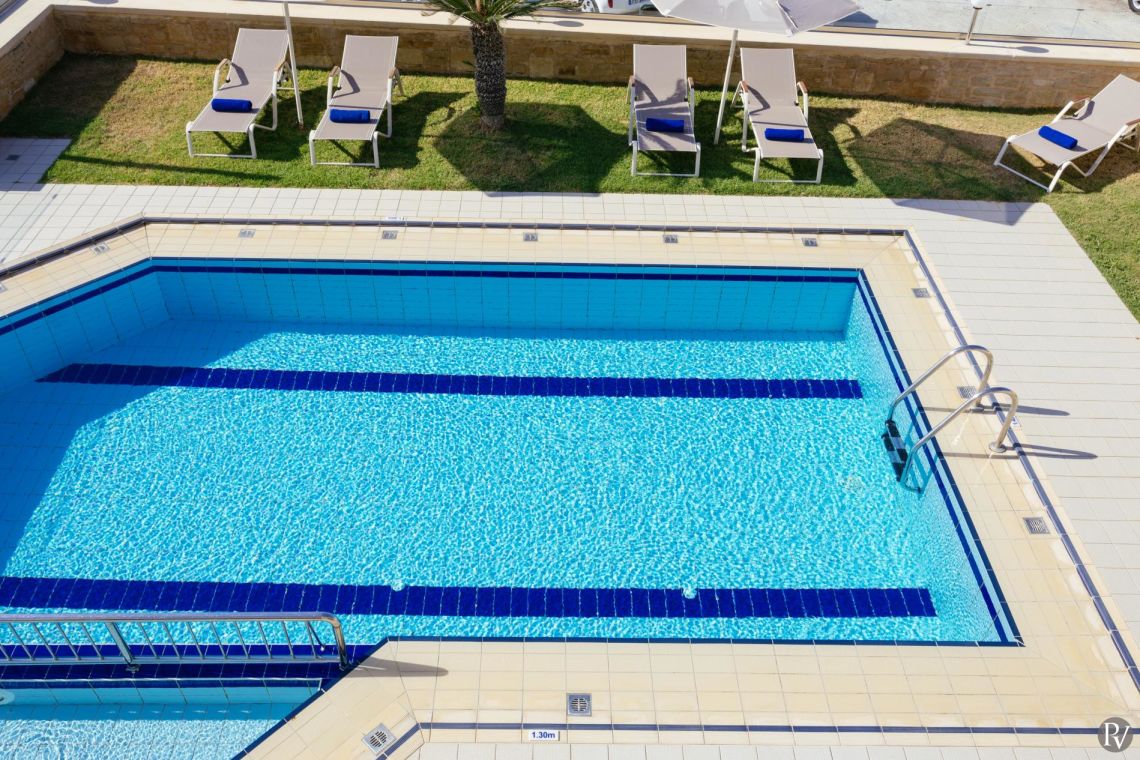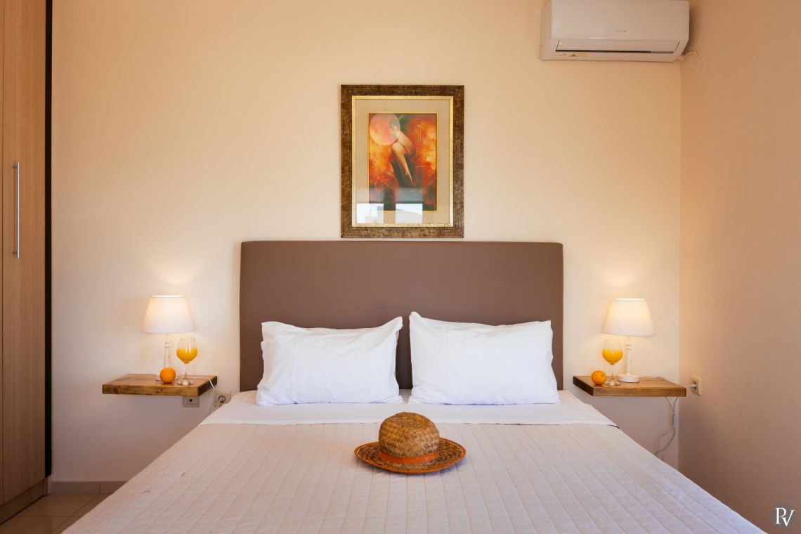 The private swimming pool measures 8m x 4m, with a separate shallow children’s section and a depth of 1.4m (open from 01/04 to 30/10). Sunbeds, outdoor sofas, and a dedicated dining area create the perfect setting for relaxation and al fresco meals, while the barbecue area is ideal for long summer evenings under the Cretan sun.
