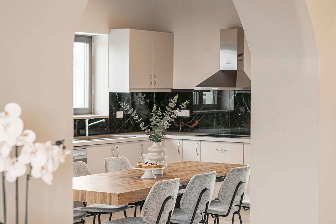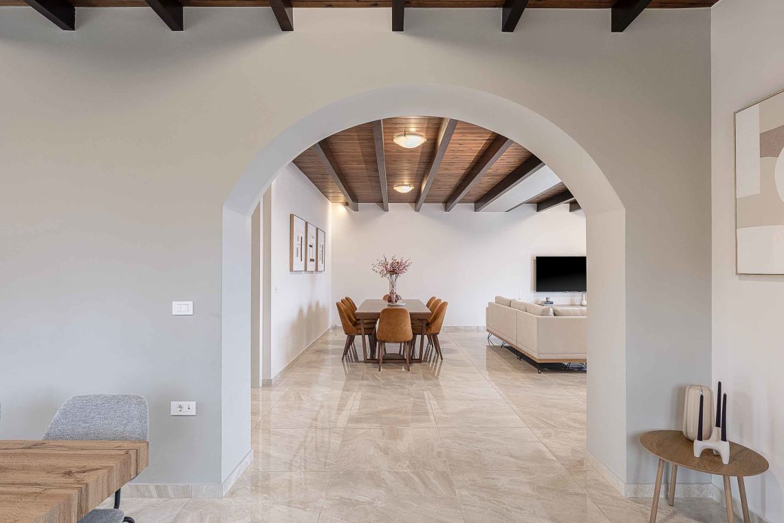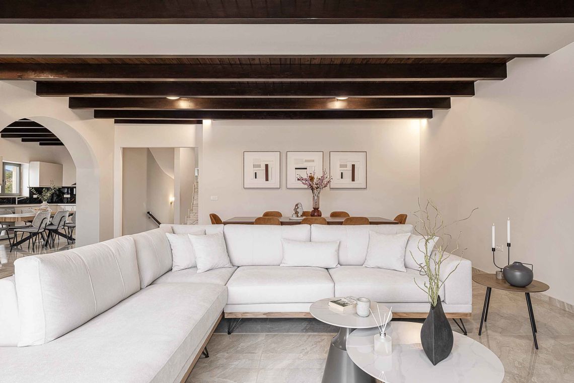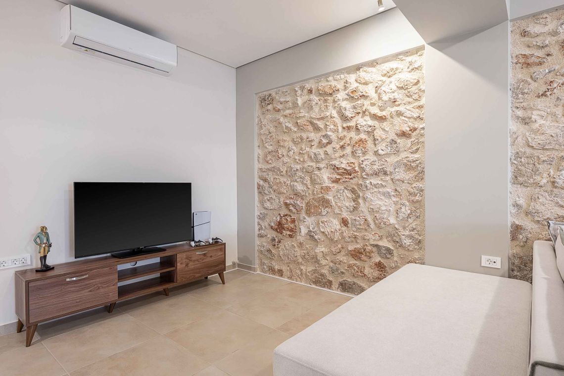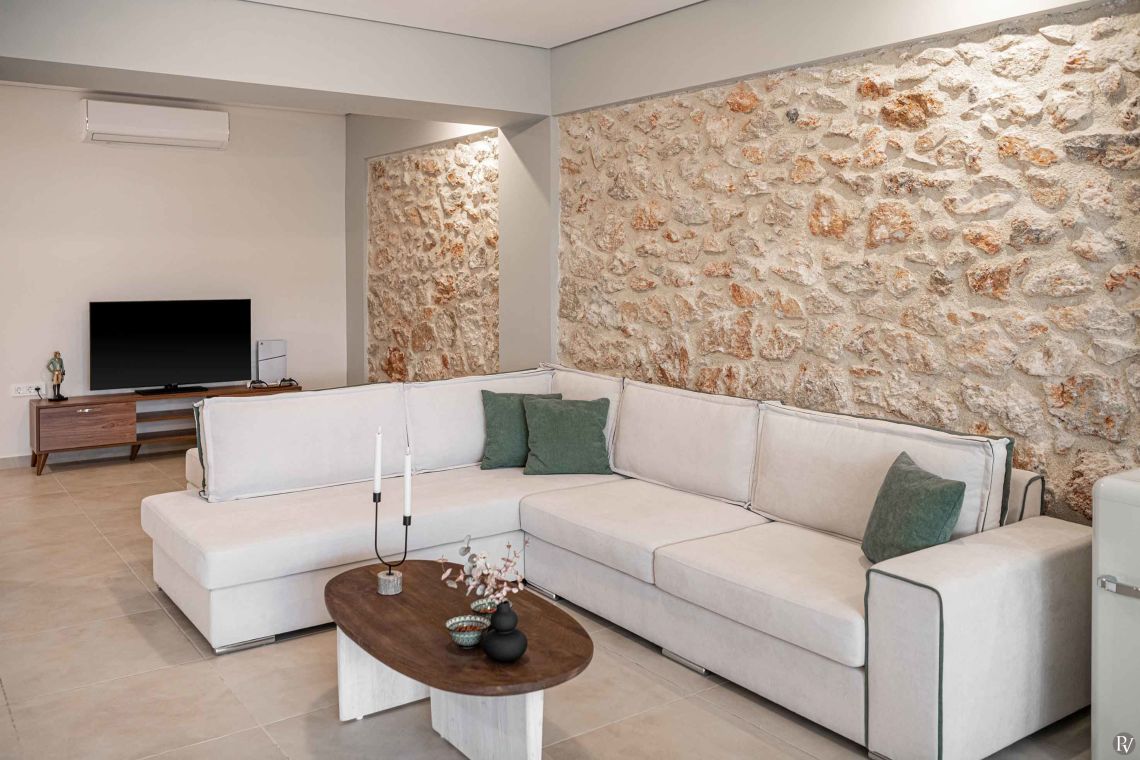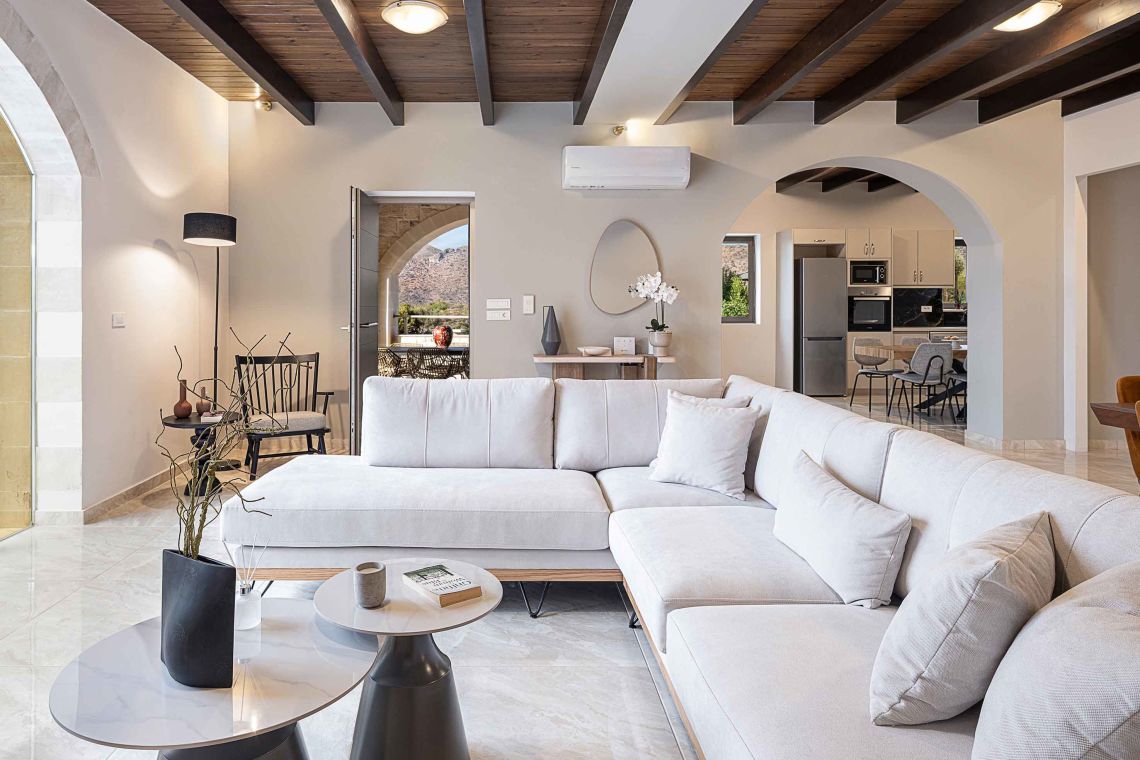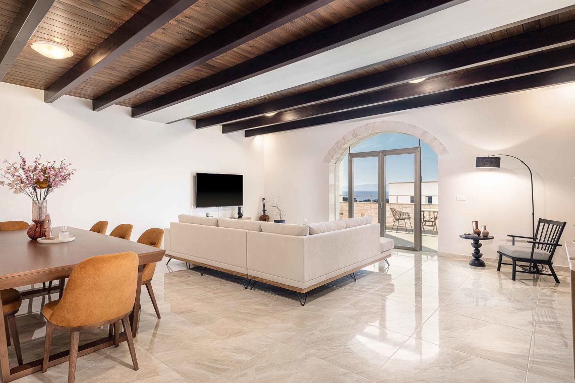 Villa Leda, also known as Luminus Arcus Villa, is a stunning three-level property in the serene area of Chorafakia, Akrotiri, Chania. This luxurious 5-bedroom, 3-bathroom villa comfortably accommodates up to 10 guests and offers a tranquil retreat just minutes away from the beautiful beaches of Stavros, Tersanas, and Kalathas. With a total indoor space of 234 sqm, the villa boasts a harmonious blend of rustic charm and modern elegance, featuring light-toned stone walls, beautifully crafted wooden ceilings, and large anodized aluminum windows that fill the space with natural light.