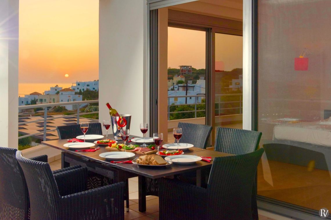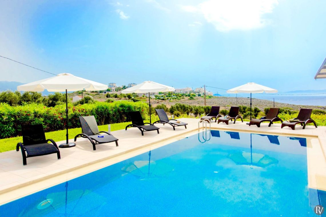Designed to impress even the most discerning guests, Villa Sandrine combines elegance, comfort and spectacular scenery — ideal for relaxing by the pool, enjoying a glass of local wine at sunset, or soaking up the warm Cretan sunshine.