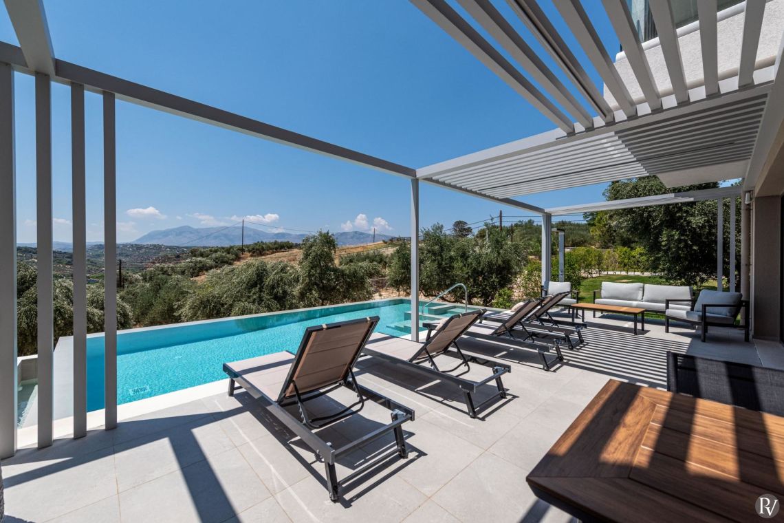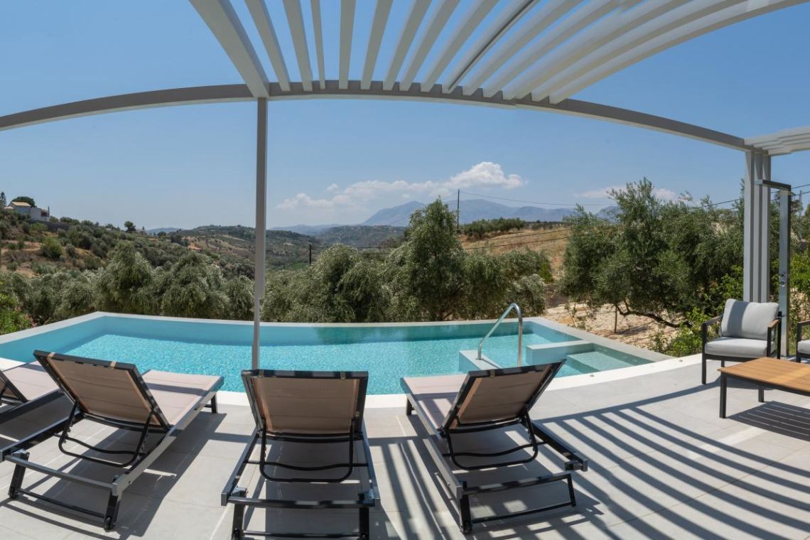 Surrounded by olive trees and vineyards, the outdoor spaces of Villa Vasiliki invite complete relaxation. A private swimming pool is the focal point of the terrace, complemented by sunbeds for soaking up the Mediterranean sun. A BBQ area is perfect for outdoor dining, while the panoramic terrace provides an idyllic setting for morning coffee or evening drinks as you enjoy the tranquil Cretan scenery.