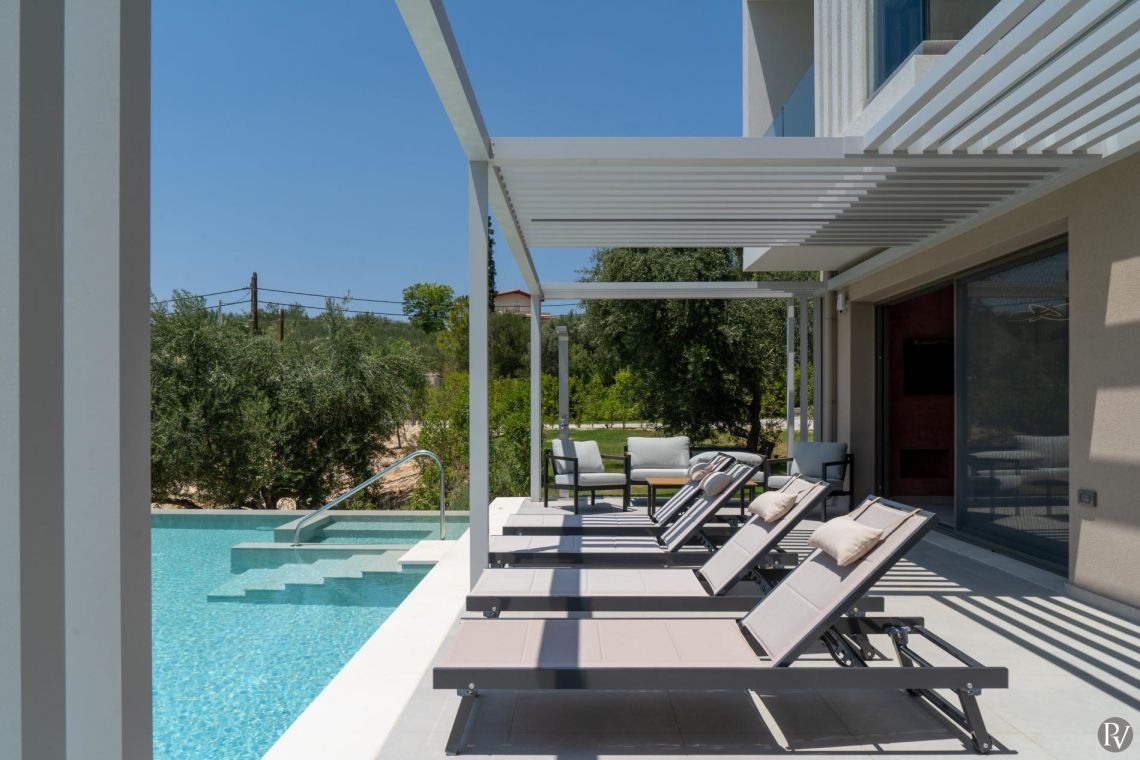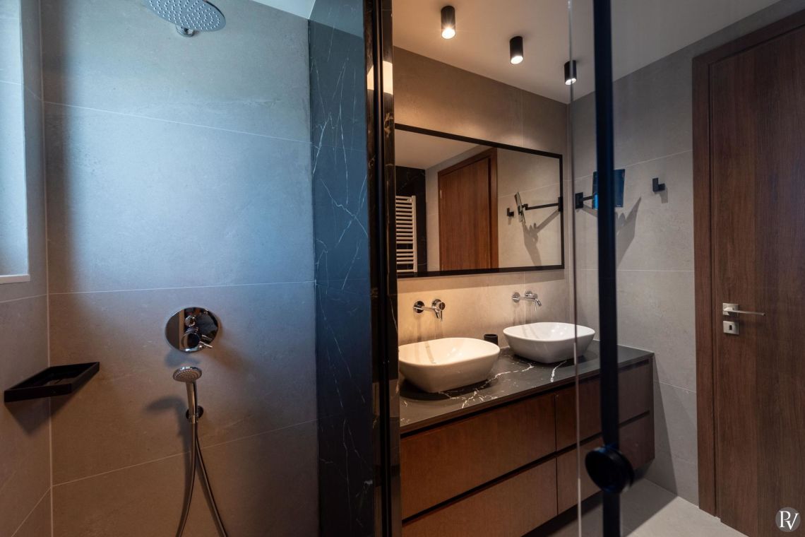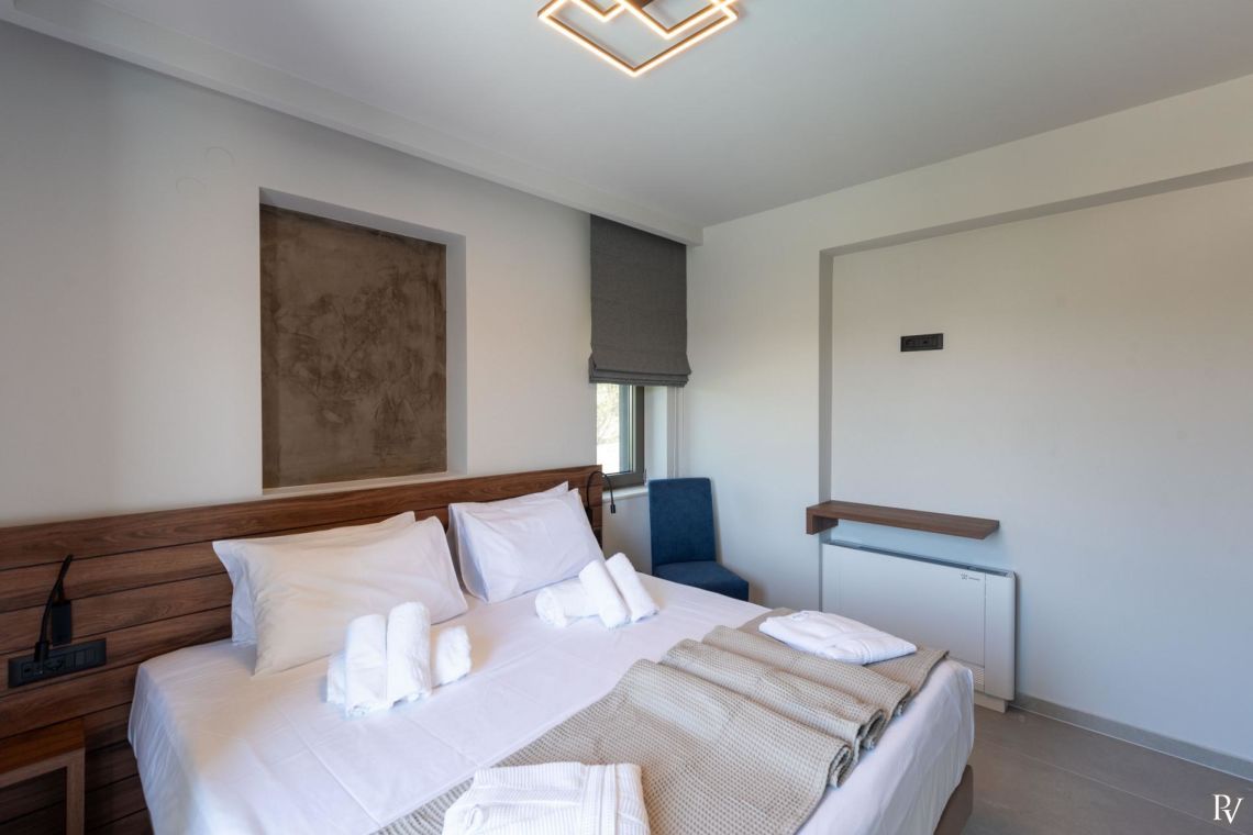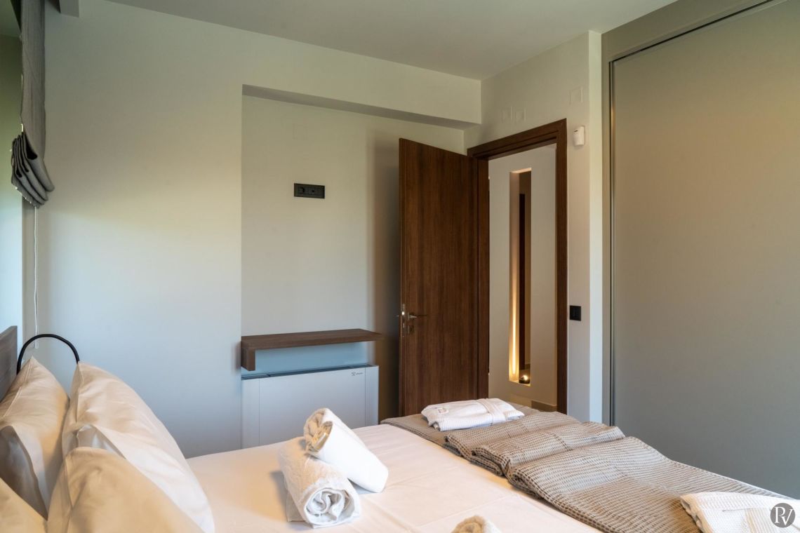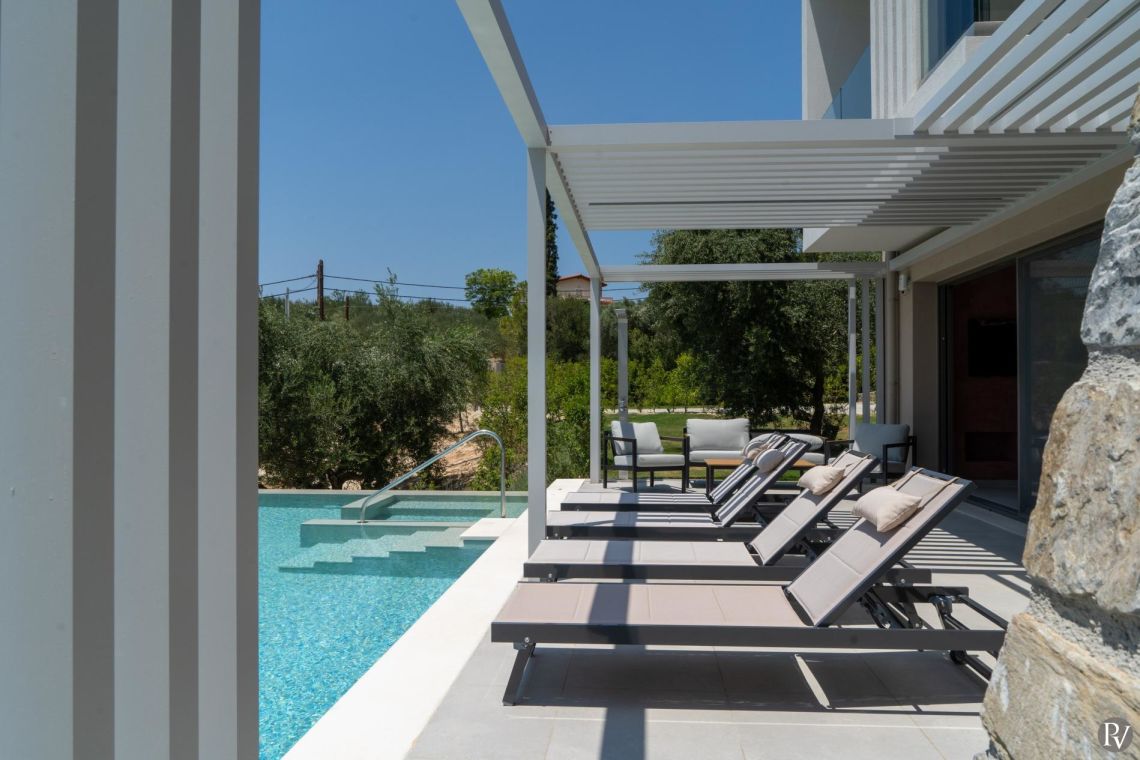 Upstairs, Villa Vasiliki offers two beautifully appointed bedrooms, each featuring twin beds and access to a private balcony with stunning open countryside views. The bedrooms share a modern bathroom, providing a comfortable and restful environment for all guests.