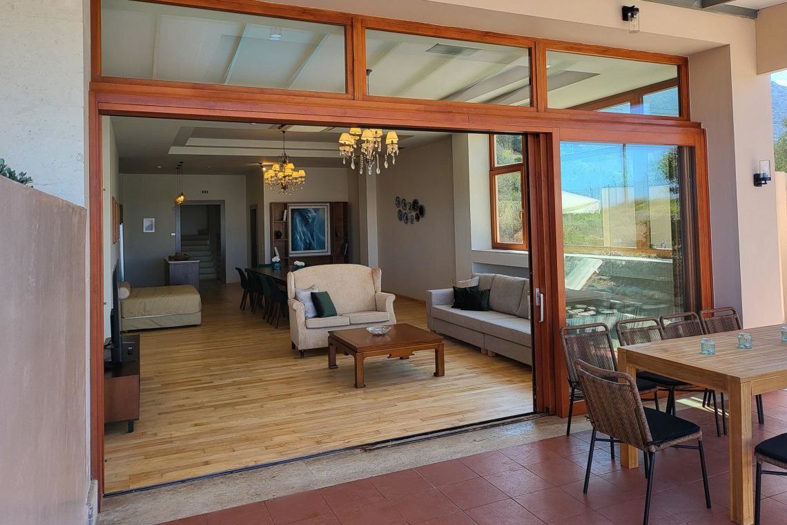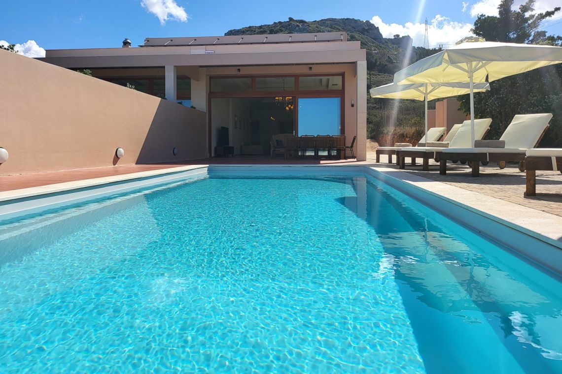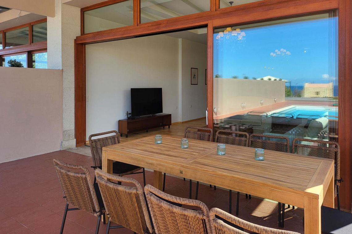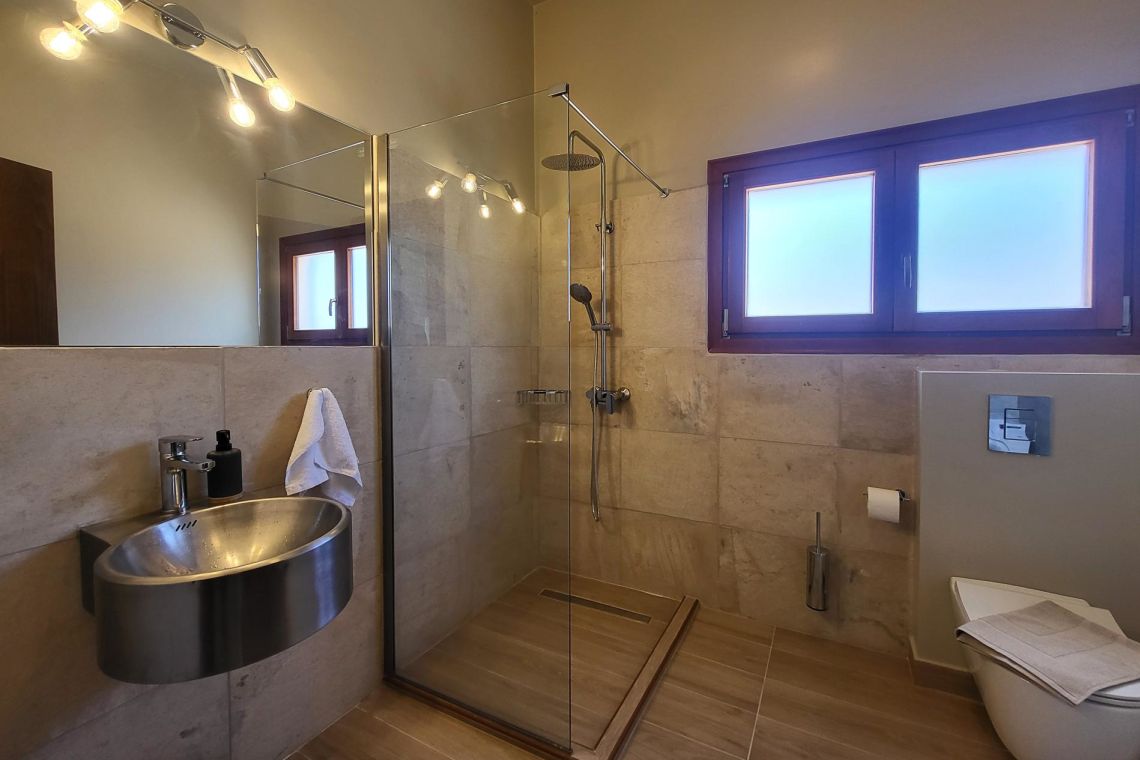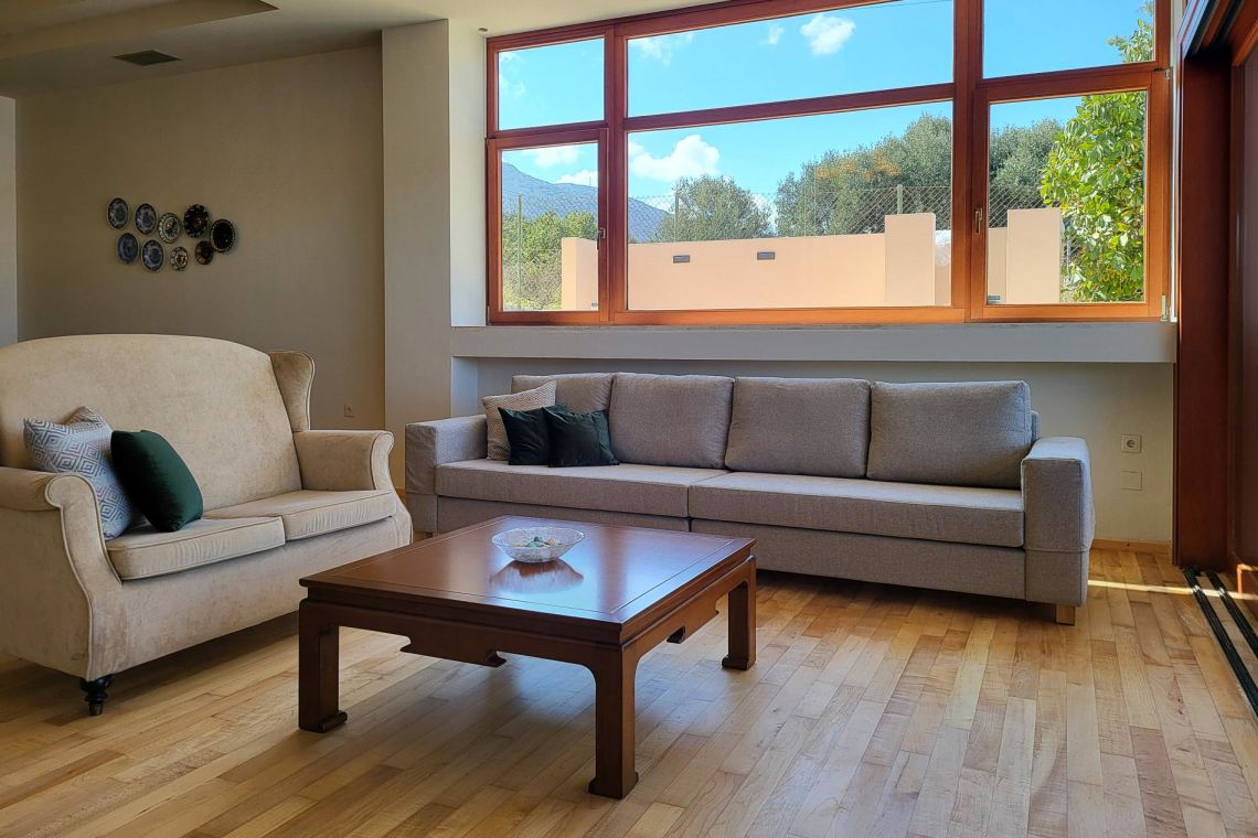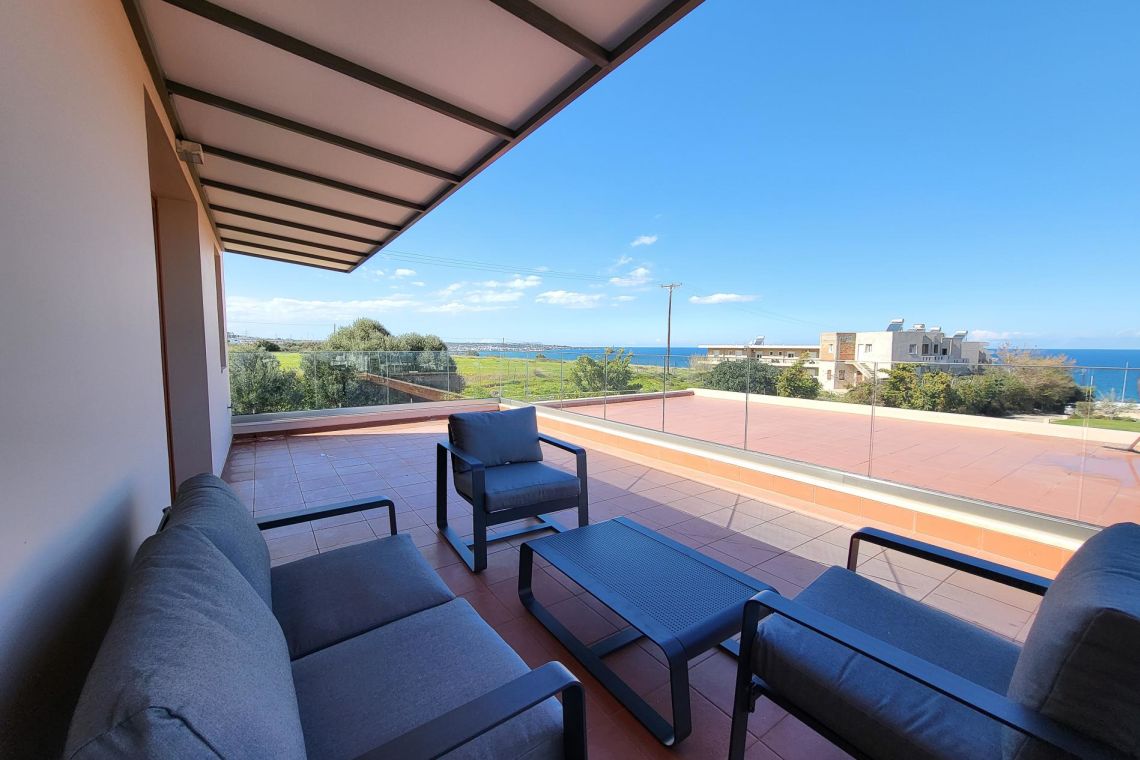 The villa sits on a spacious 1,000 m² private plot, offering plenty of outdoor space for relaxation. The highlight is the private swimming pool, surrounded by sunbeds where guests can unwind and soak up the Cretan sunshine.