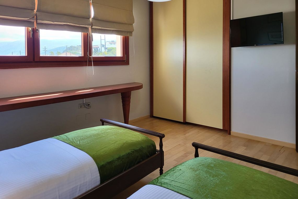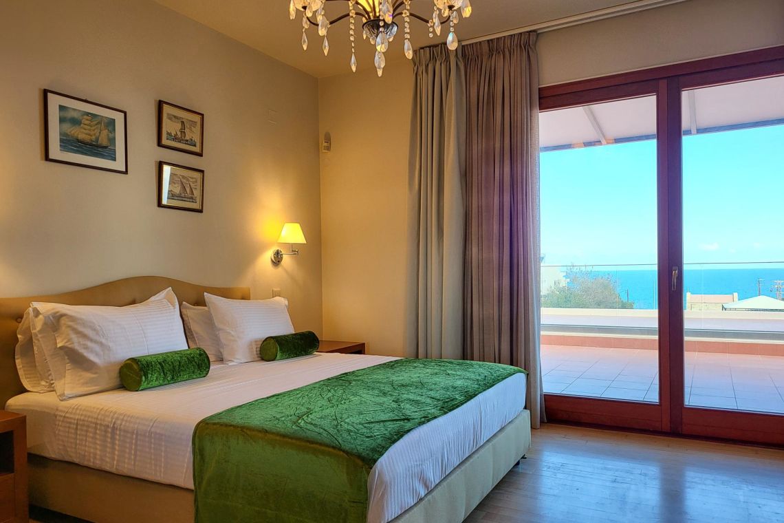 Luxury Villa Mykal features four elegant bedrooms located on the first floor, all offering lovely views and comfortable furnishings.