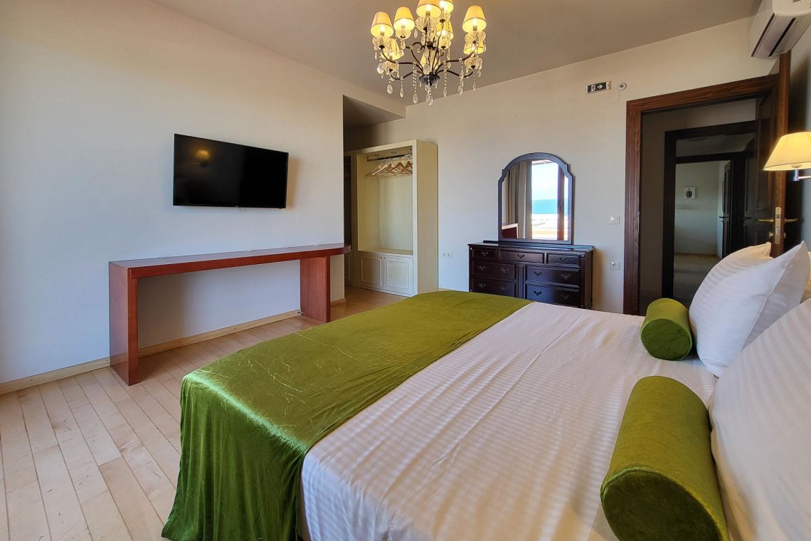 The bedrooms are bright and stylishly designed, with access to private balconies where guests can enjoy beautiful views of the surrounding area.