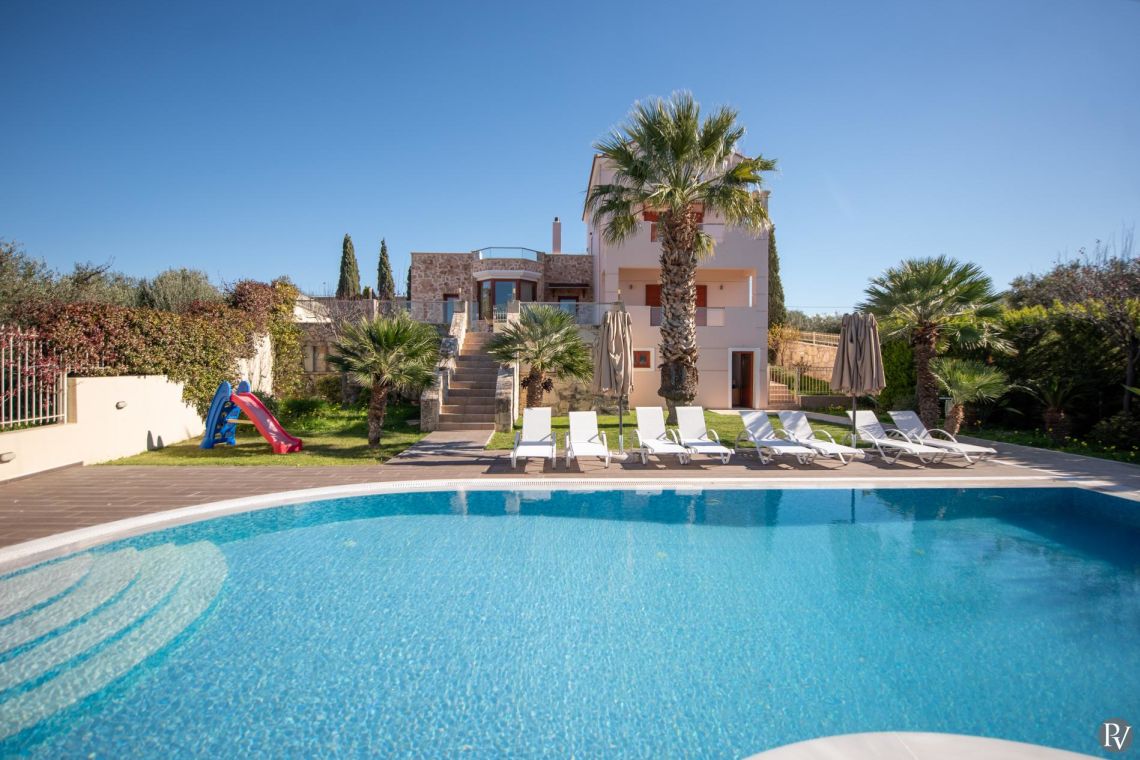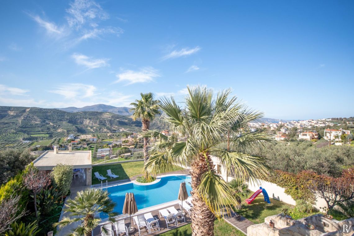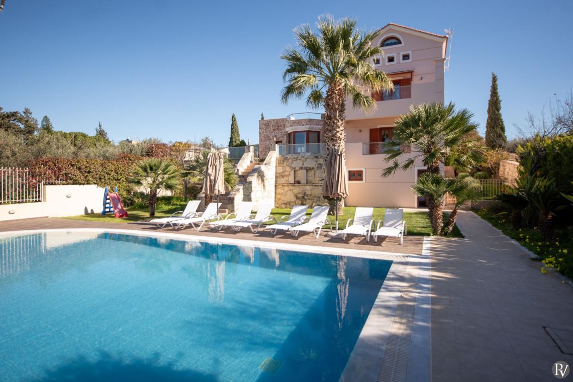 Villa Angelis is a charming 4 floor, 5 bedroom villa set in the peaceful village of Ano Kalesia, just 11 km from Heraklion and 5 km from Ammoudara Beach. Set within a private 1,800 m² plot, it enjoys beautiful sea, mountain and village views, creating the perfect setting for magical sunsets