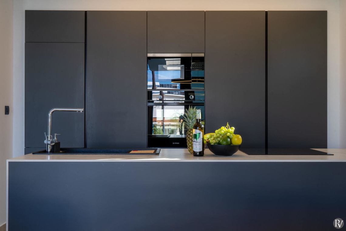 The fully equipped kitchen is both stylish and practical, offering high-end appliances, elegant worktops, and ample storage. Whether preparing a light breakfast or a full family meal, the kitchen provides everything needed for effortless dining during your stay.