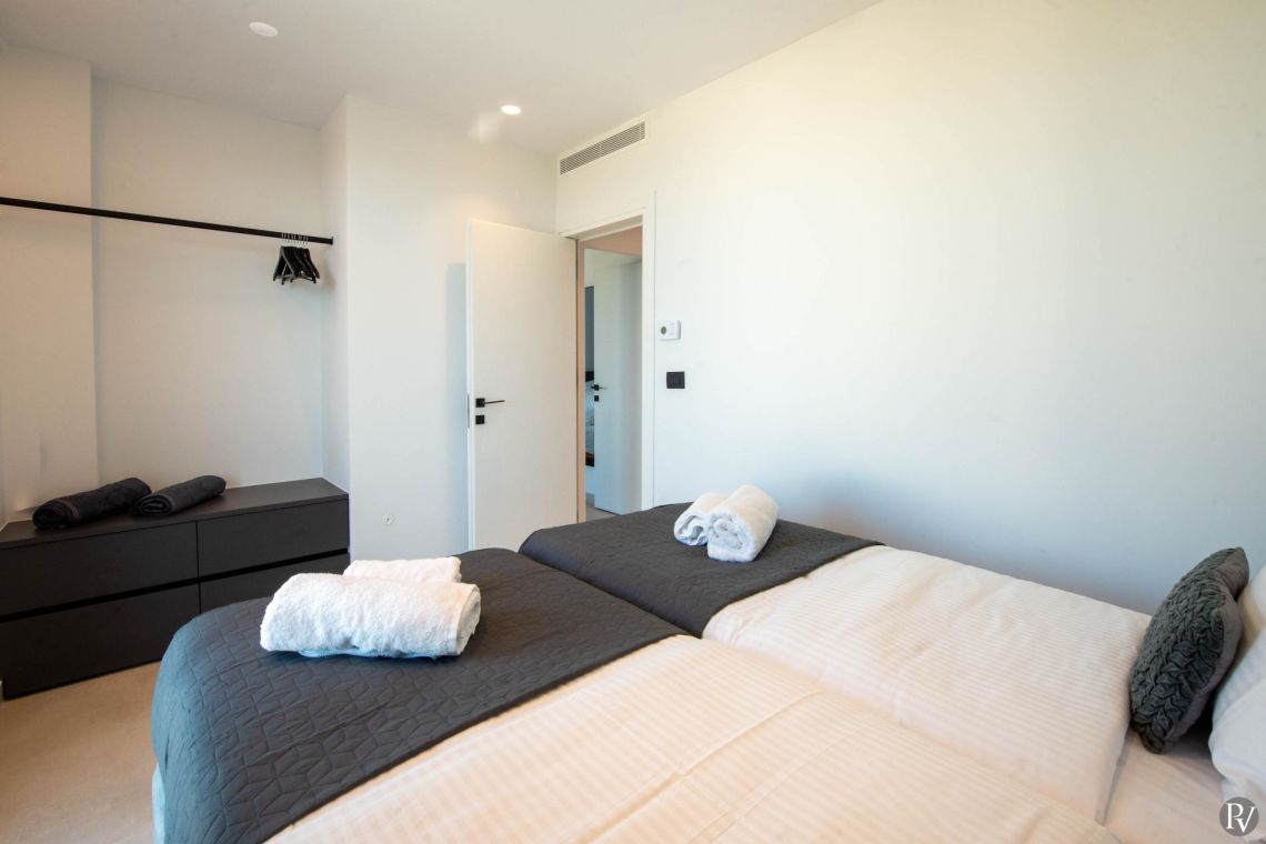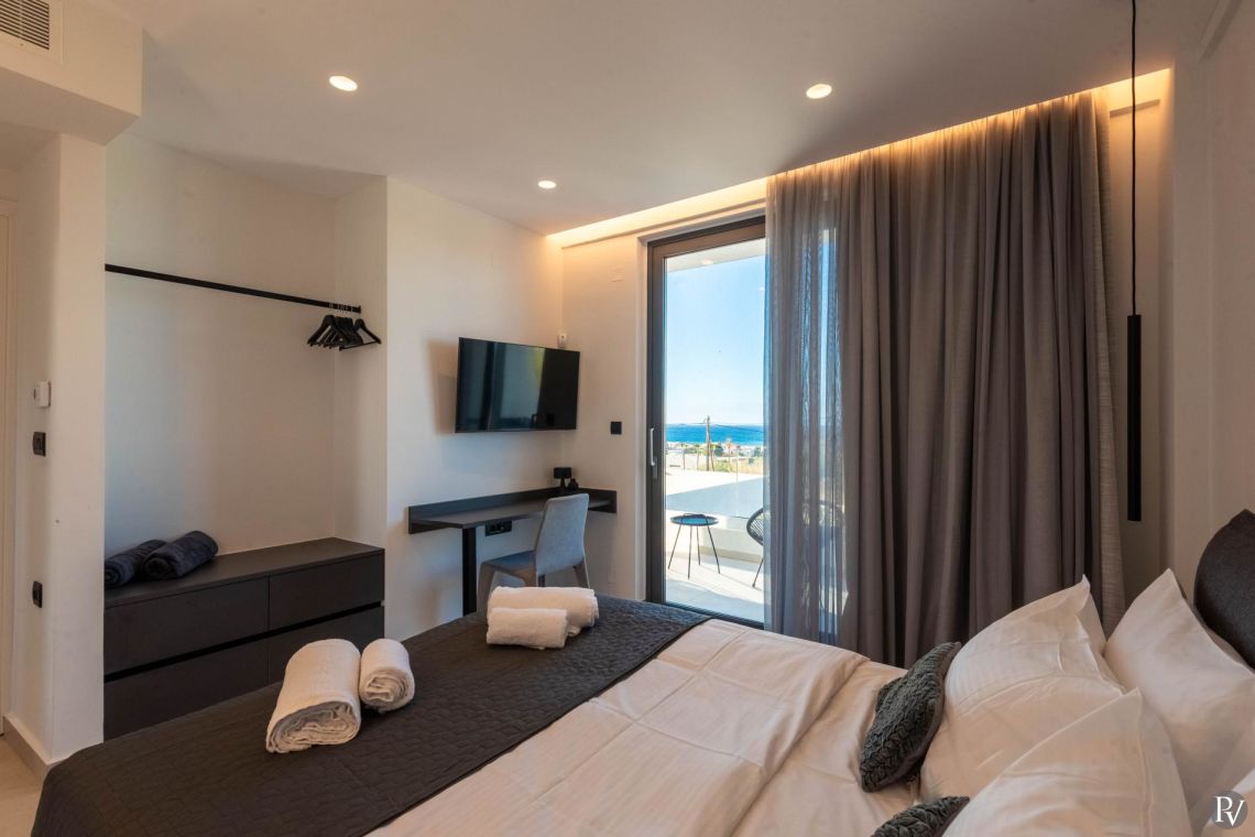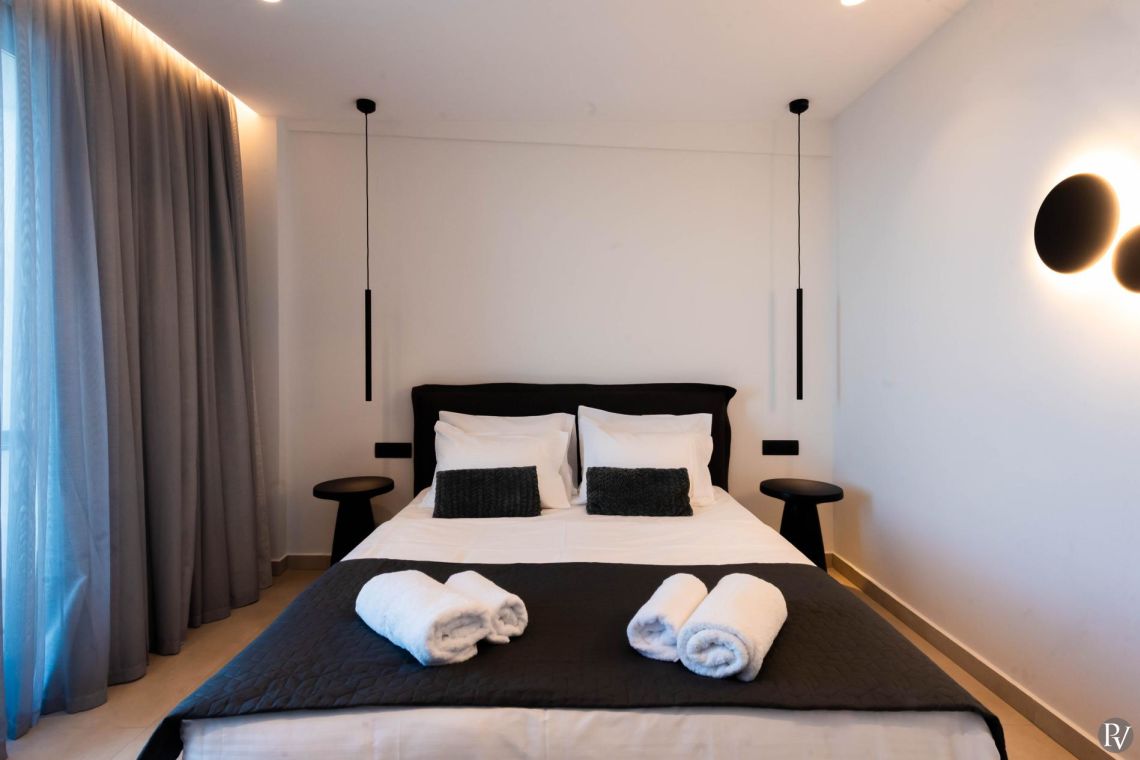The bedrooms at Villa Anissaras are designed with comfort and relaxation in mind. Each room features luxurious bedding, tasteful décor, and a tranquil ambience to ensure restful nights. The modern bathrooms complement the bedrooms beautifully, with contemporary fixtures, sleek finishes, and spacious walk-in showers.