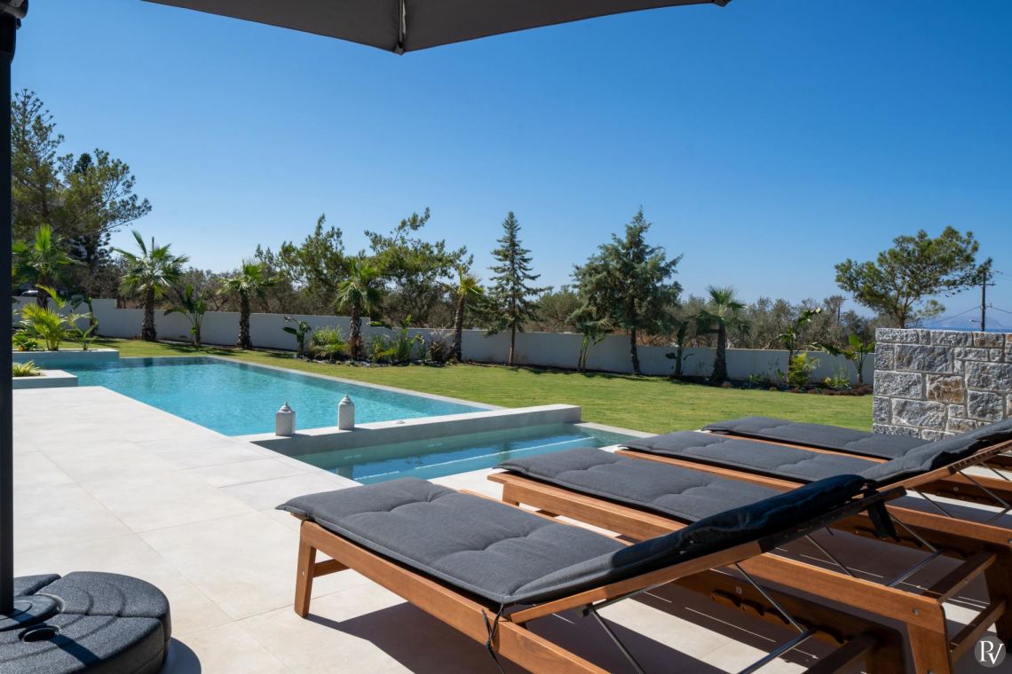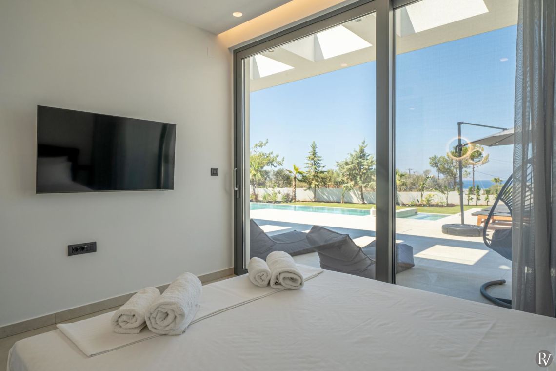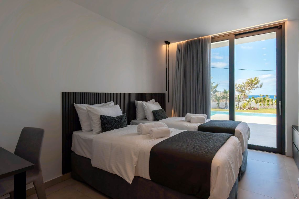 Villa Anthos features five elegantly appointed bedrooms, all offering calming views of either the pool or the sea.