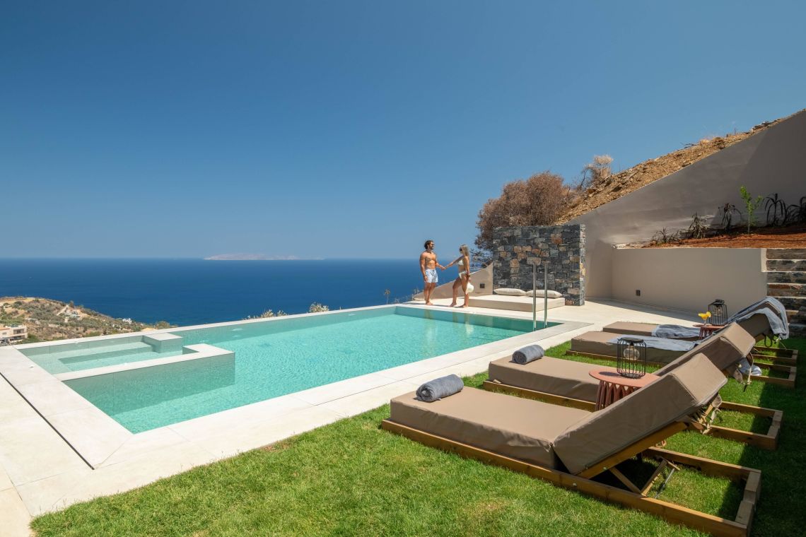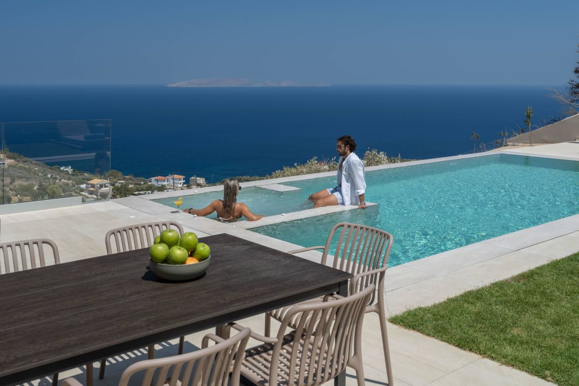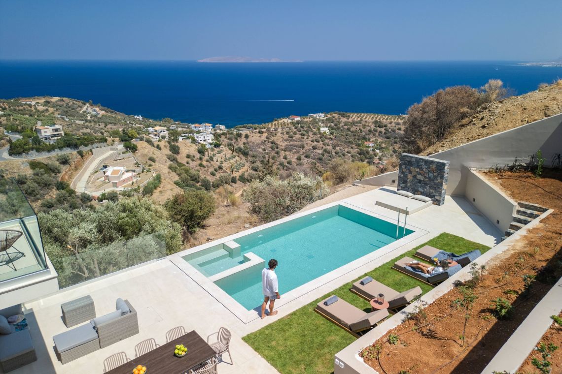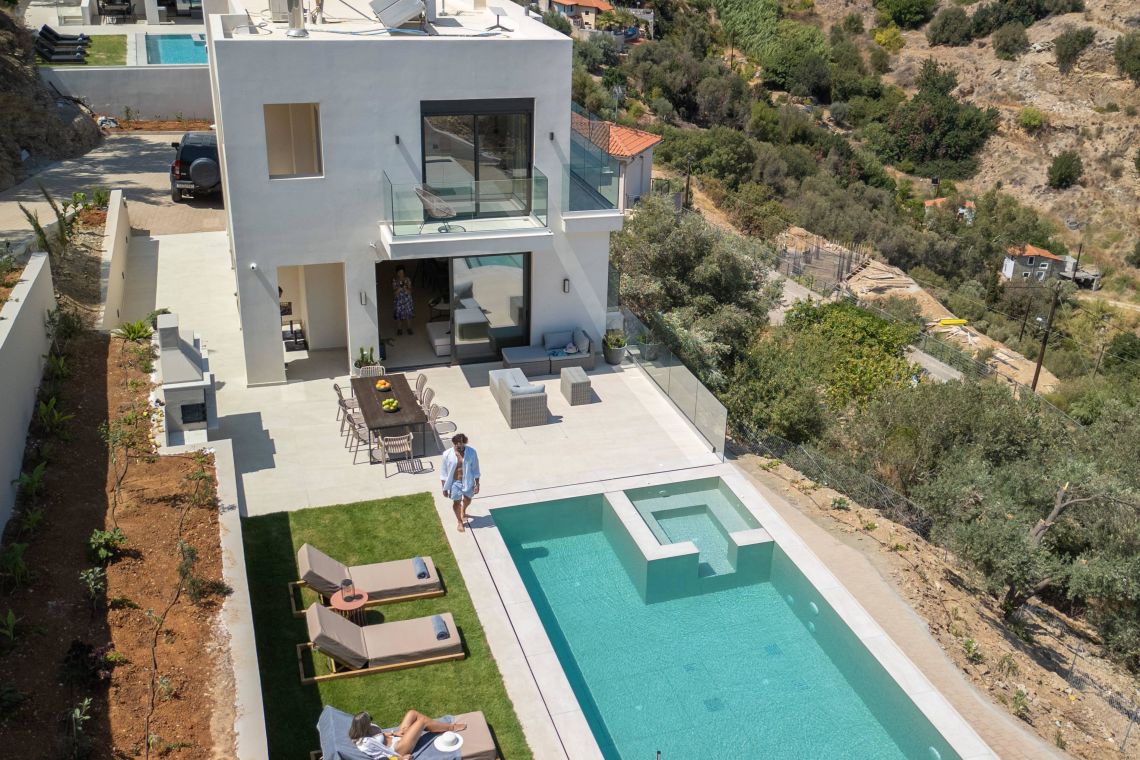Villa Santeri is a stunning, newly built villa located in the peaceful village of Rhodia on the island of Crete. Surrounded by lush greenery and offering breathtaking sea views, this villa is the perfect retreat for families or groups seeking relaxation, privacy, and style.